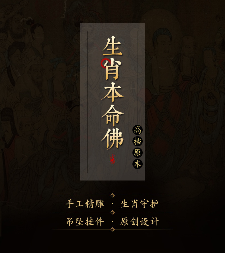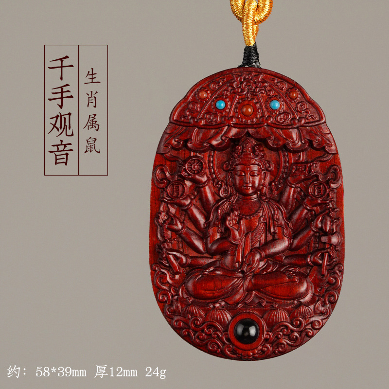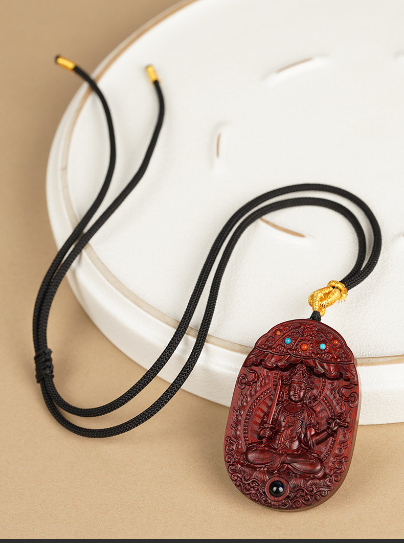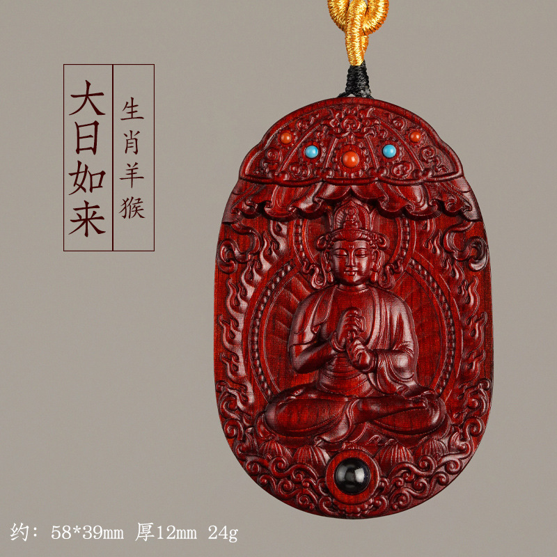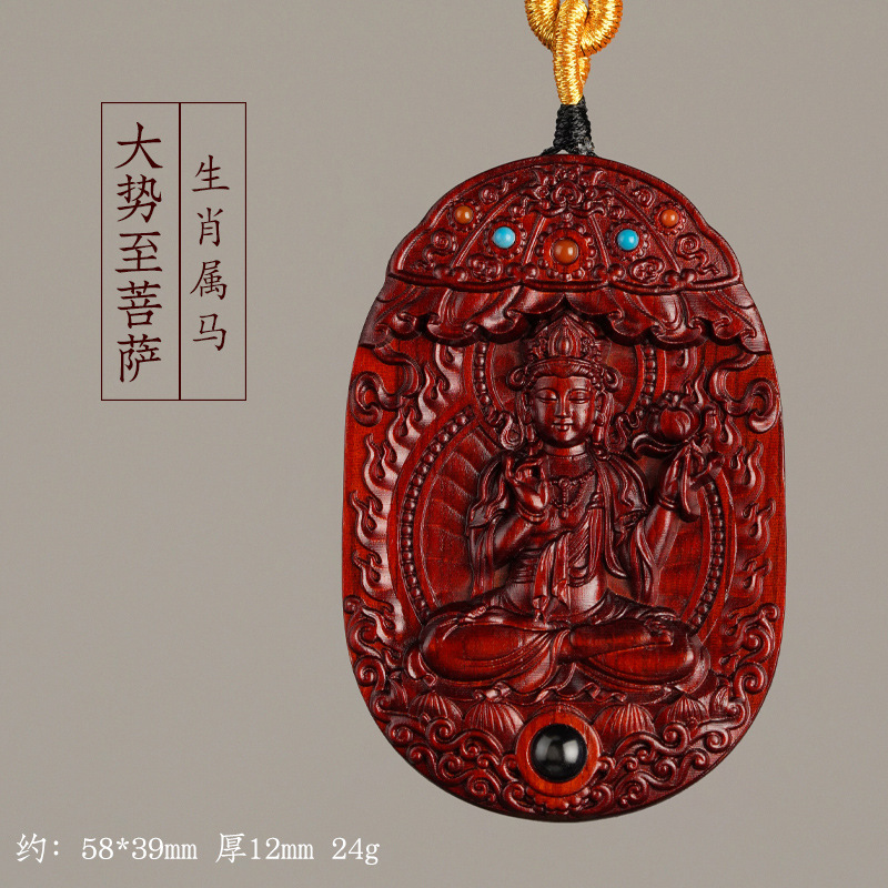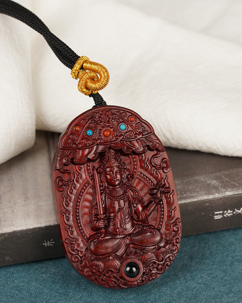 紫檀木佛牌八大守护神普贤菩萨龙蛇十二生肖吊坠本命佛原创雕刻