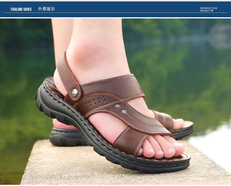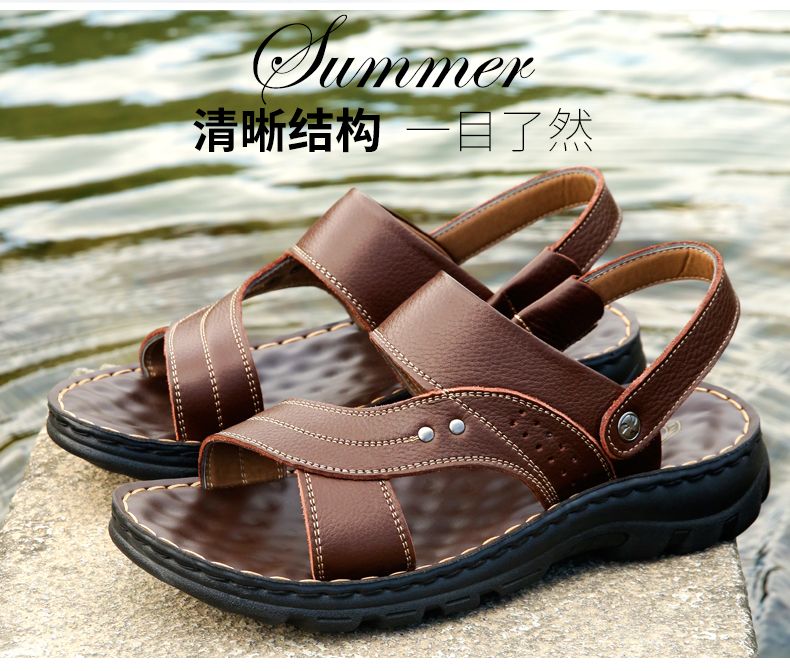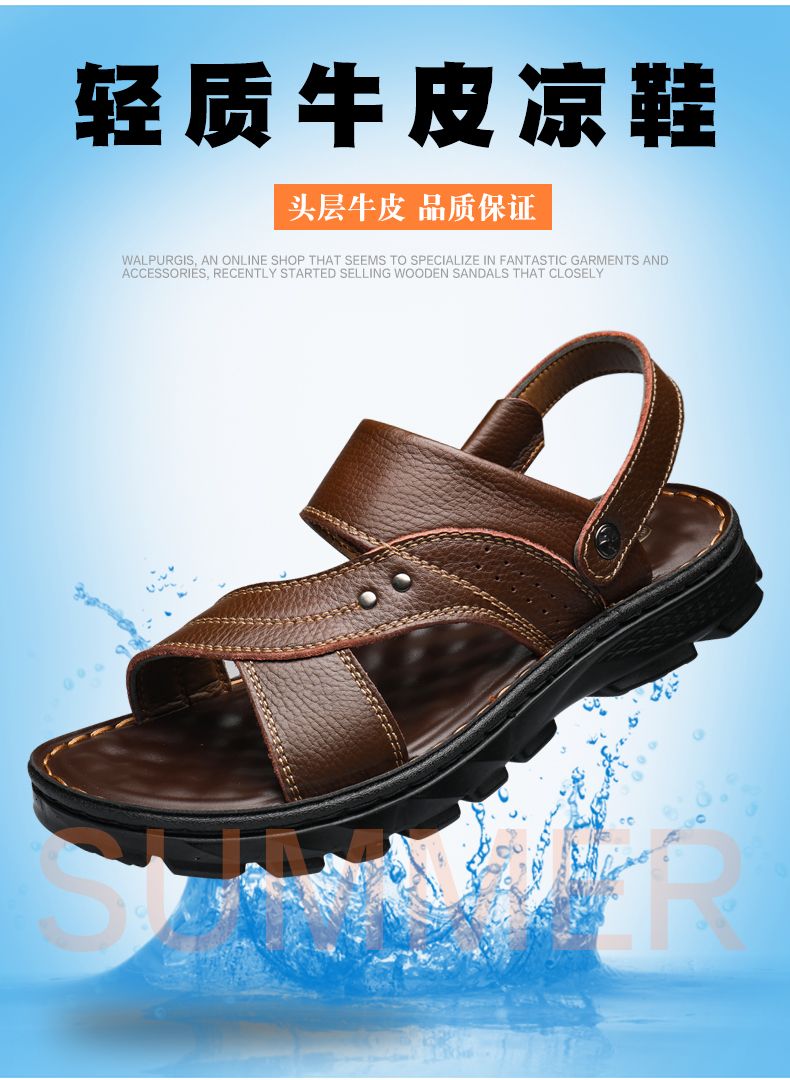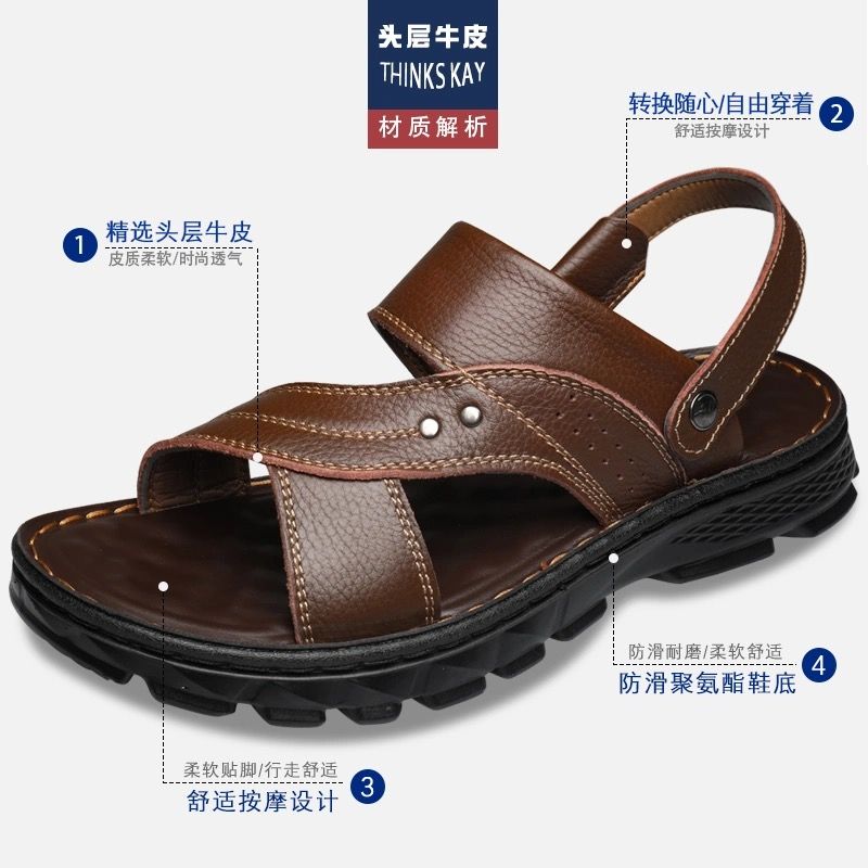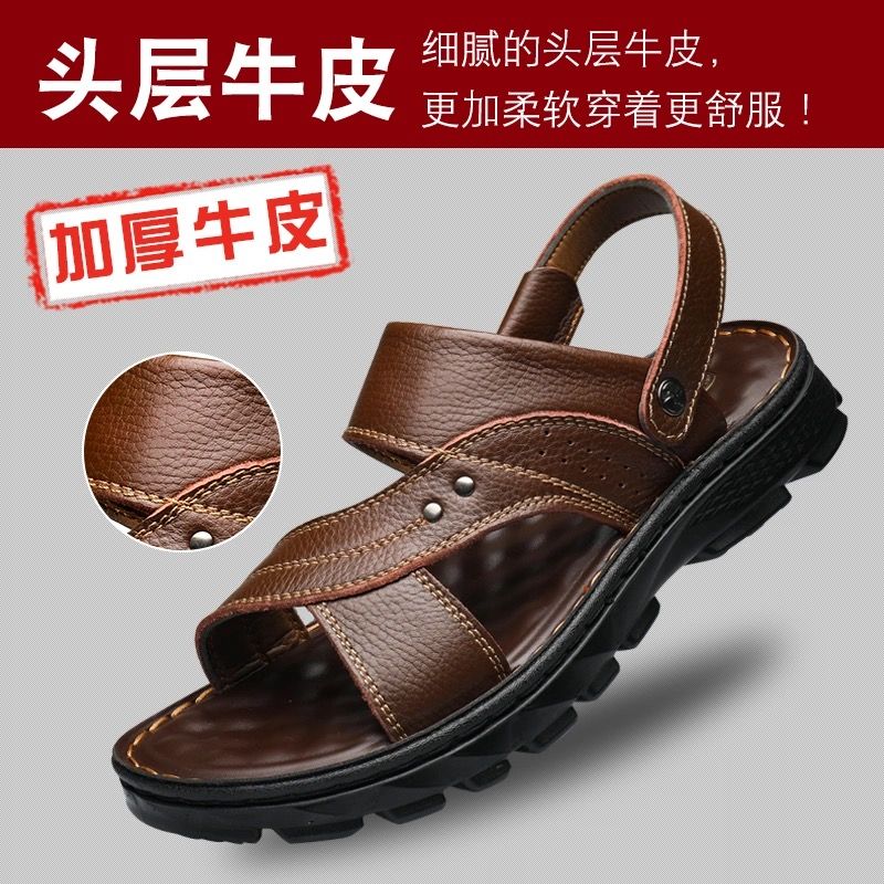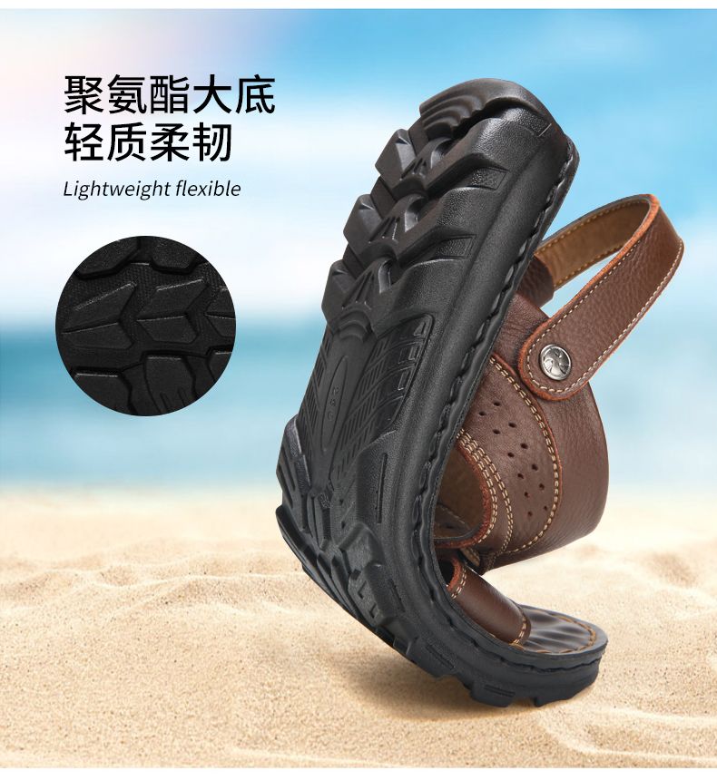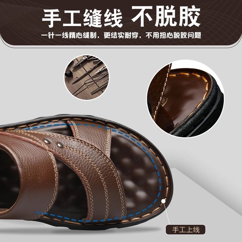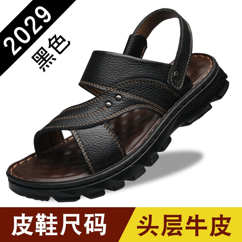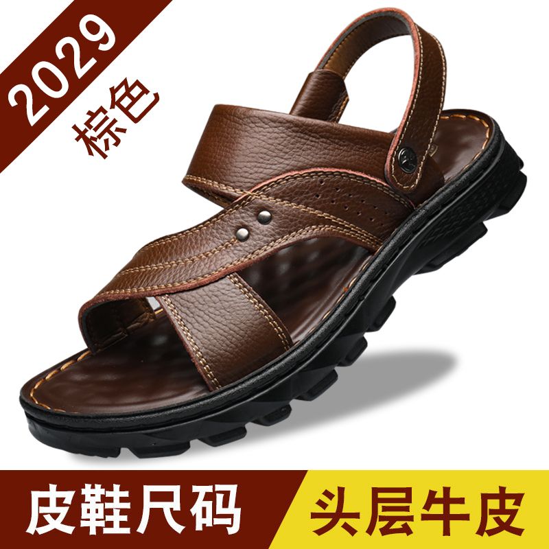 凉鞋男真皮夏季新款男士沙滩鞋防滑驾车休闲男鞋大码外穿凉拖鞋子