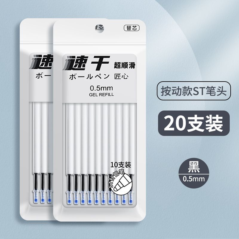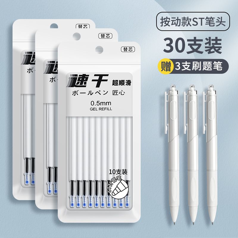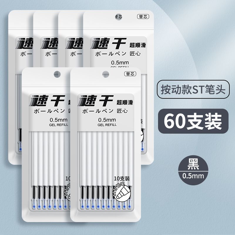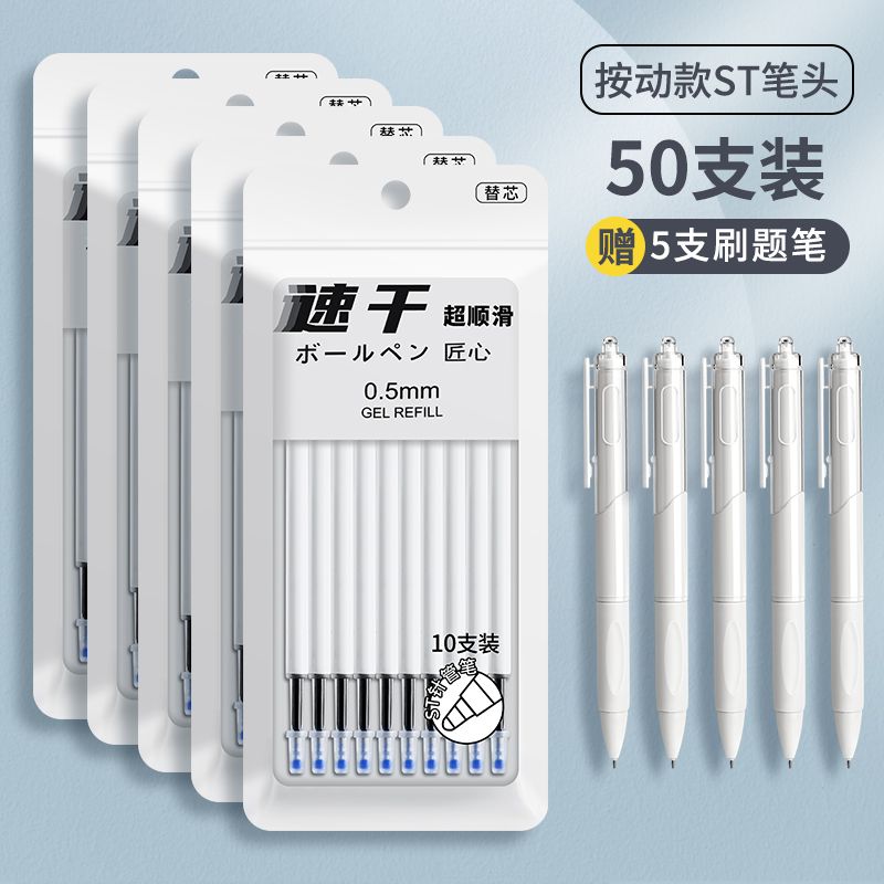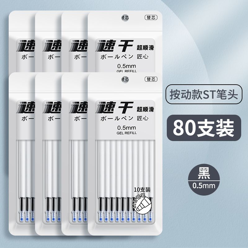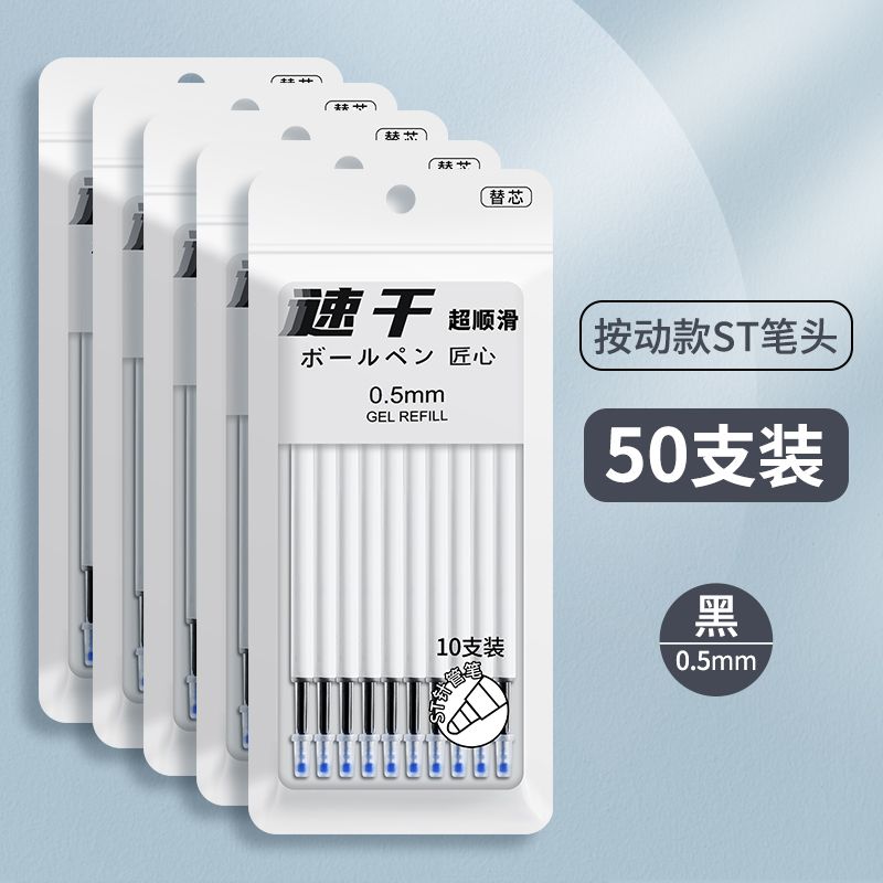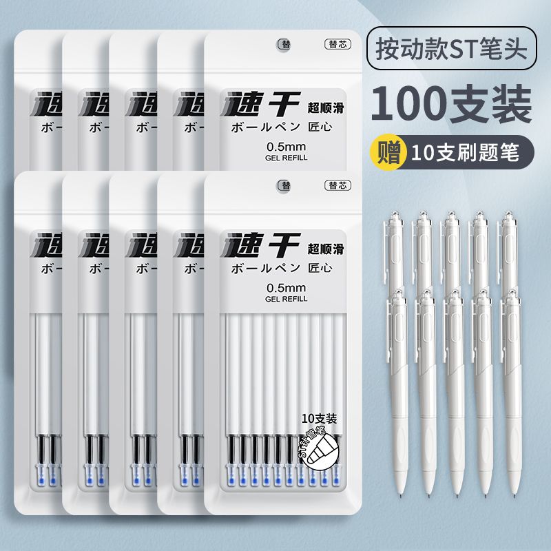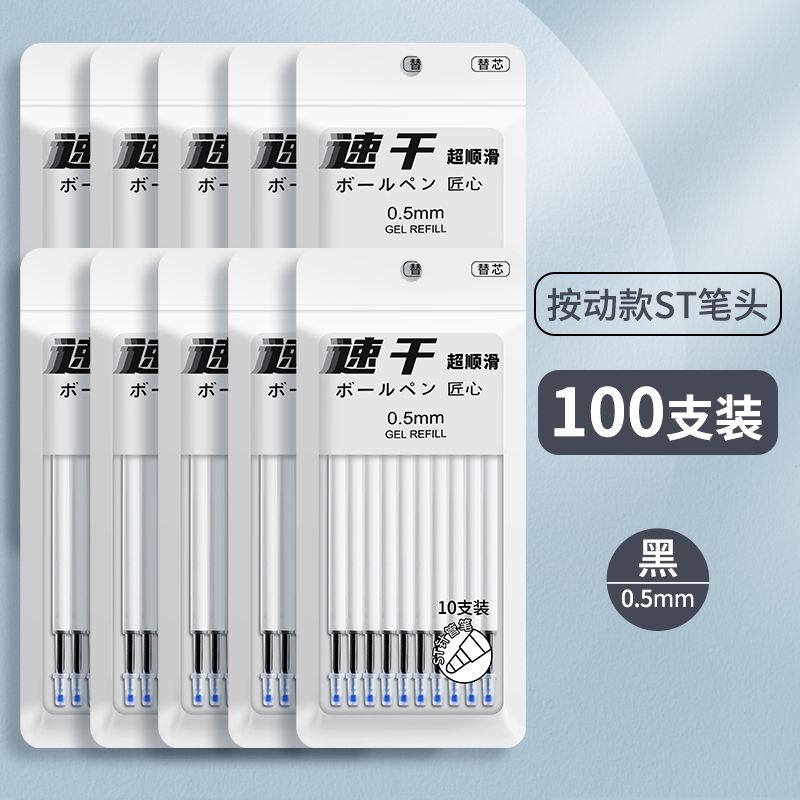 100支ST头按动笔芯大容量速干中性笔替芯黑色0.5mm刷题笔专用批发