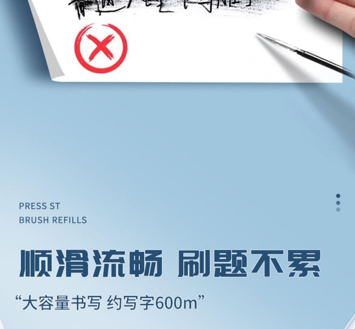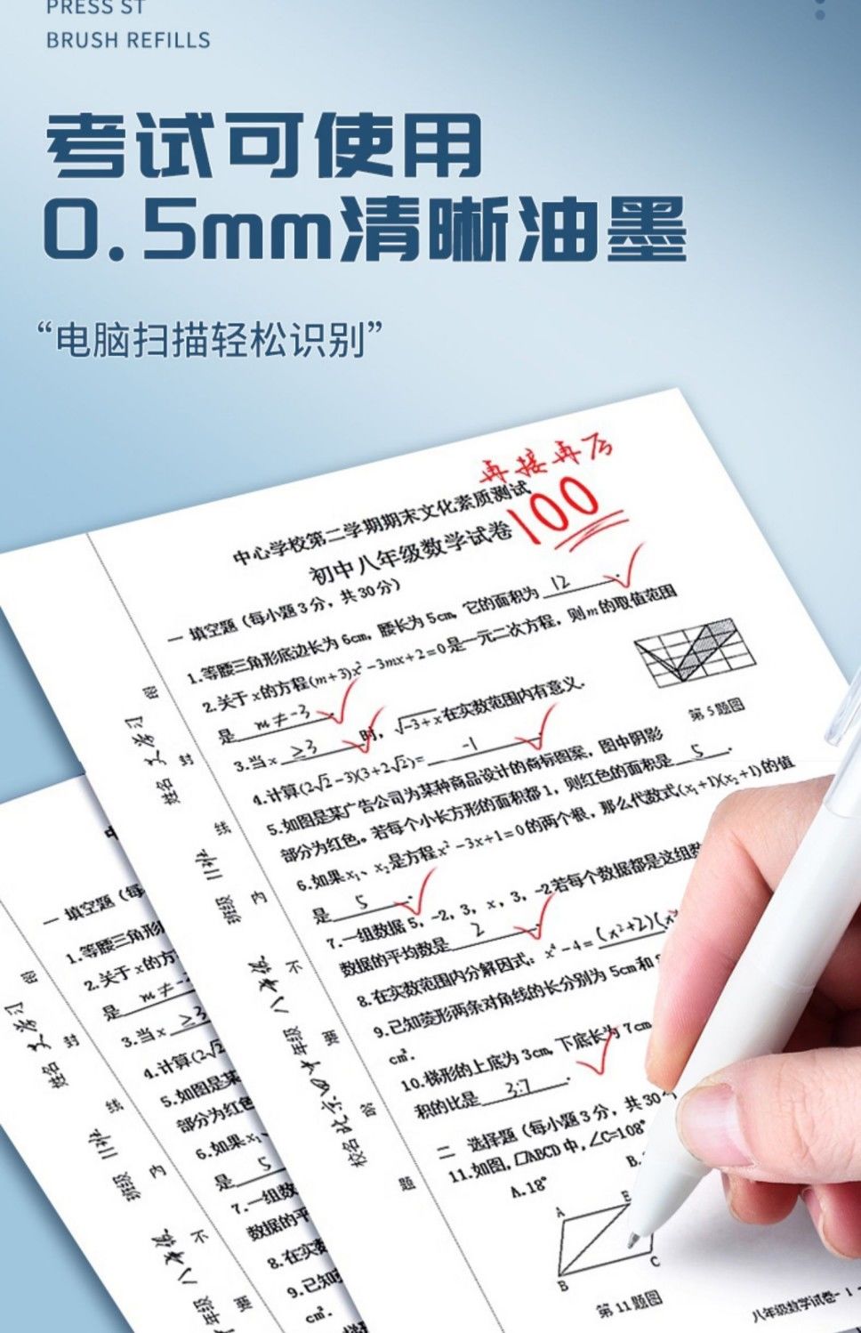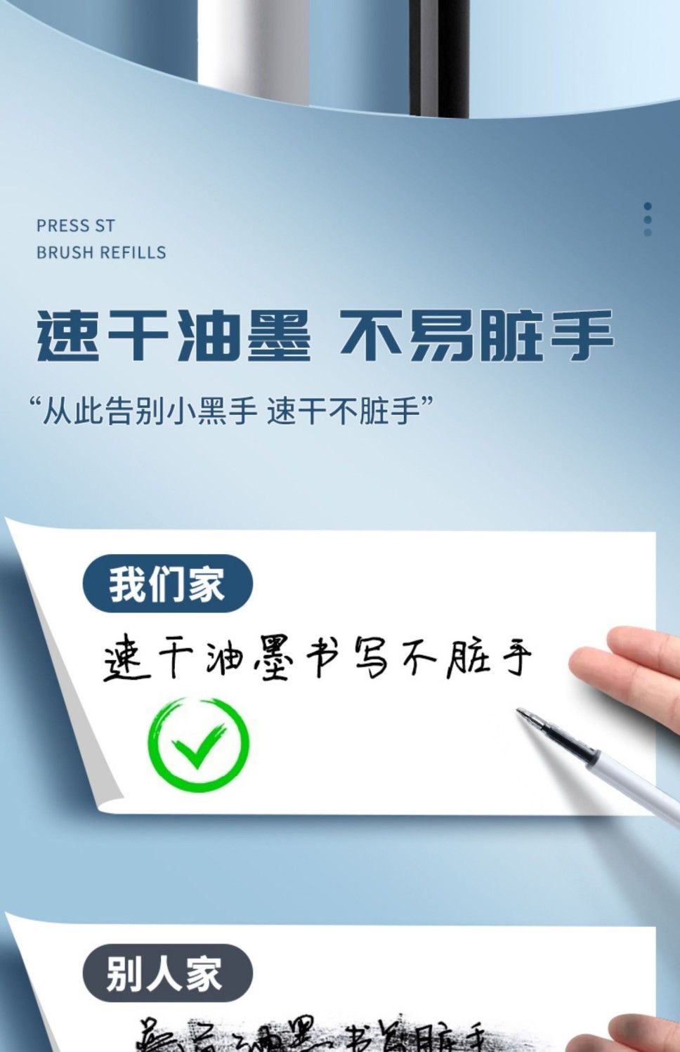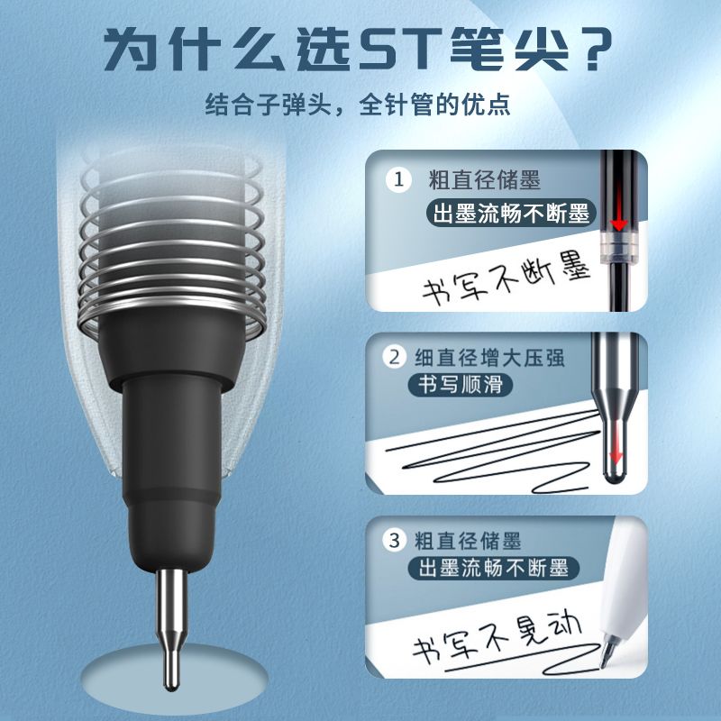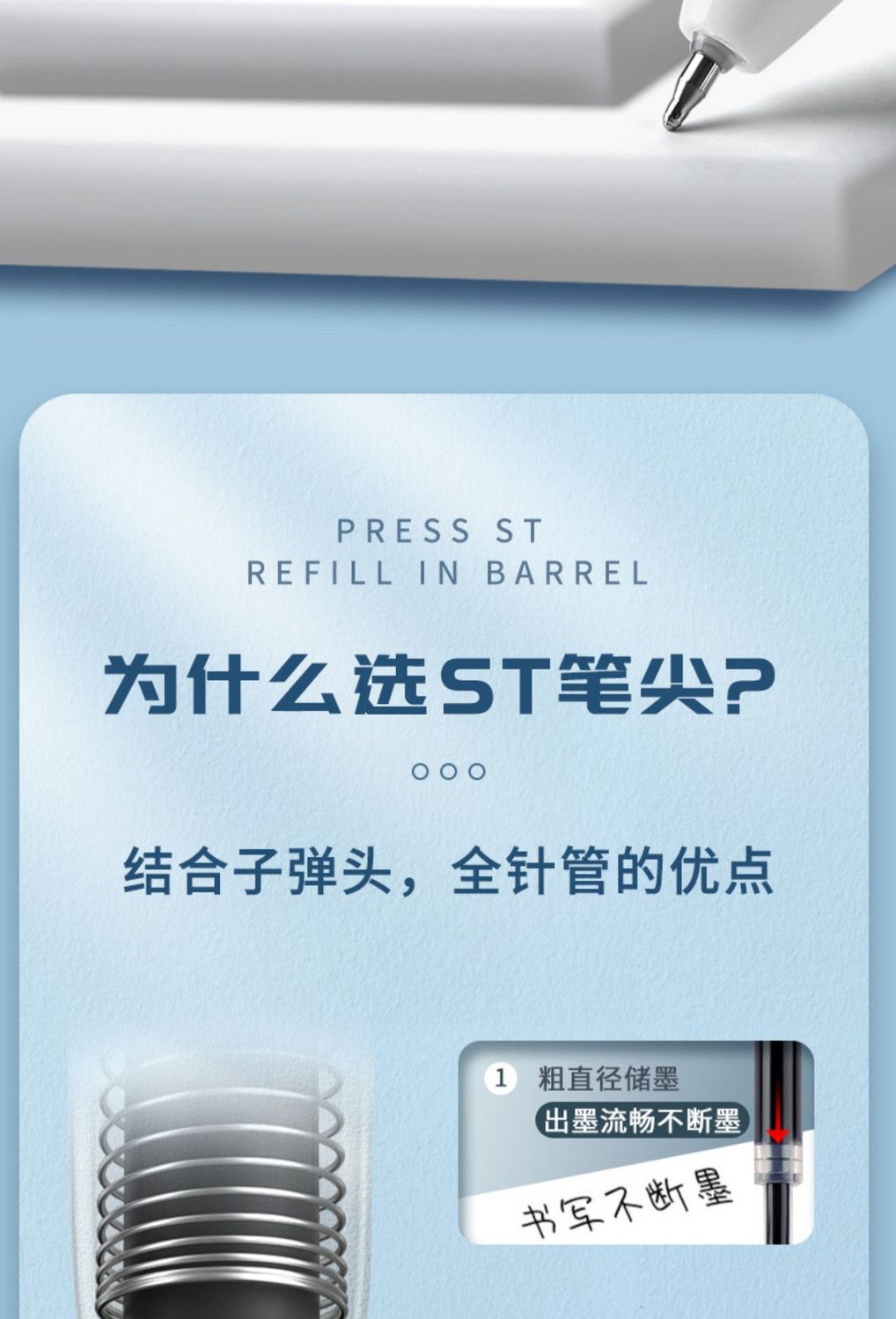 100支ST头按动笔芯大容量速干中性笔替芯黑色0.5mm刷题笔专用批发