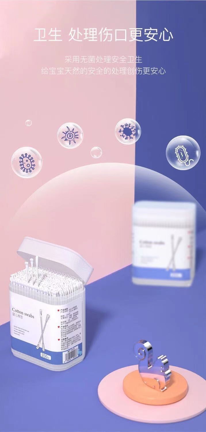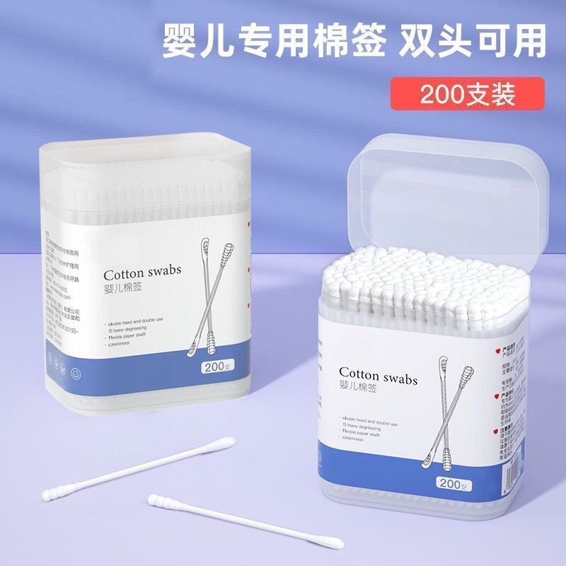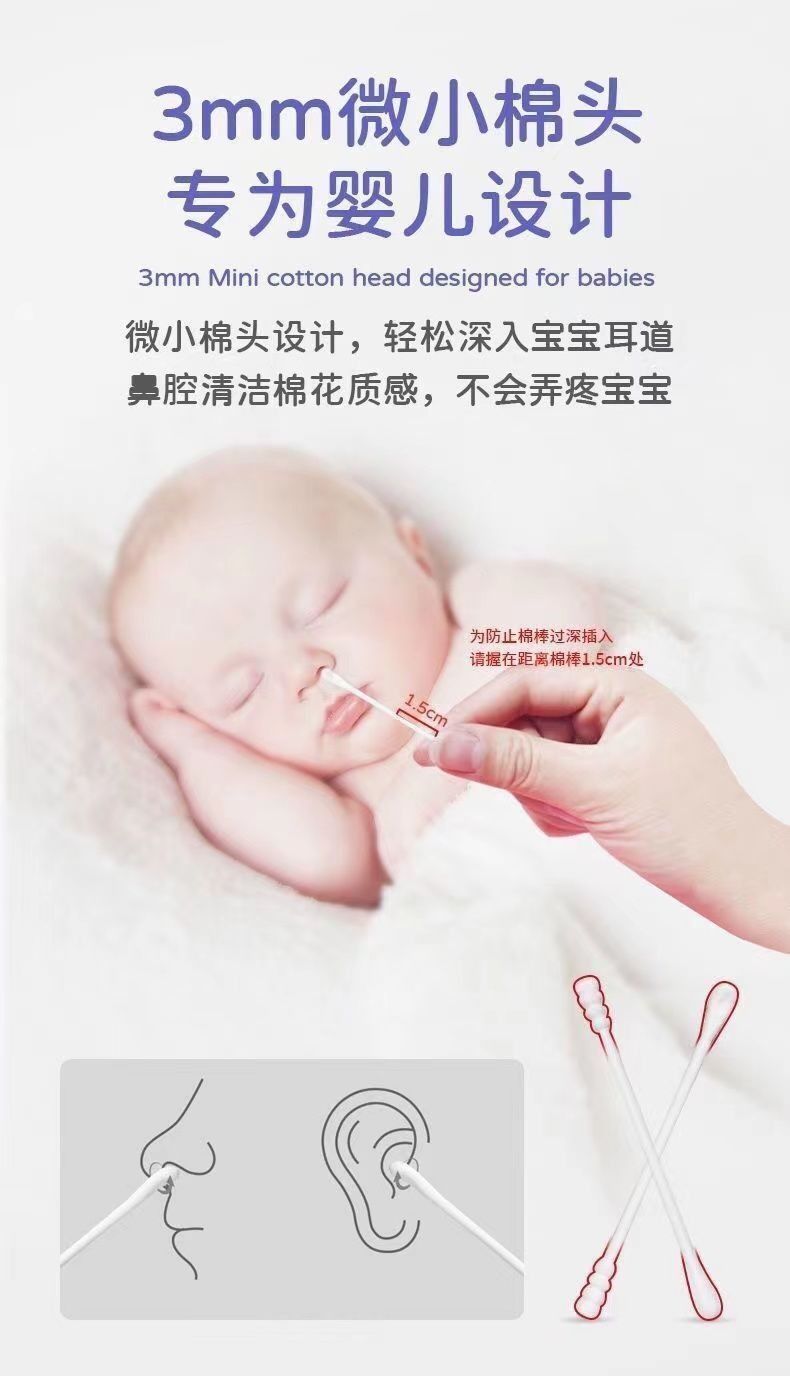婴儿棉签宝宝专用掏耳鼻屎棉签棒婴幼儿挖耳勺清洁超细双头小棉棒
