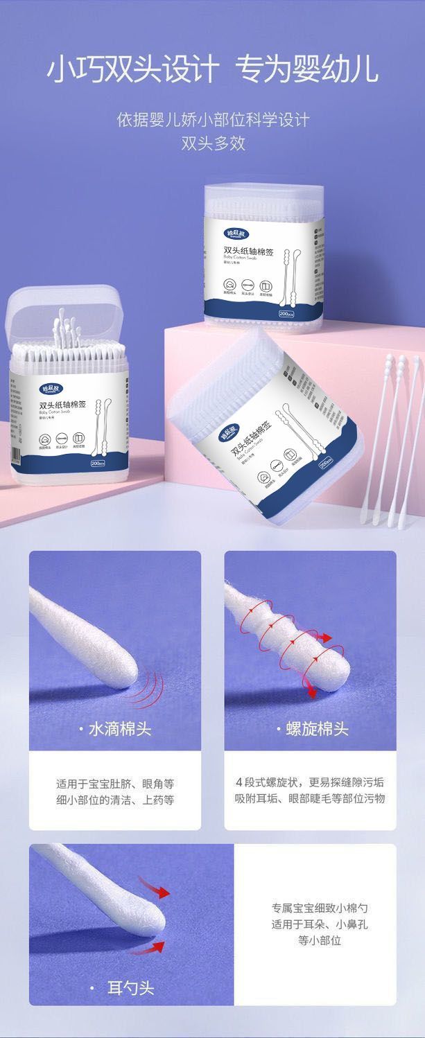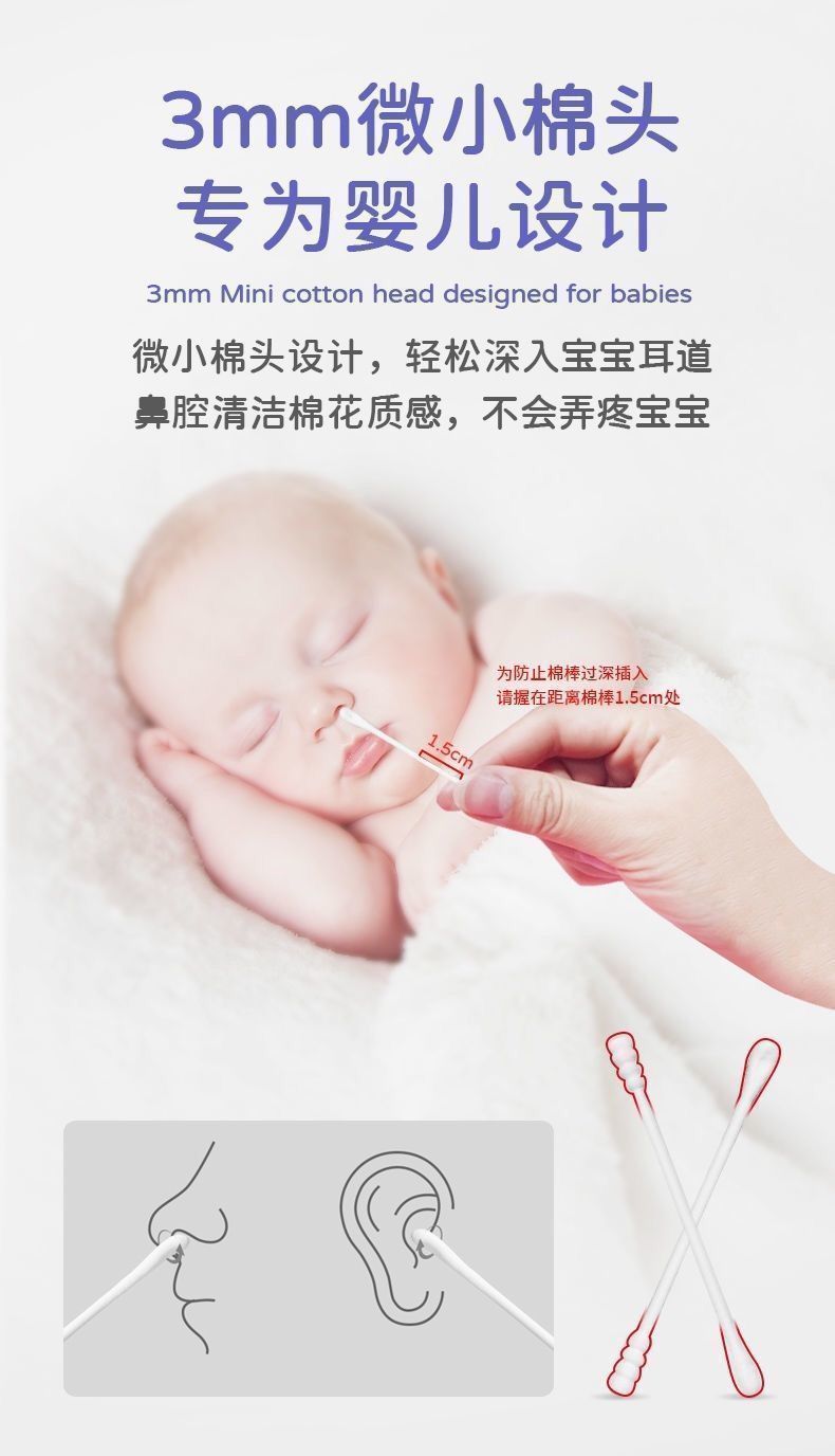 婴儿专用棉签小头消毒化妆双头新生儿宝宝耳勺头掏耳朵清洁棉签棒