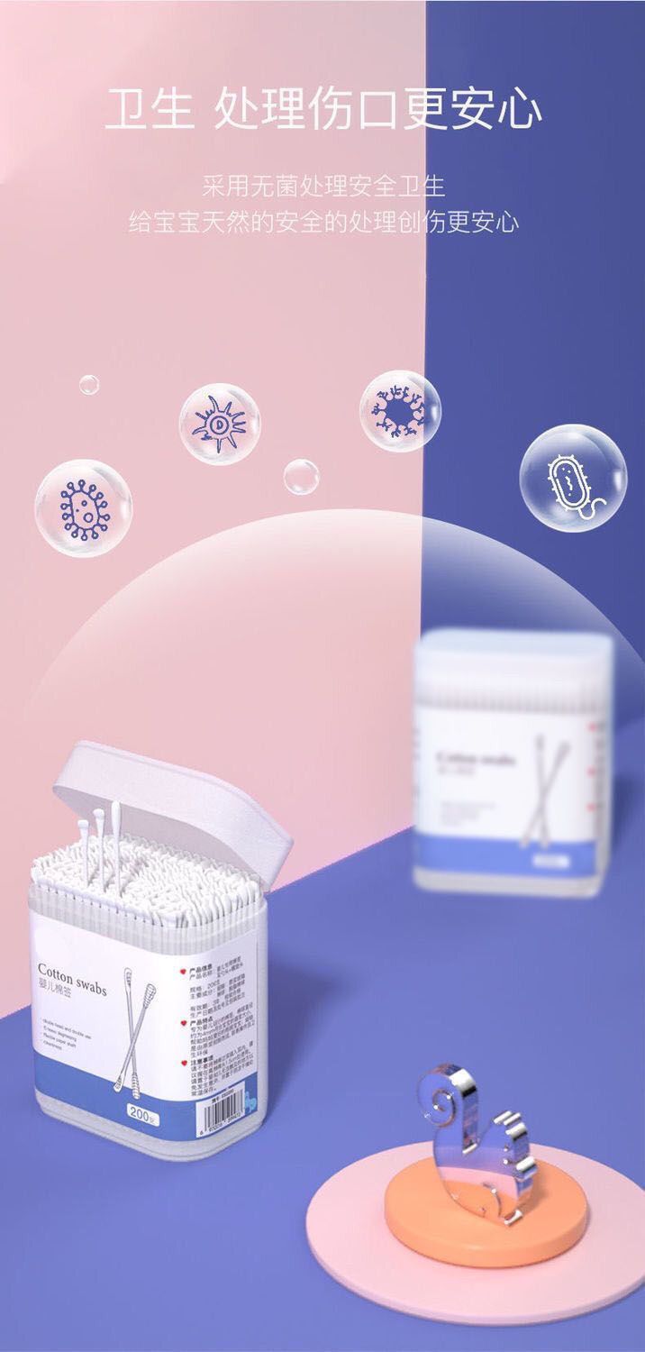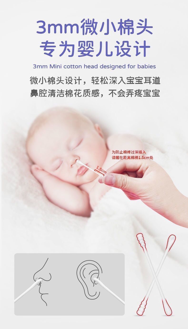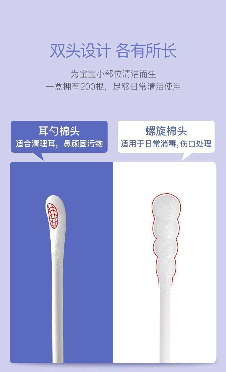 婴儿棉签宝宝专用小头棉棒耳勺头消毒化妆掏耳朵挖耳双头无菌棉签