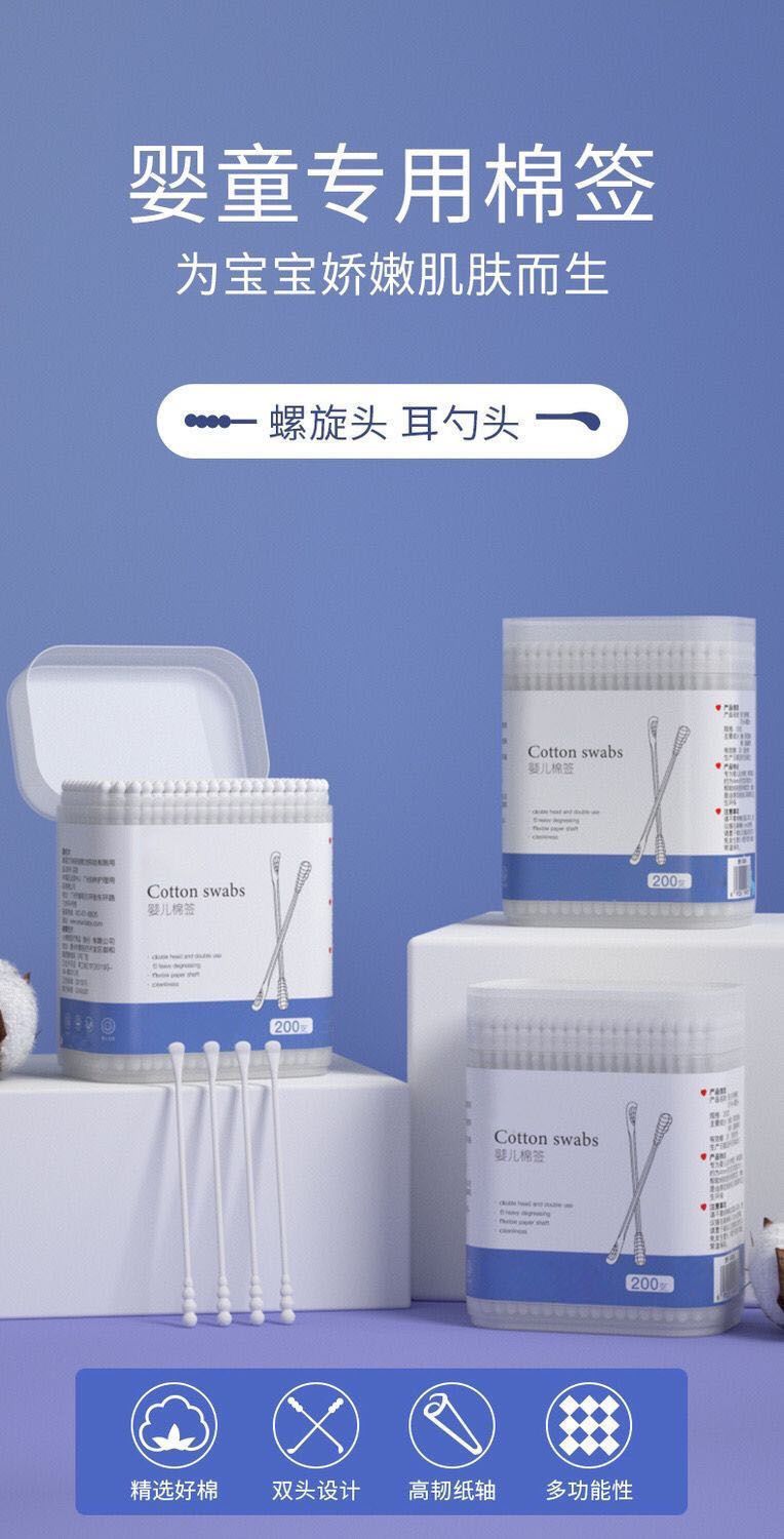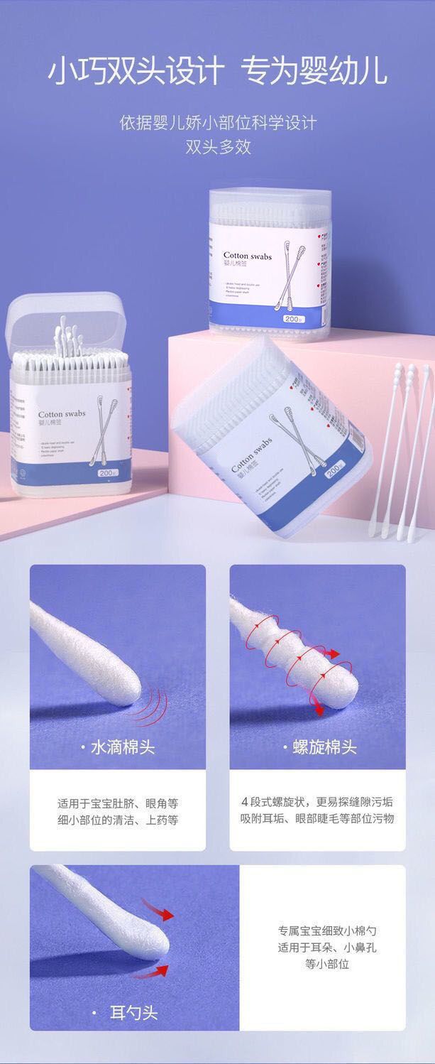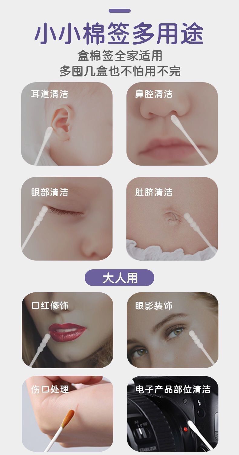 婴儿棉签宝宝专用小头棉棒耳勺头消毒化妆掏耳朵挖耳双头无菌棉签
