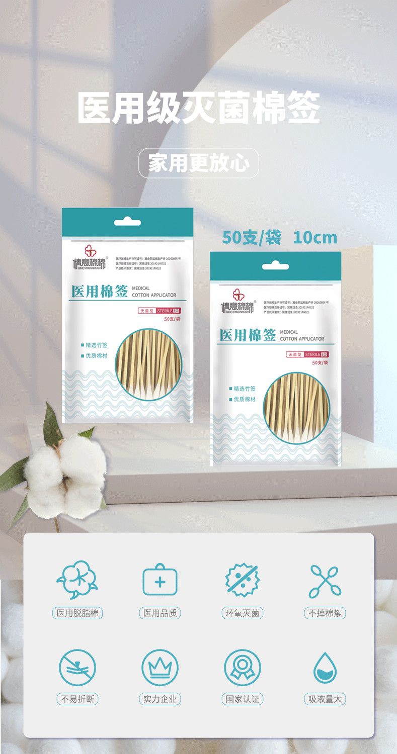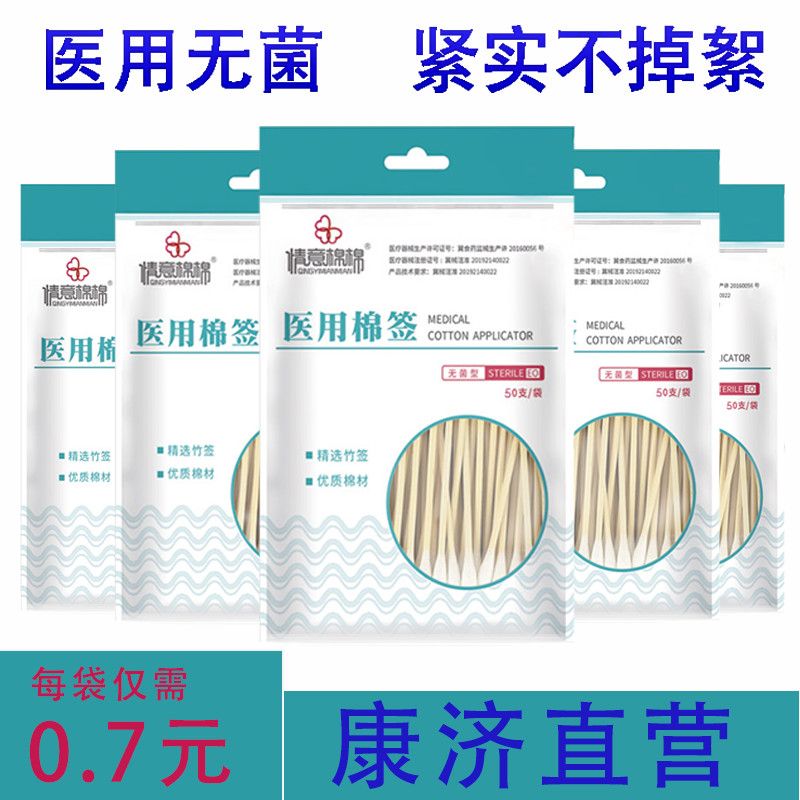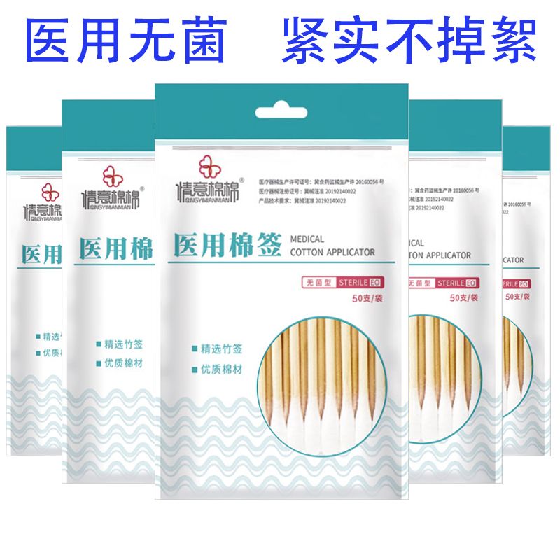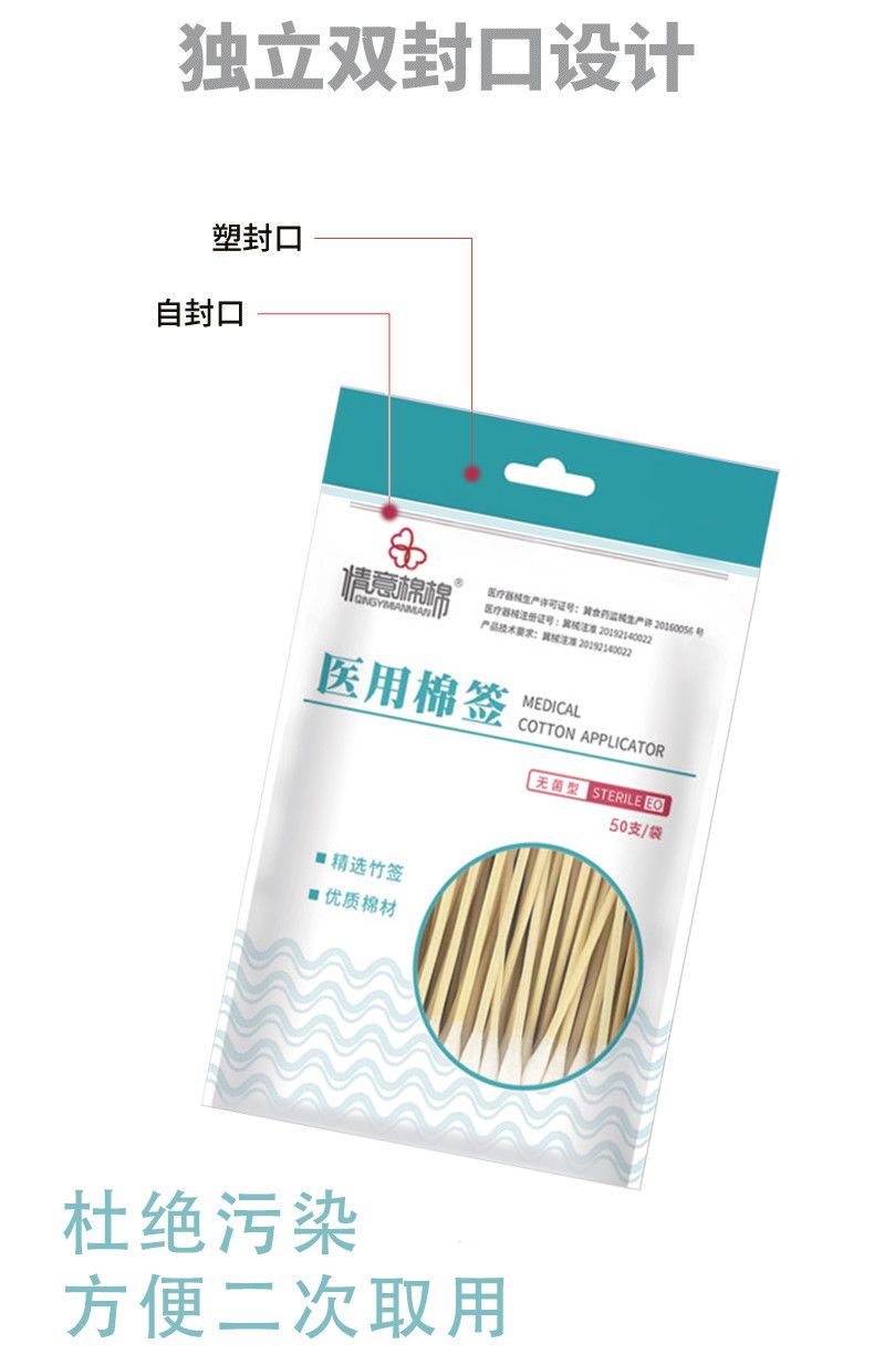 医用级无菌棉签消毒大头棉签棒医用级一次性医用棉签自封口无菌