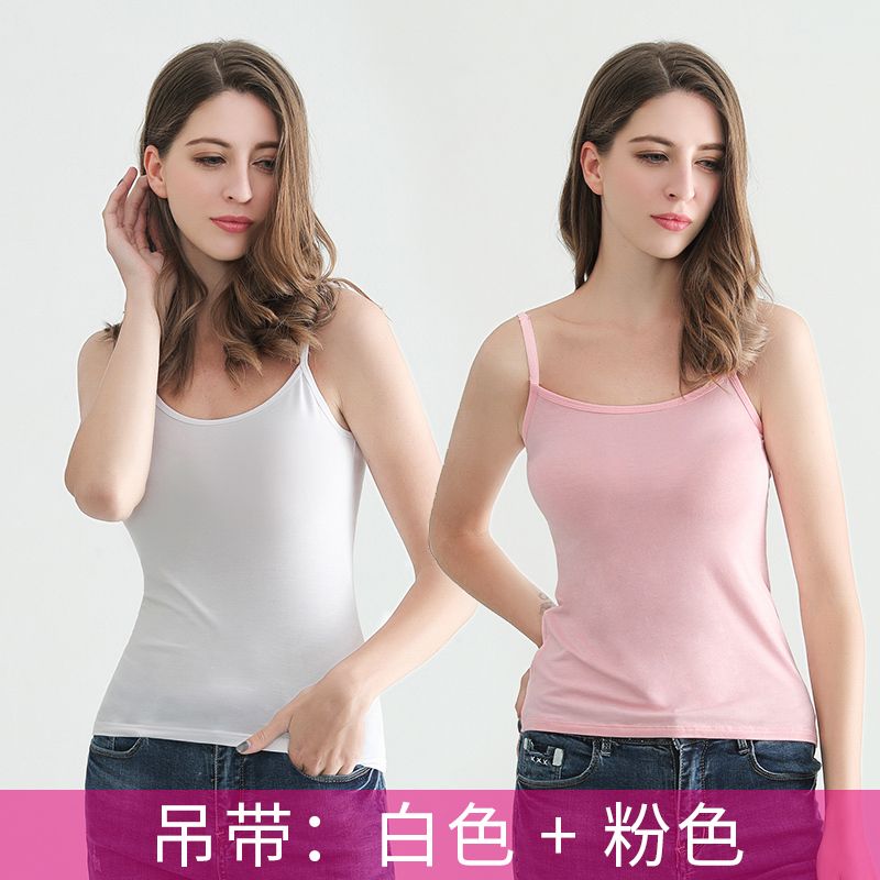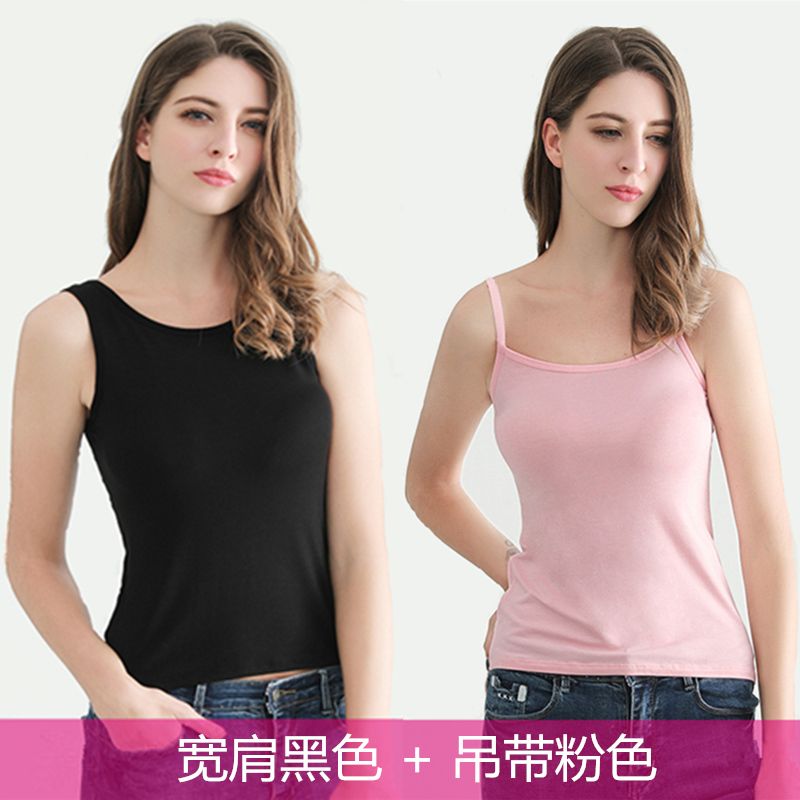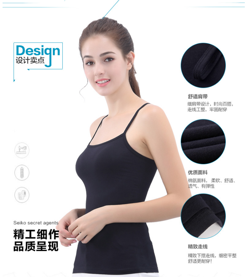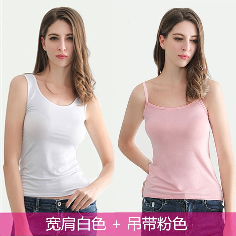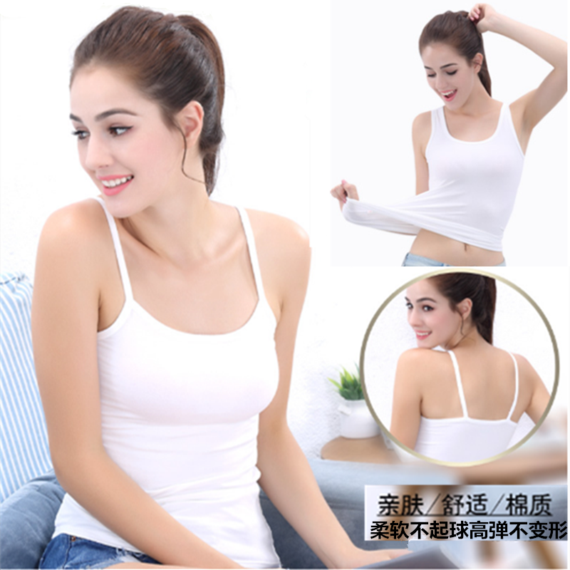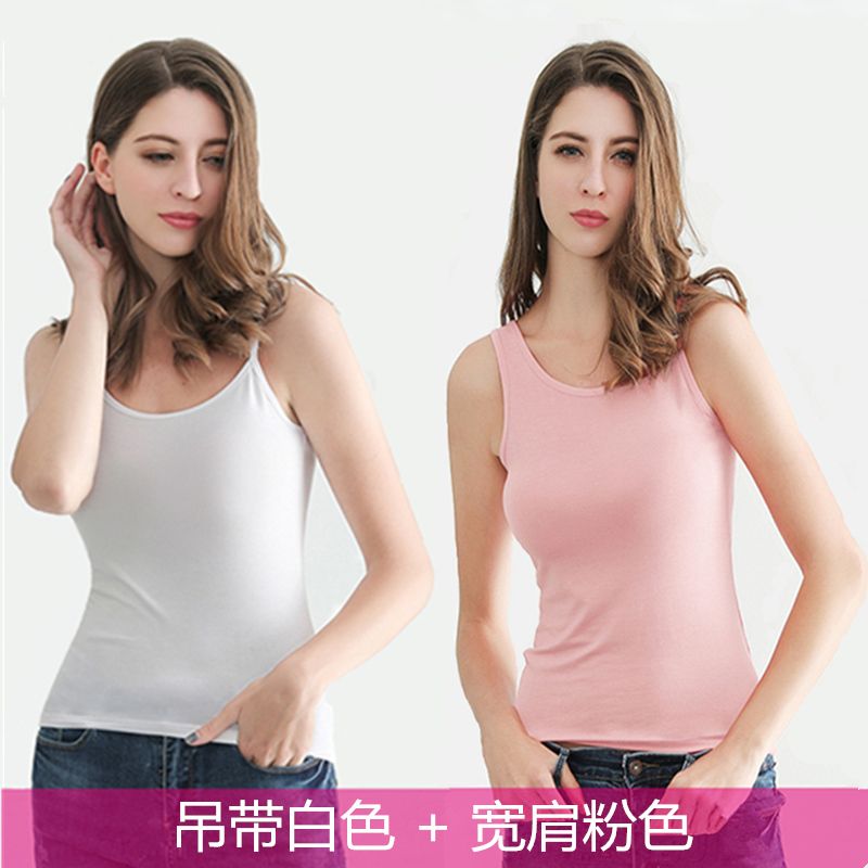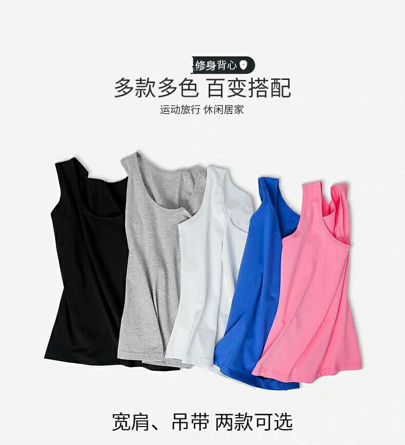 吊带背心女打底衫紧身工字内搭中长款修身白黑色上衣夏季大码
