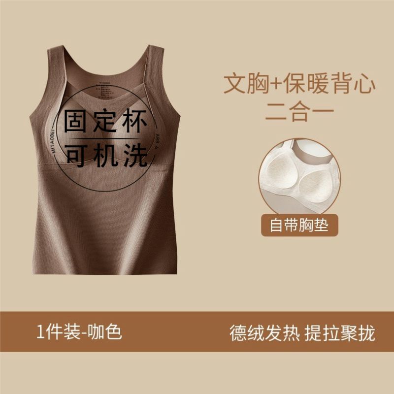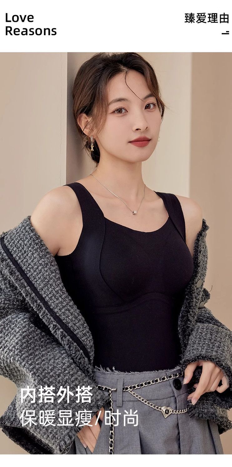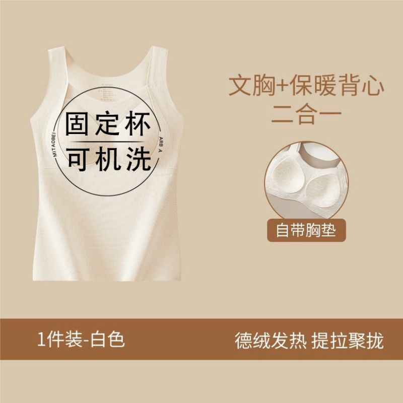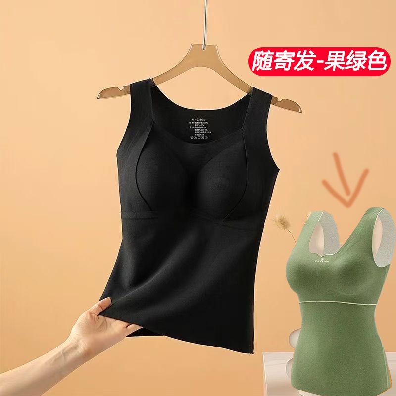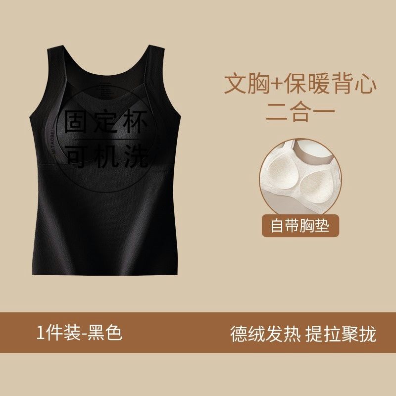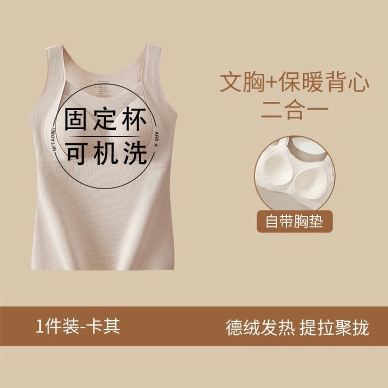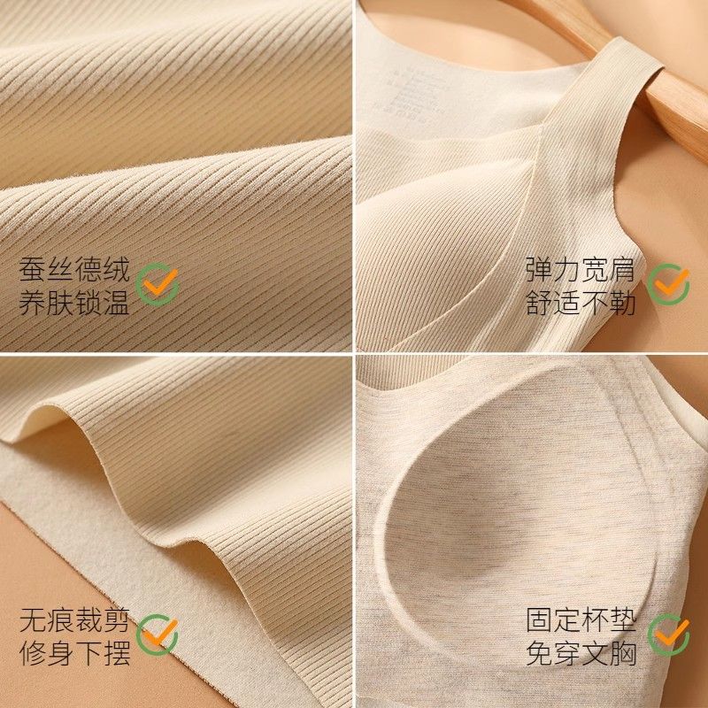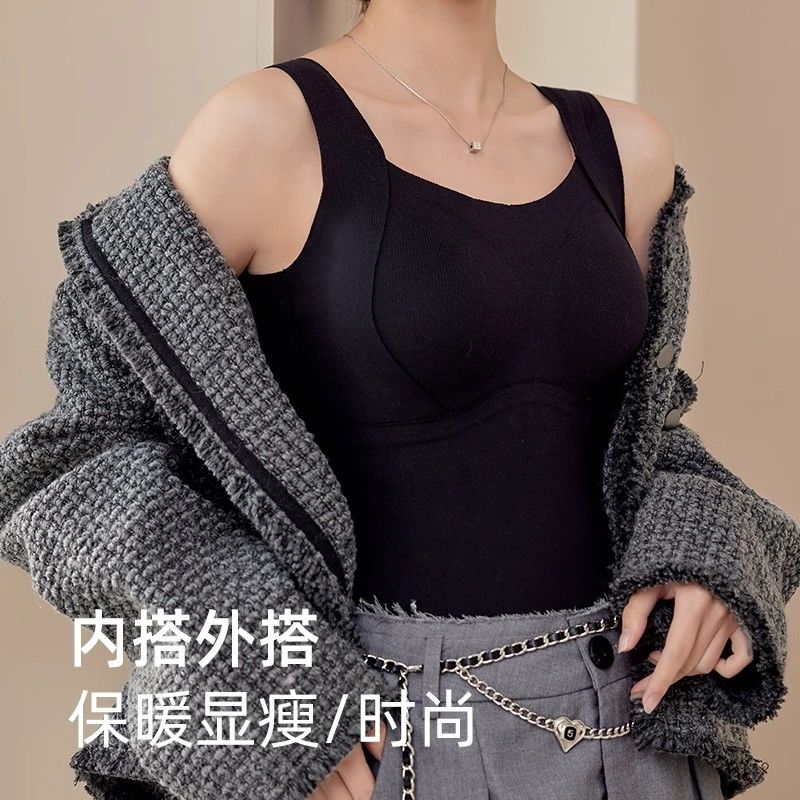 德绒保暖吊带背心女2024新款秋冬内搭加绒发热无痕带胸垫一体内衣
