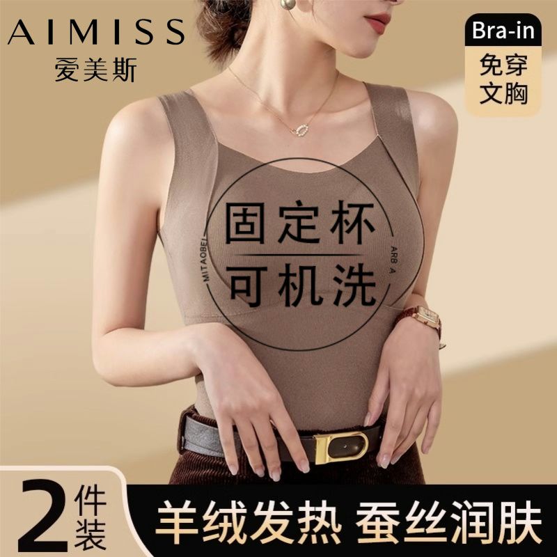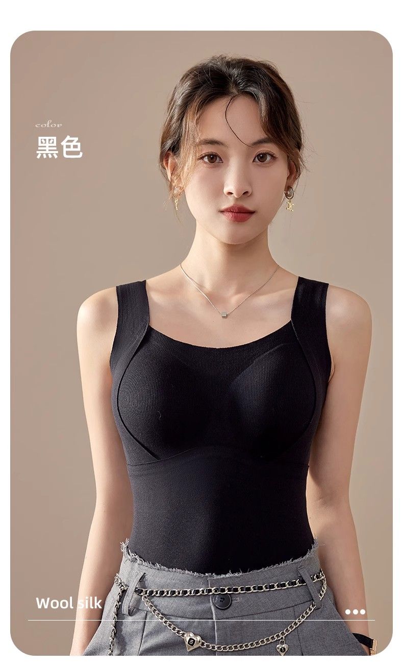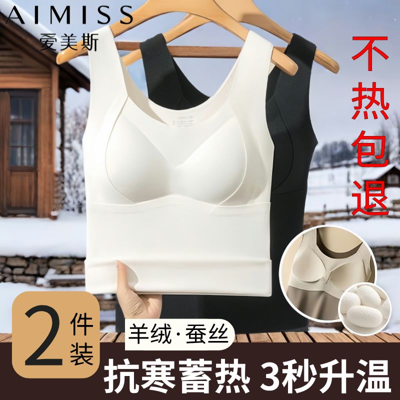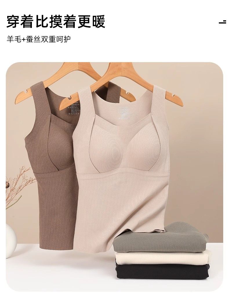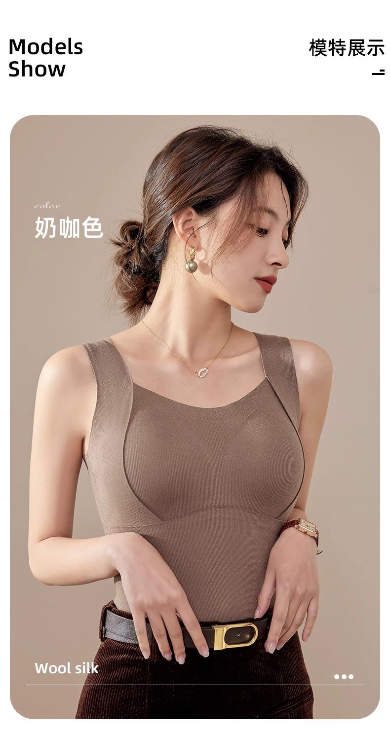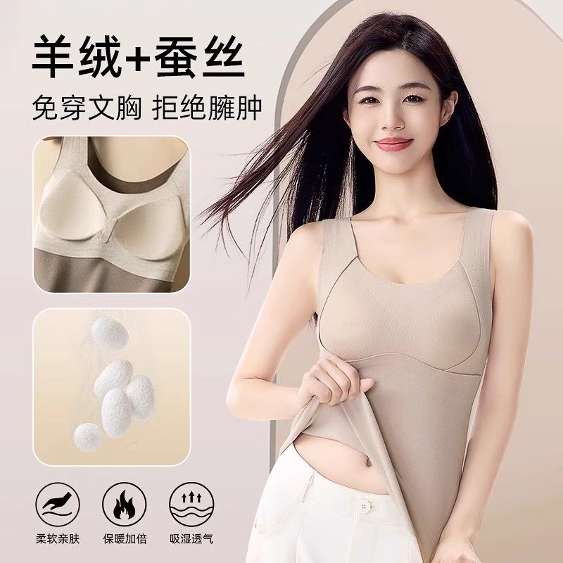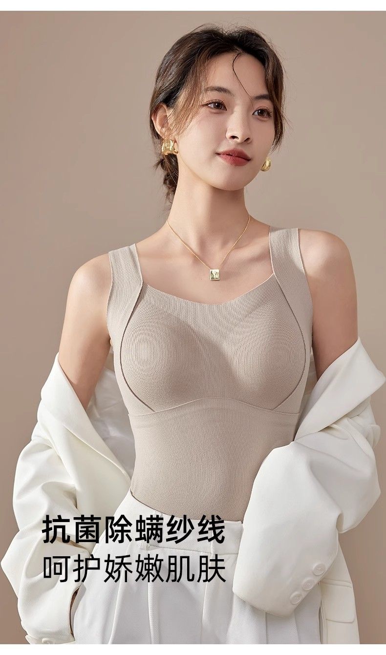 德绒保暖吊带背心女2024新款秋冬内搭加绒发热无痕带胸垫一体内衣