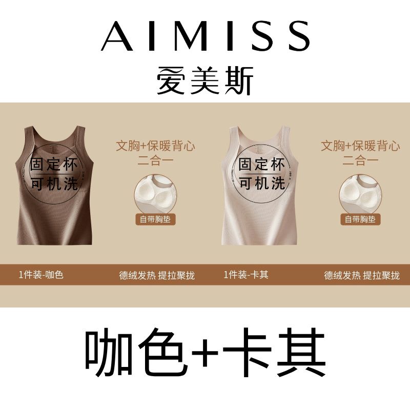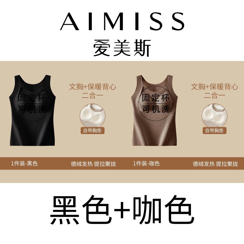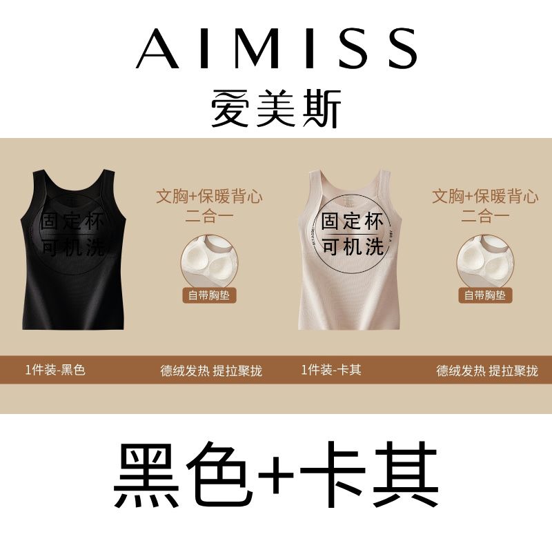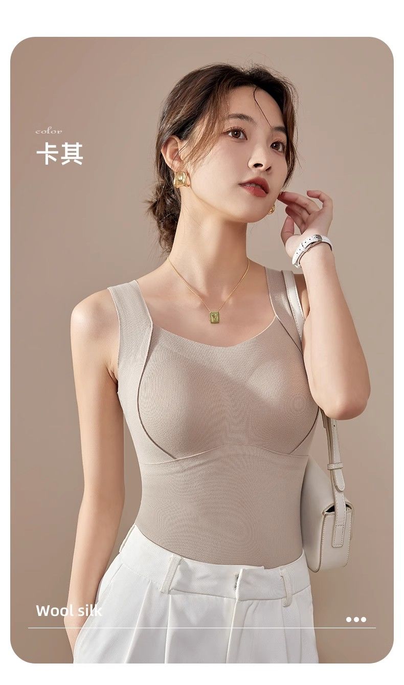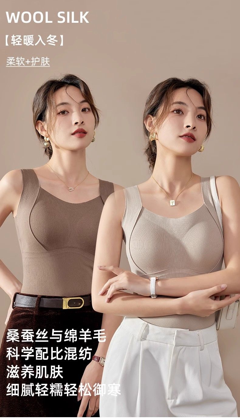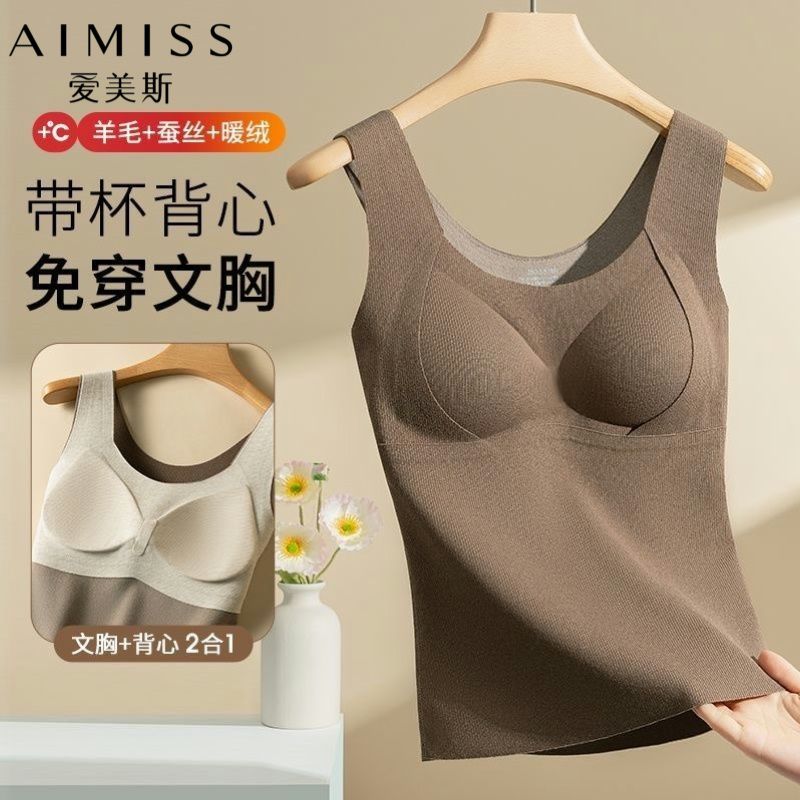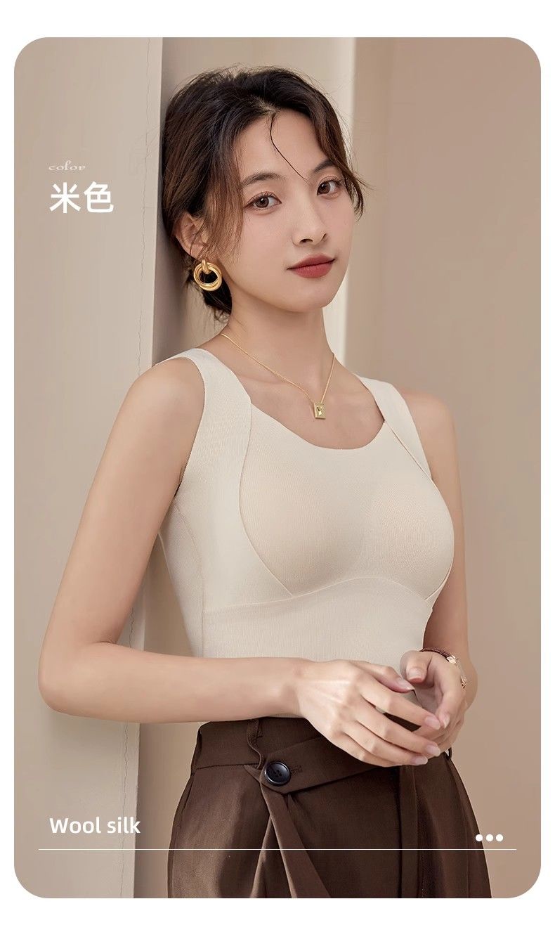 德绒保暖吊带背心女2024新款秋冬内搭加绒发热无痕带胸垫一体内衣