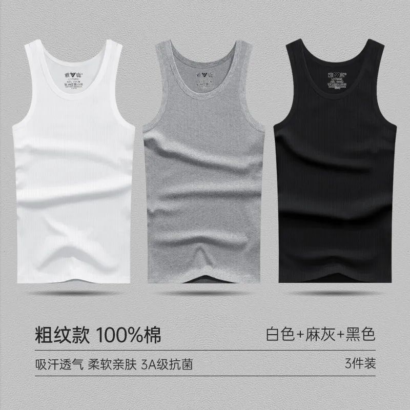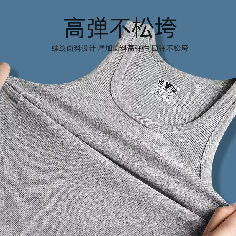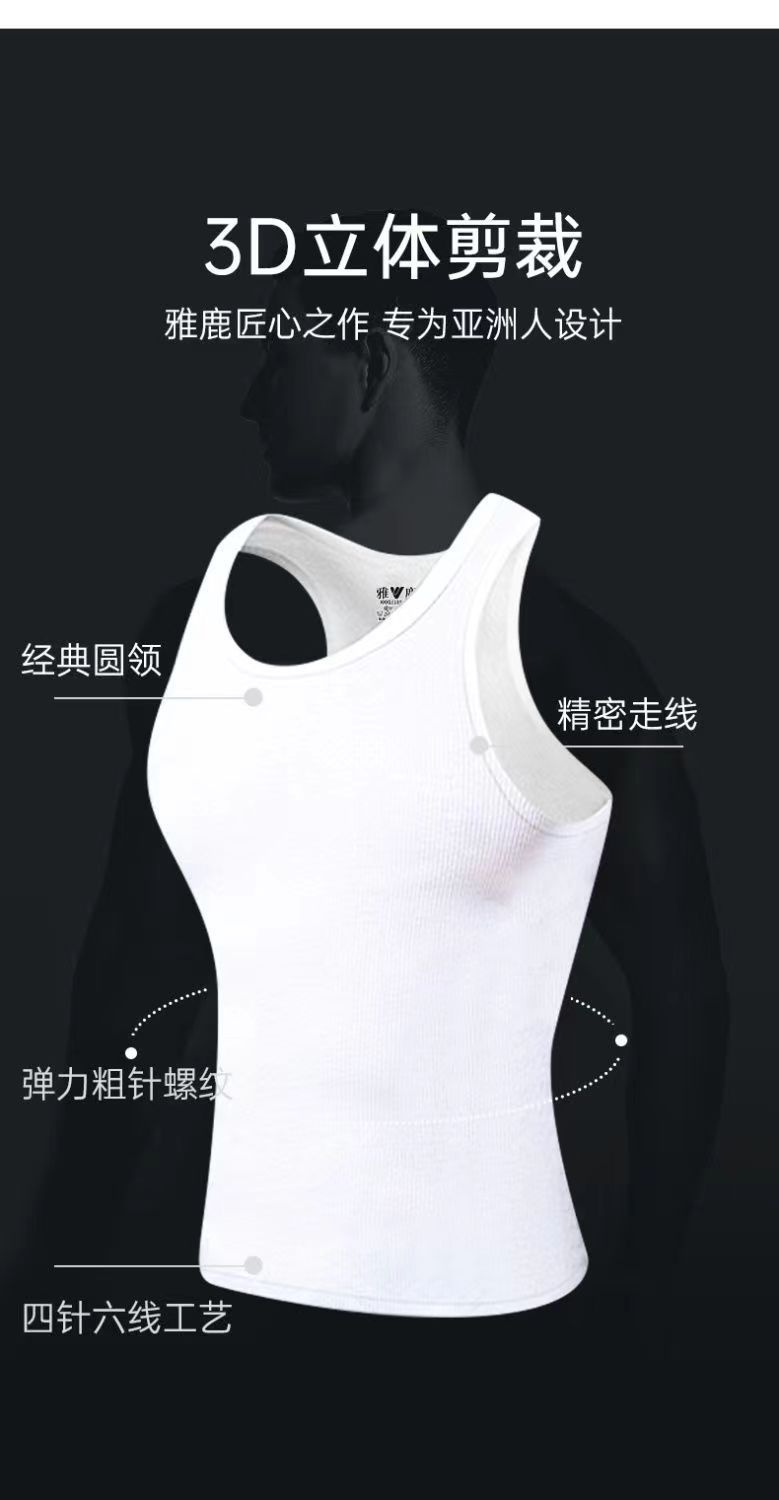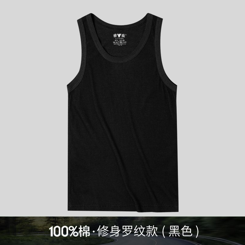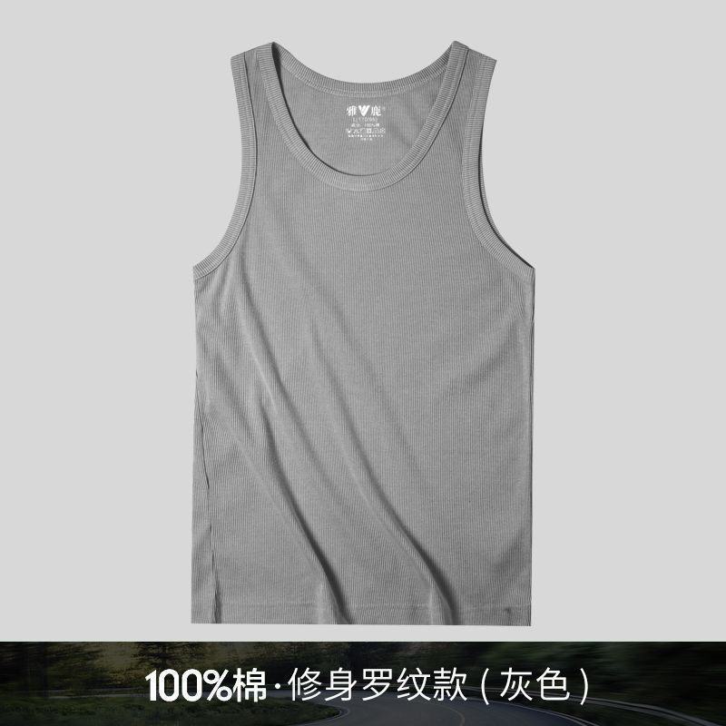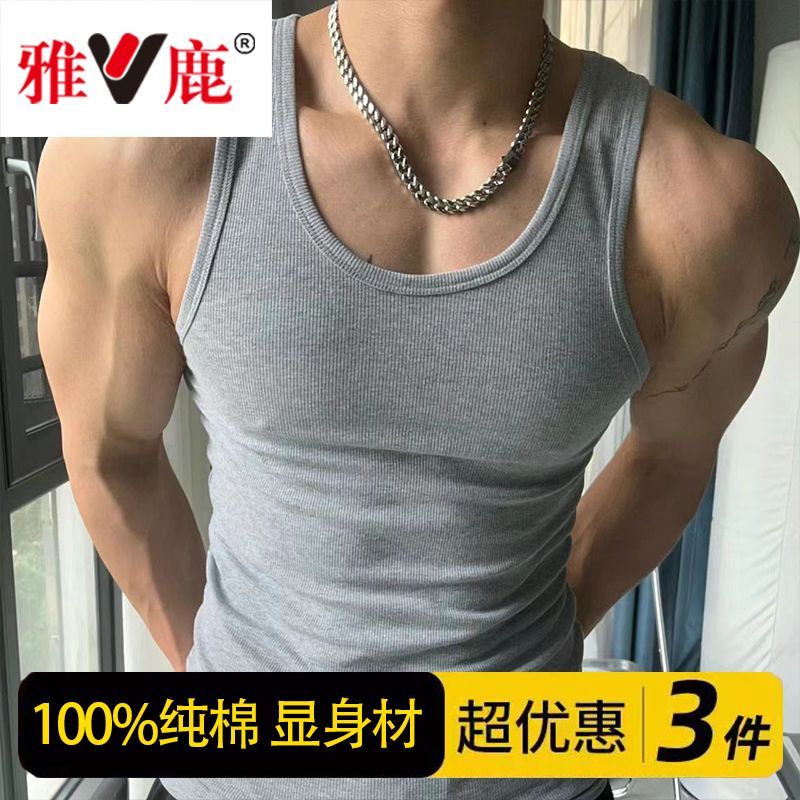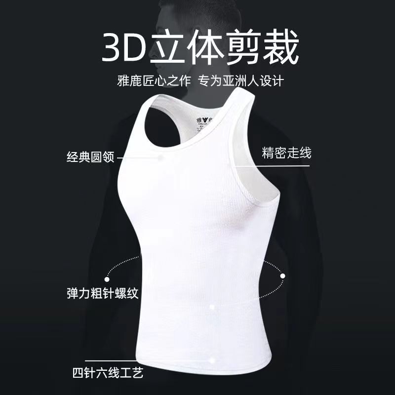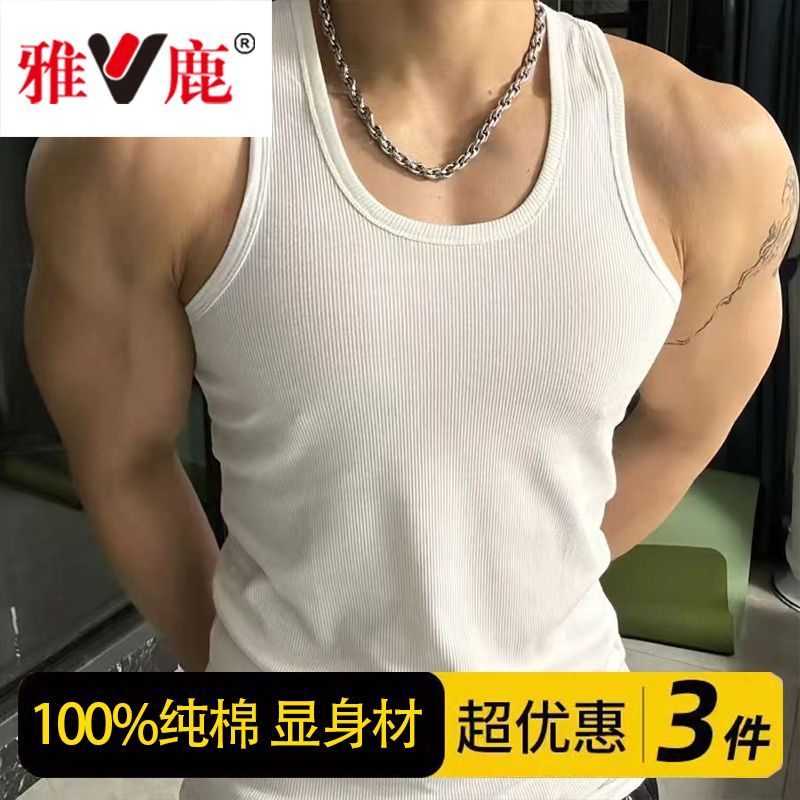 雅鹿高档美式纯棉粗螺纹背心男士弹力运动健身紧身型打底透气内搭