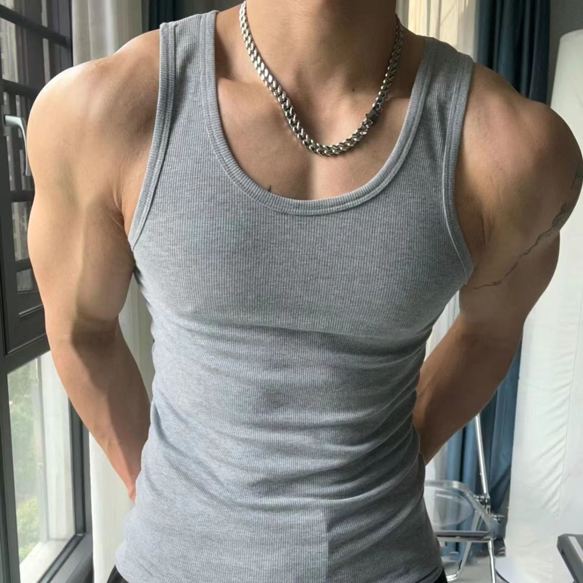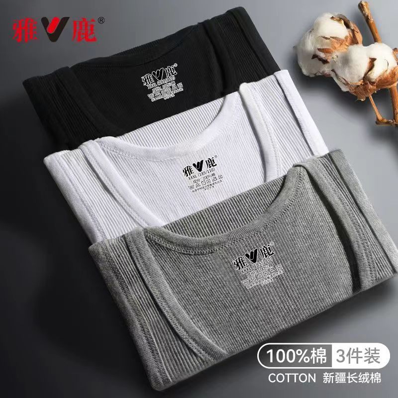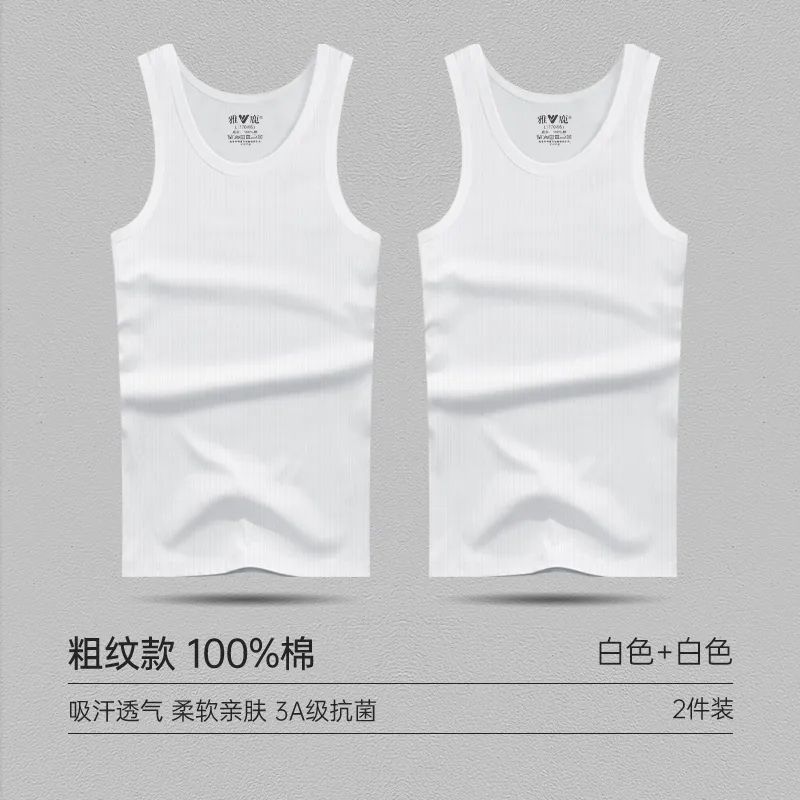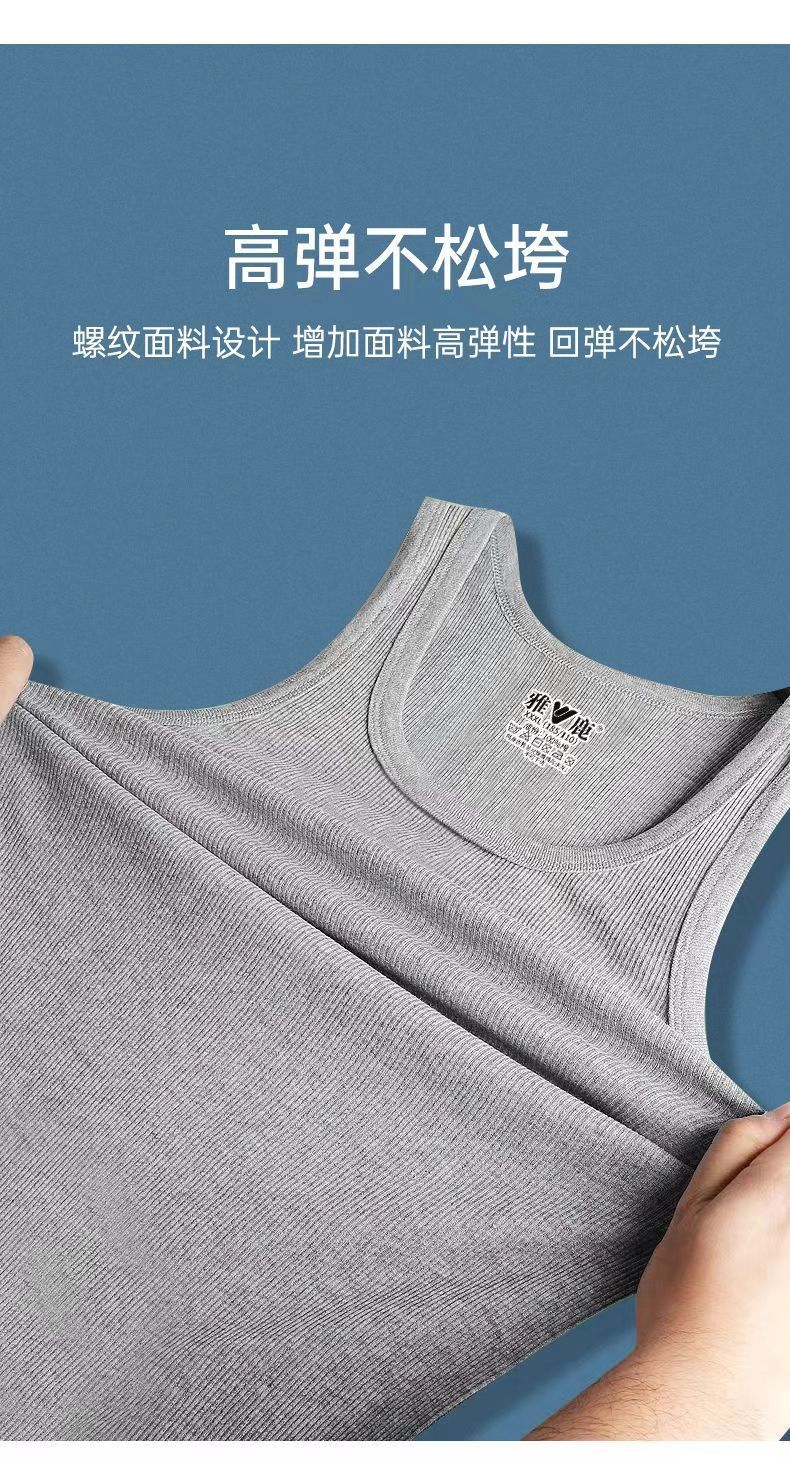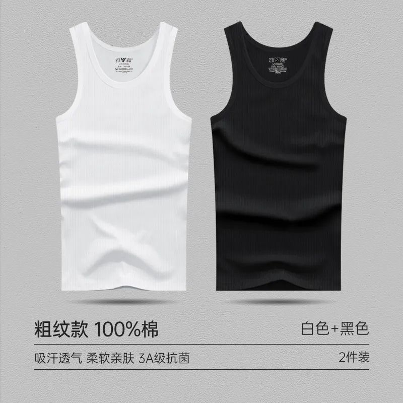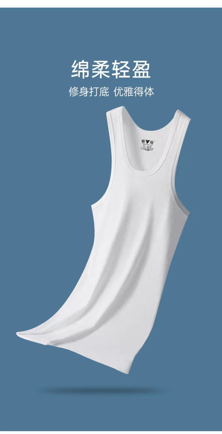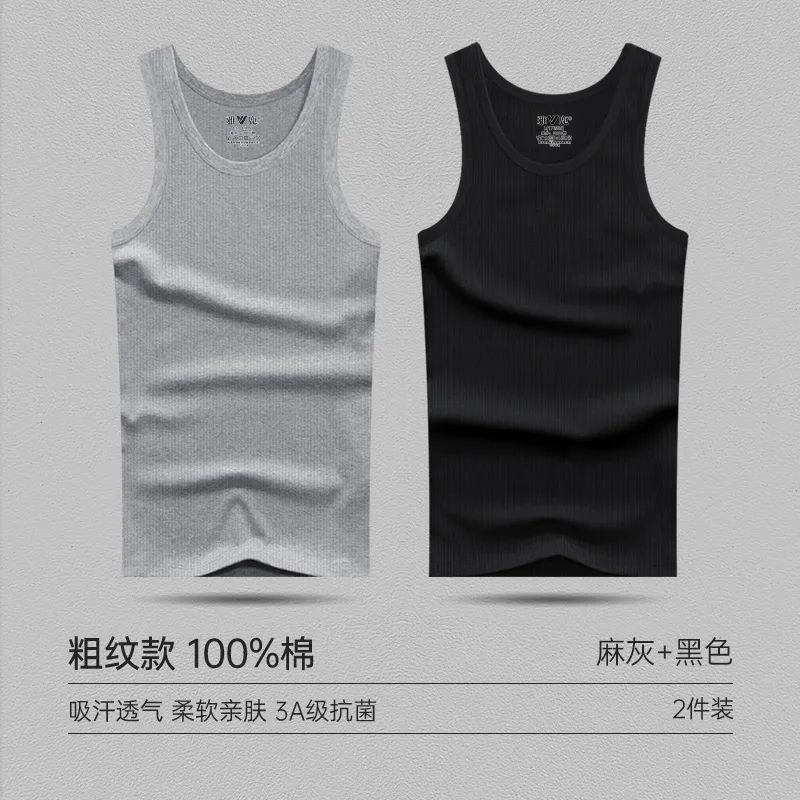 雅鹿高档美式纯棉粗螺纹背心男士弹力运动健身紧身型打底透气内搭