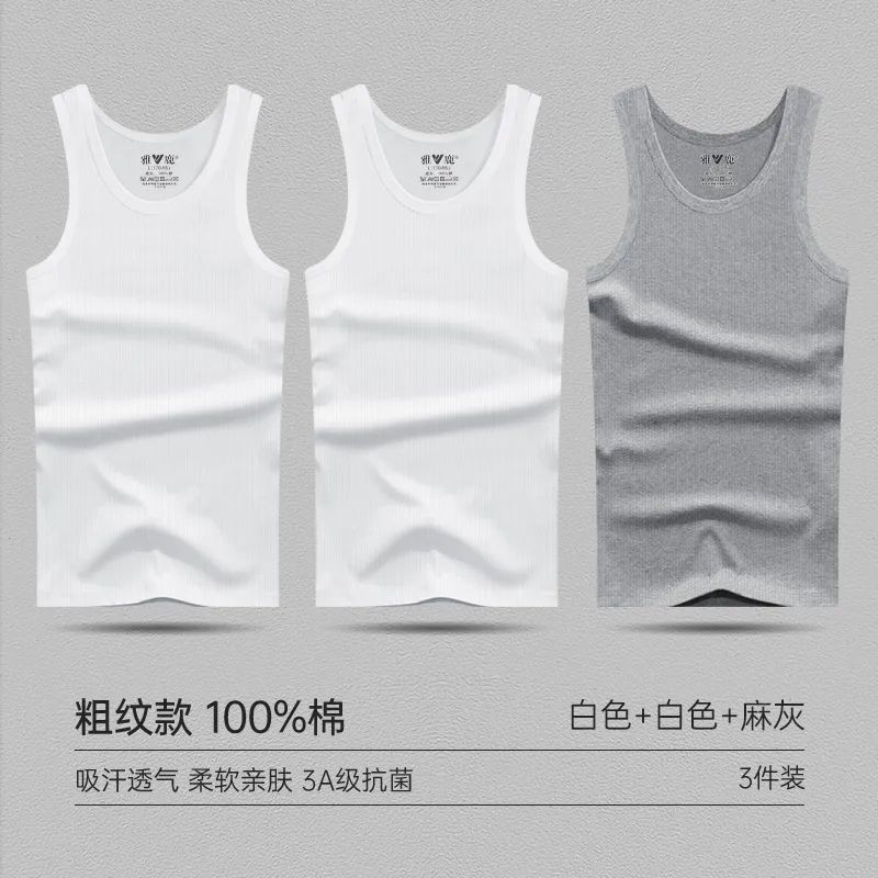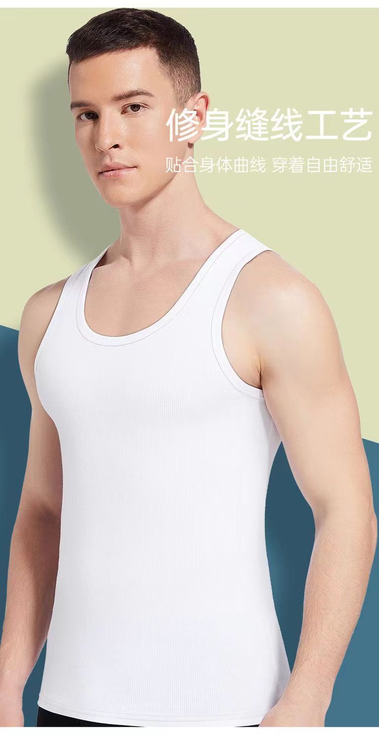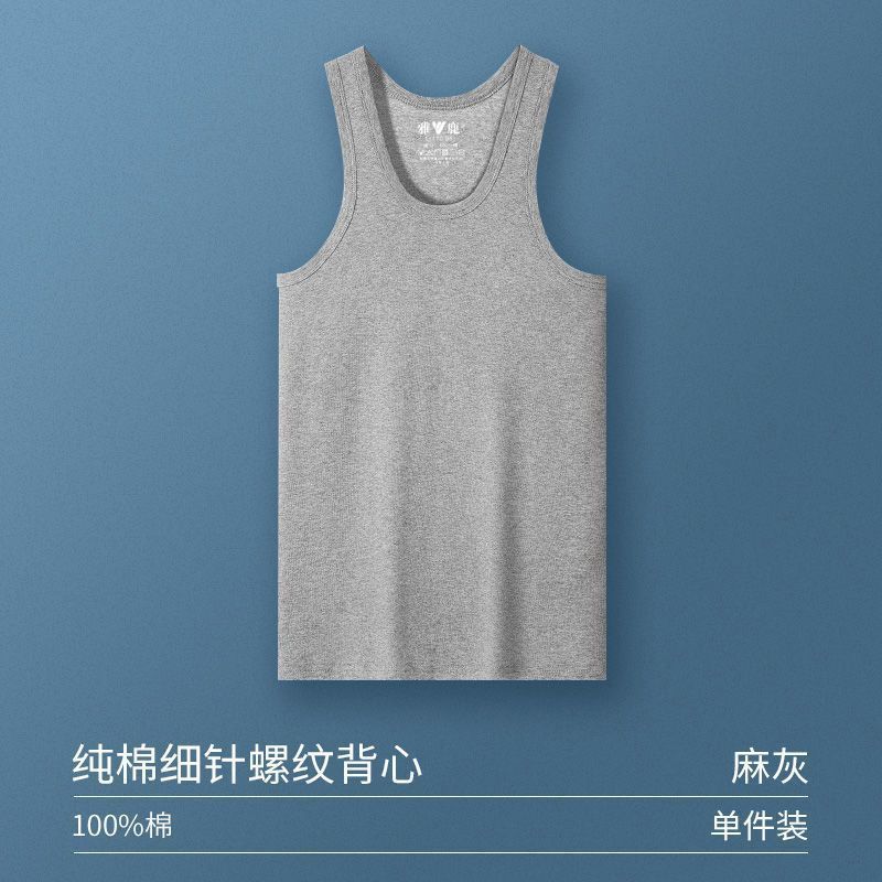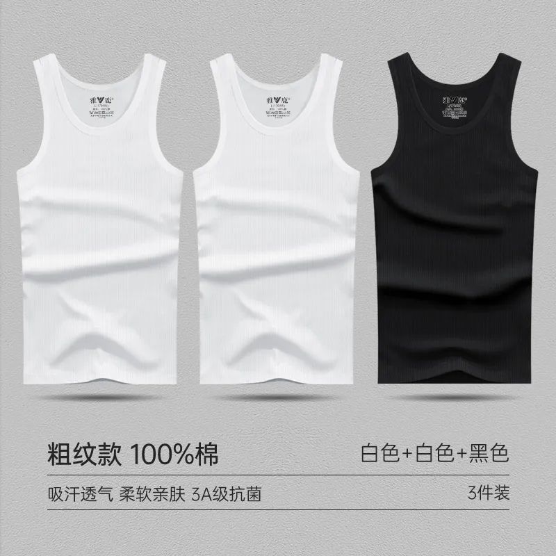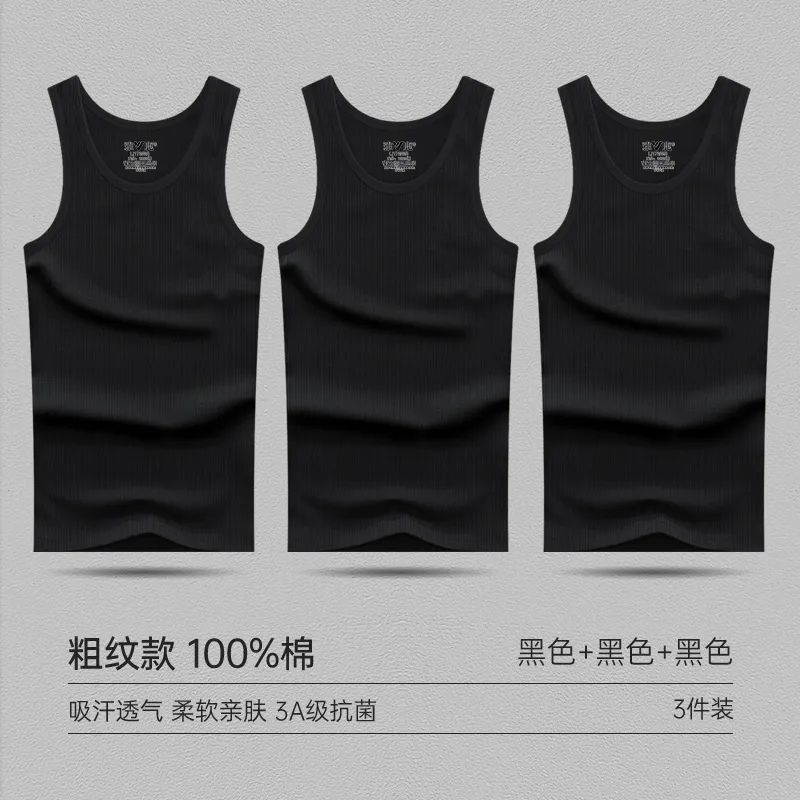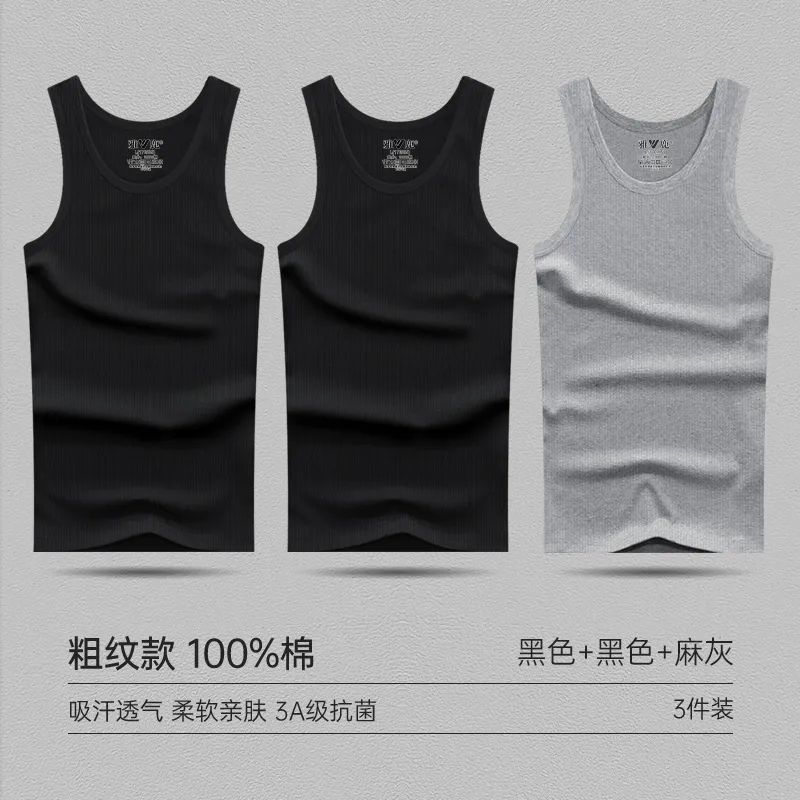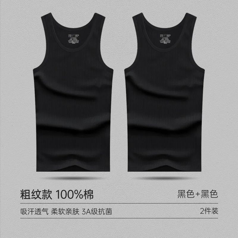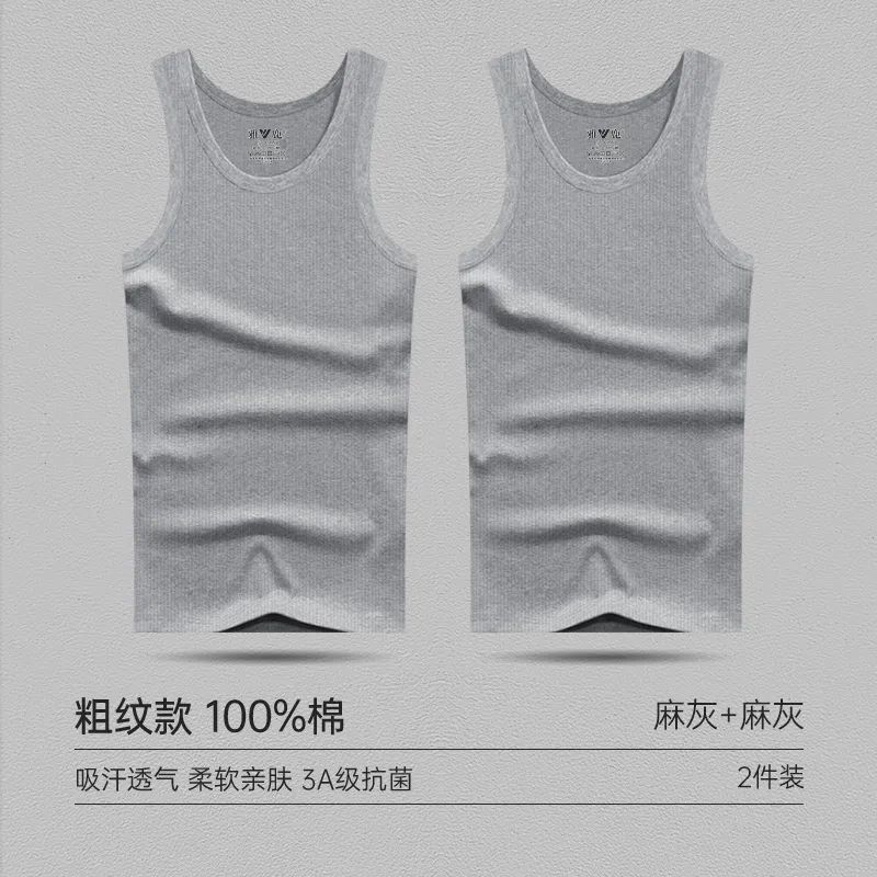 雅鹿高档美式纯棉粗螺纹背心男士弹力运动健身紧身型打底透气内搭