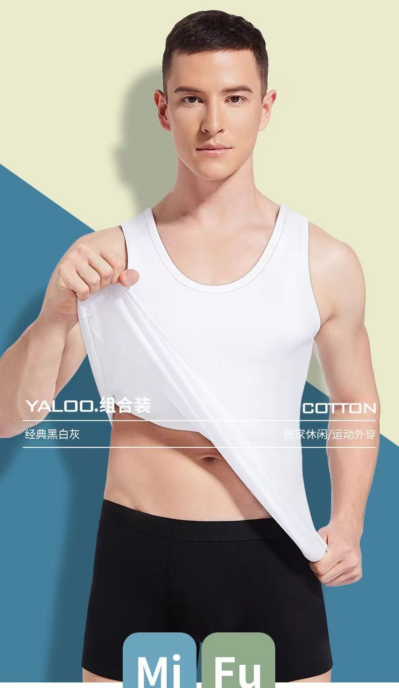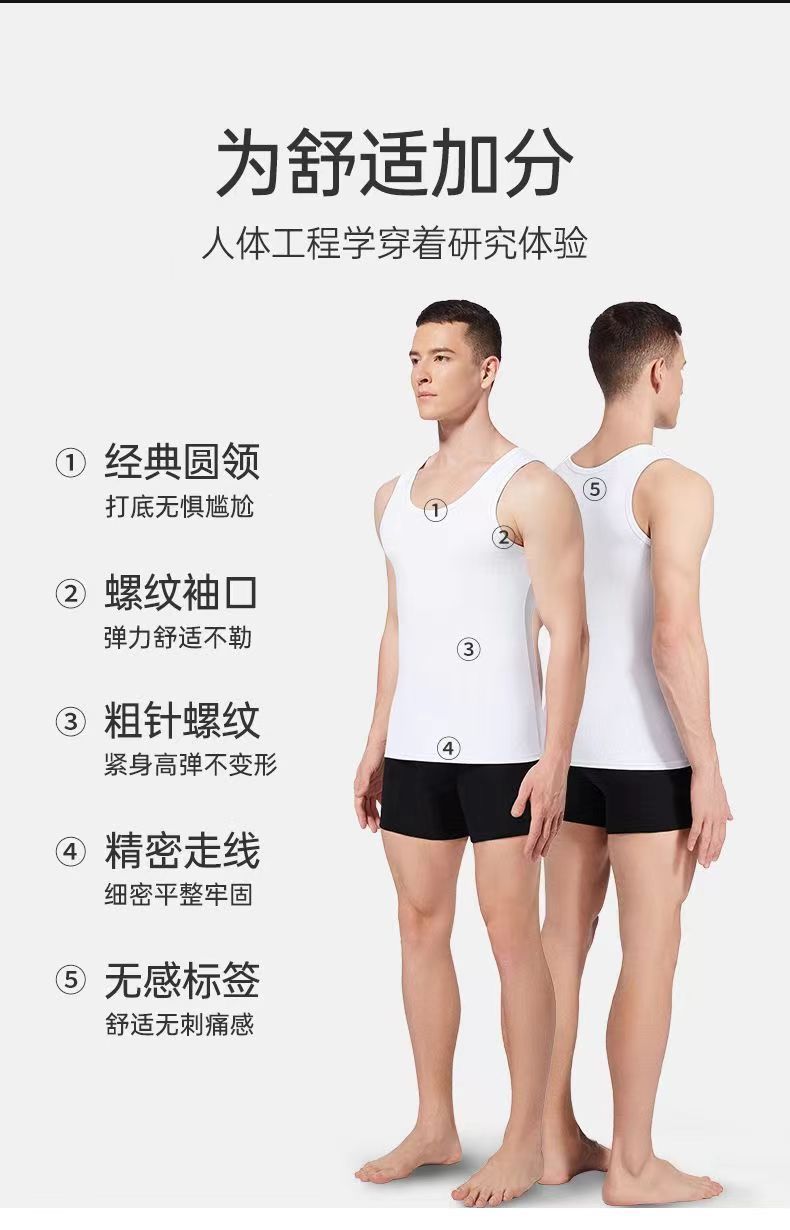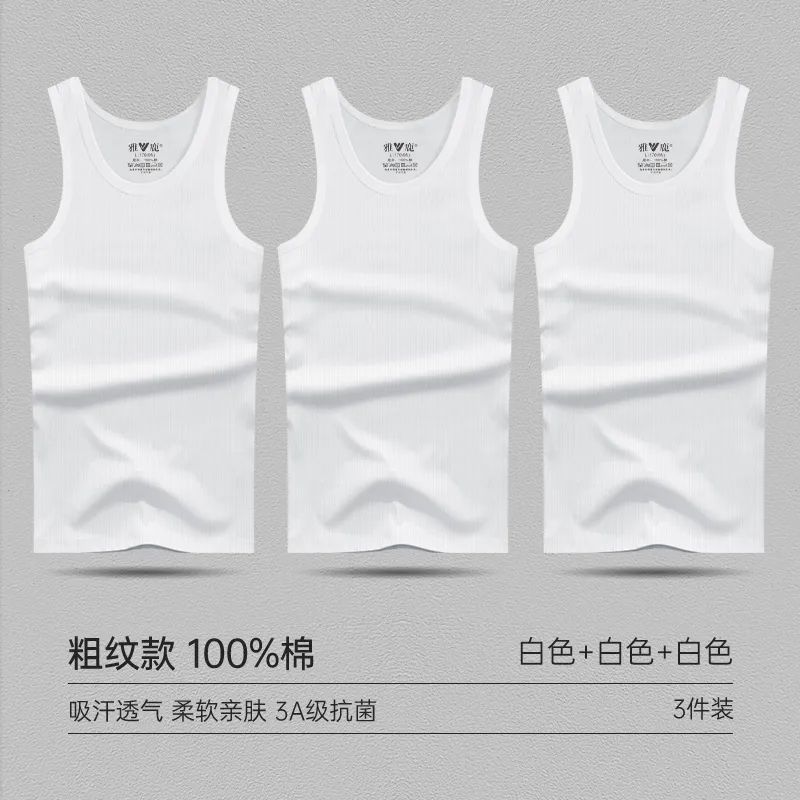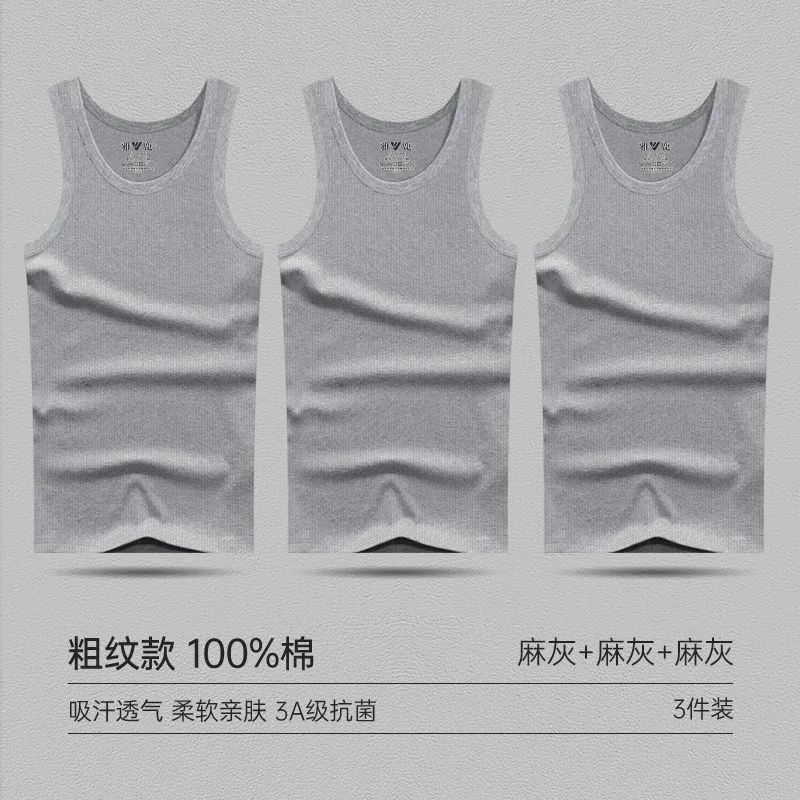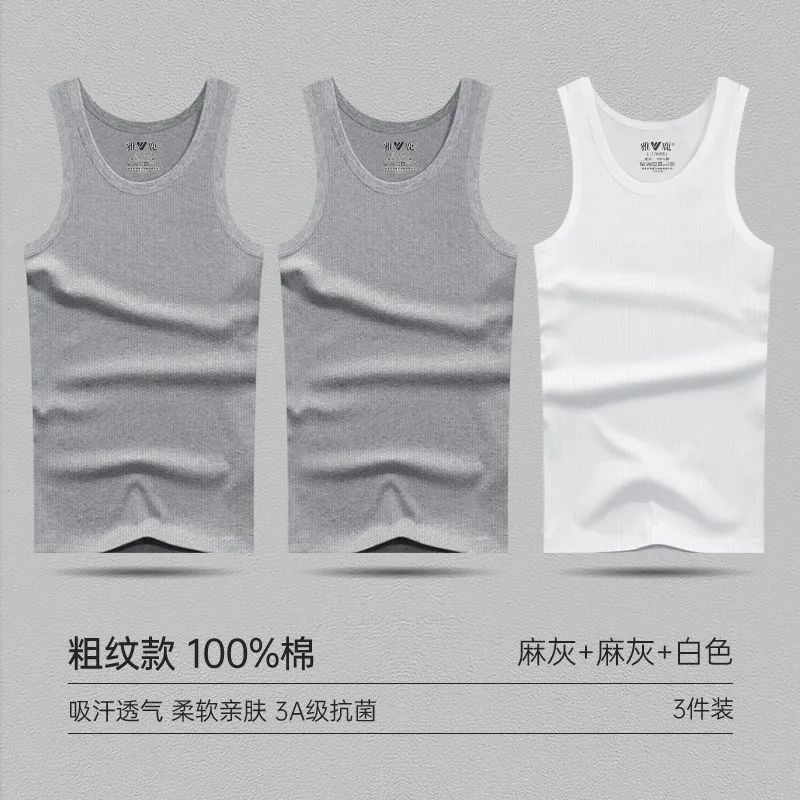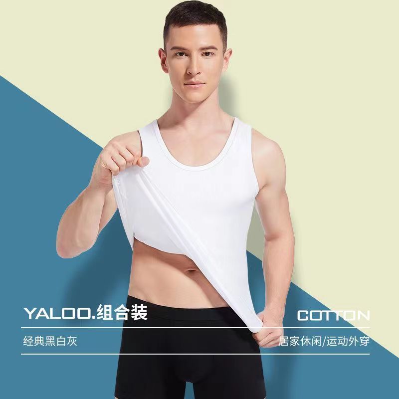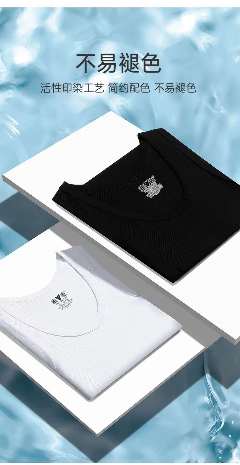 雅鹿高档美式纯棉粗螺纹背心男士弹力运动健身紧身型打底透气内搭