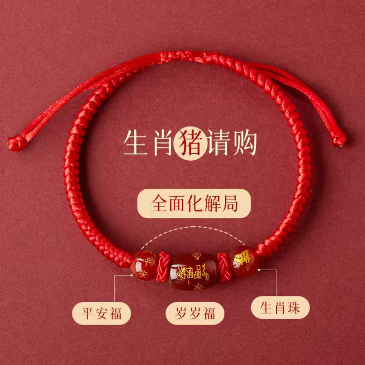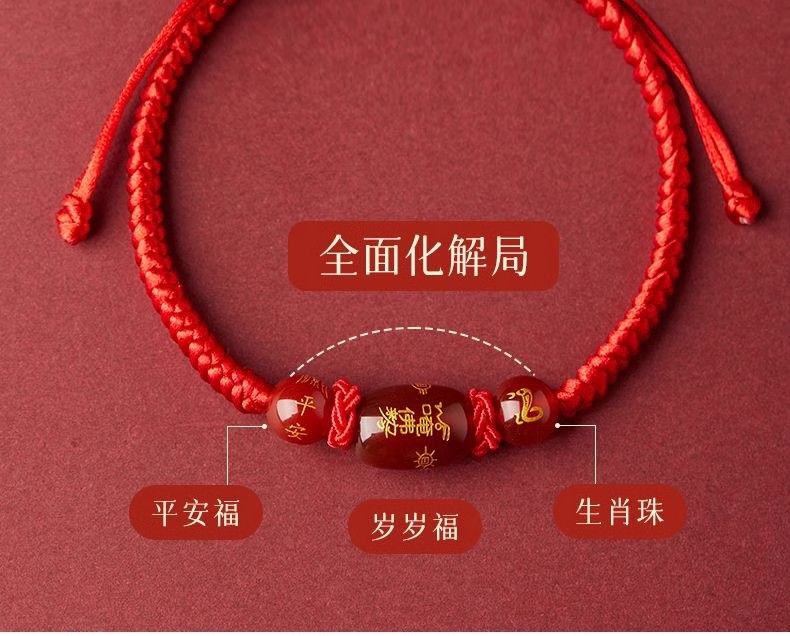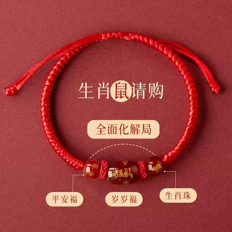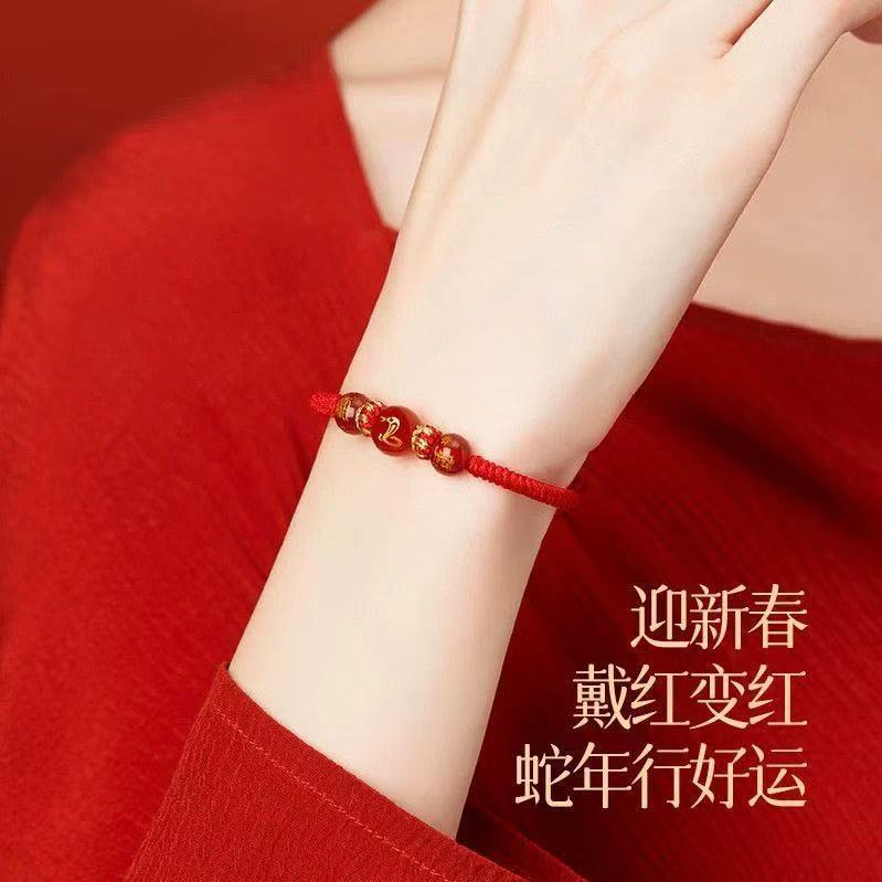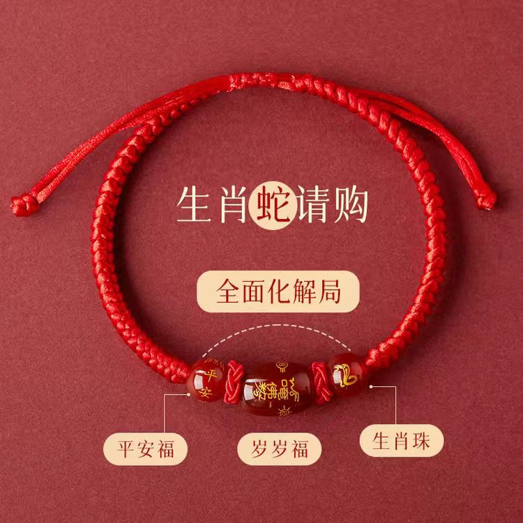 2025蛇年红绳手链女十二生肖本命年手工编织绳男女虎猴猪龙手绳