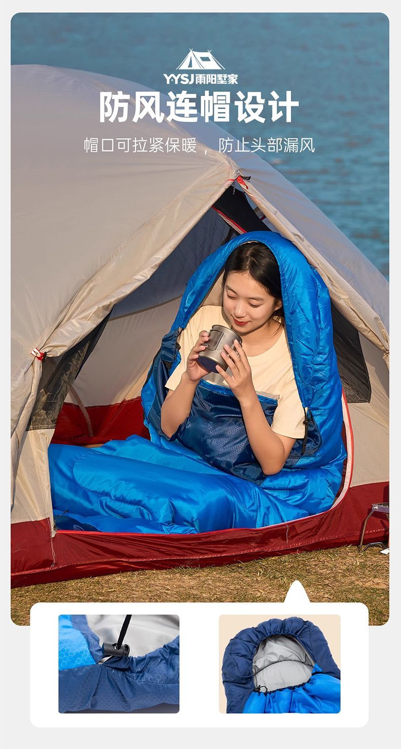 雨阳墅家睡袋成人户外大人男加厚防寒秋冬露营野营单双人被子两用