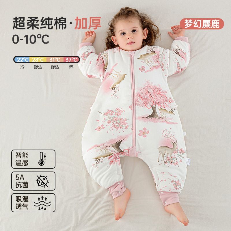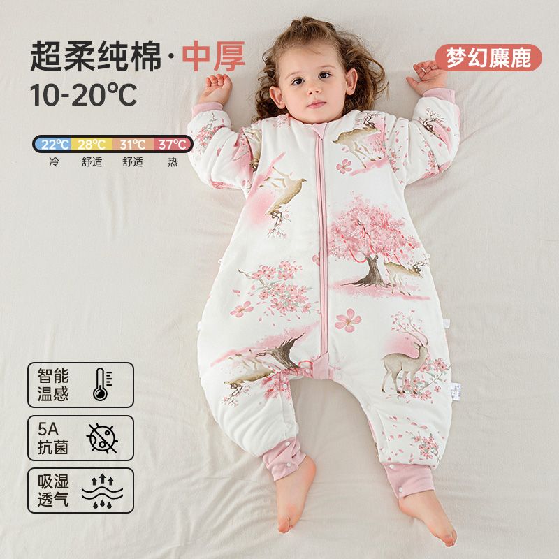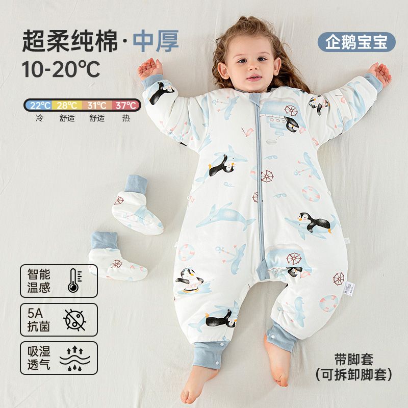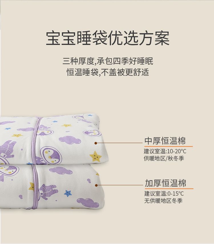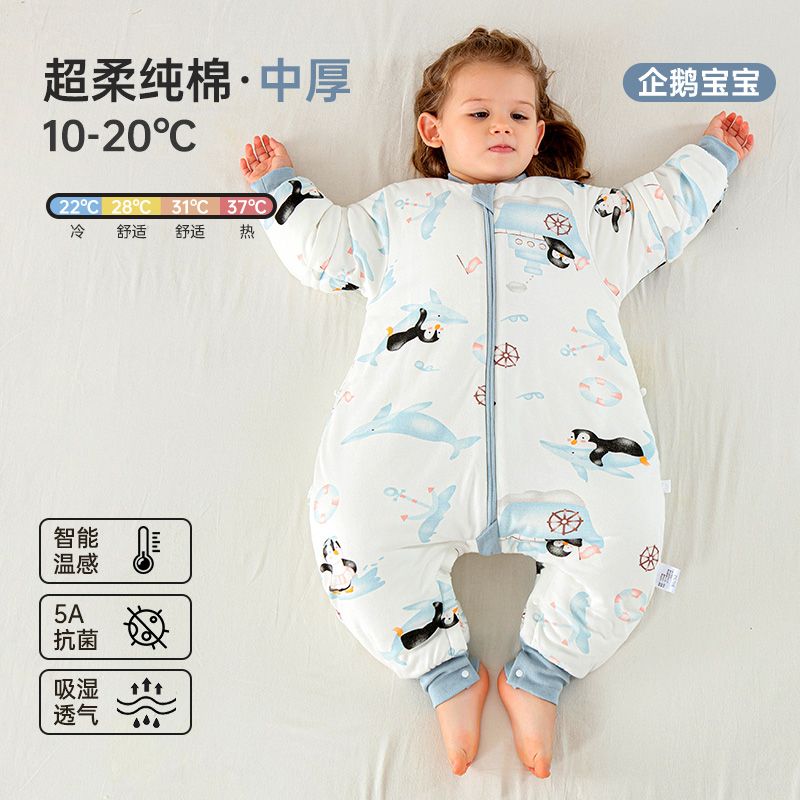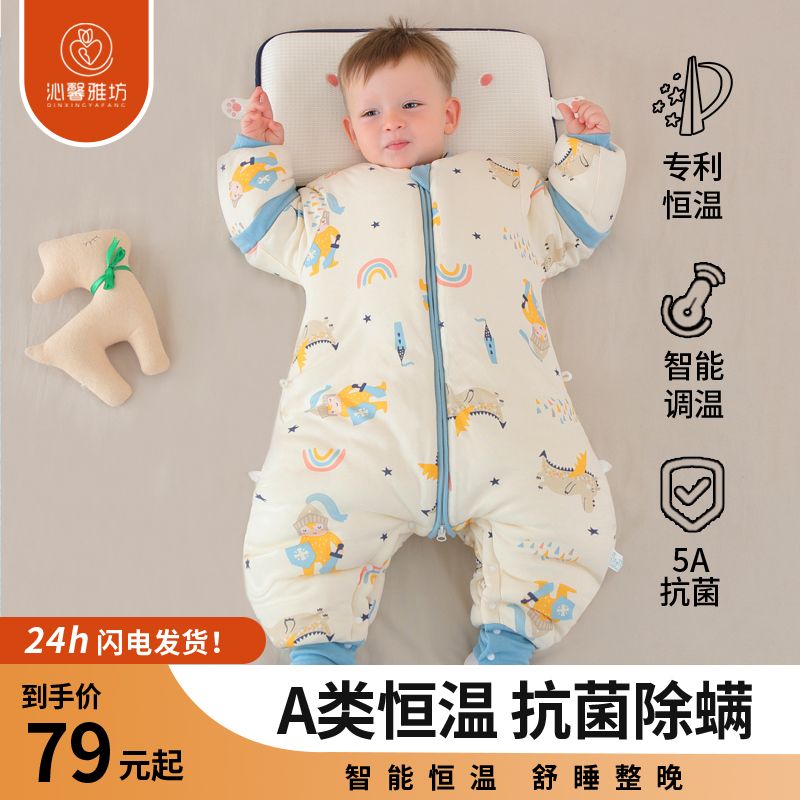 婴儿睡袋春秋冬季恒温四季通用儿童纯棉加厚防踢被保暖宝宝睡袋