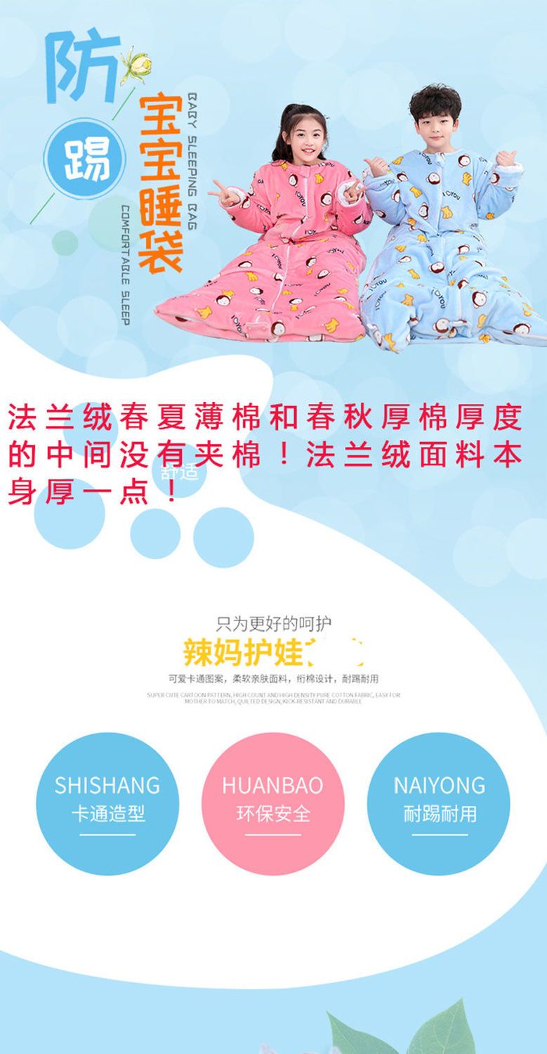 儿童睡袋宝宝中大童防踢被子神器6到12岁3到6到15岁春秋冬季加厚