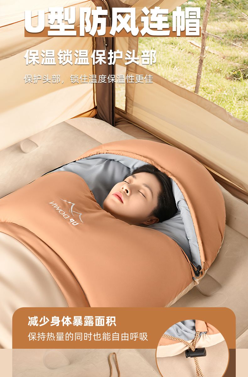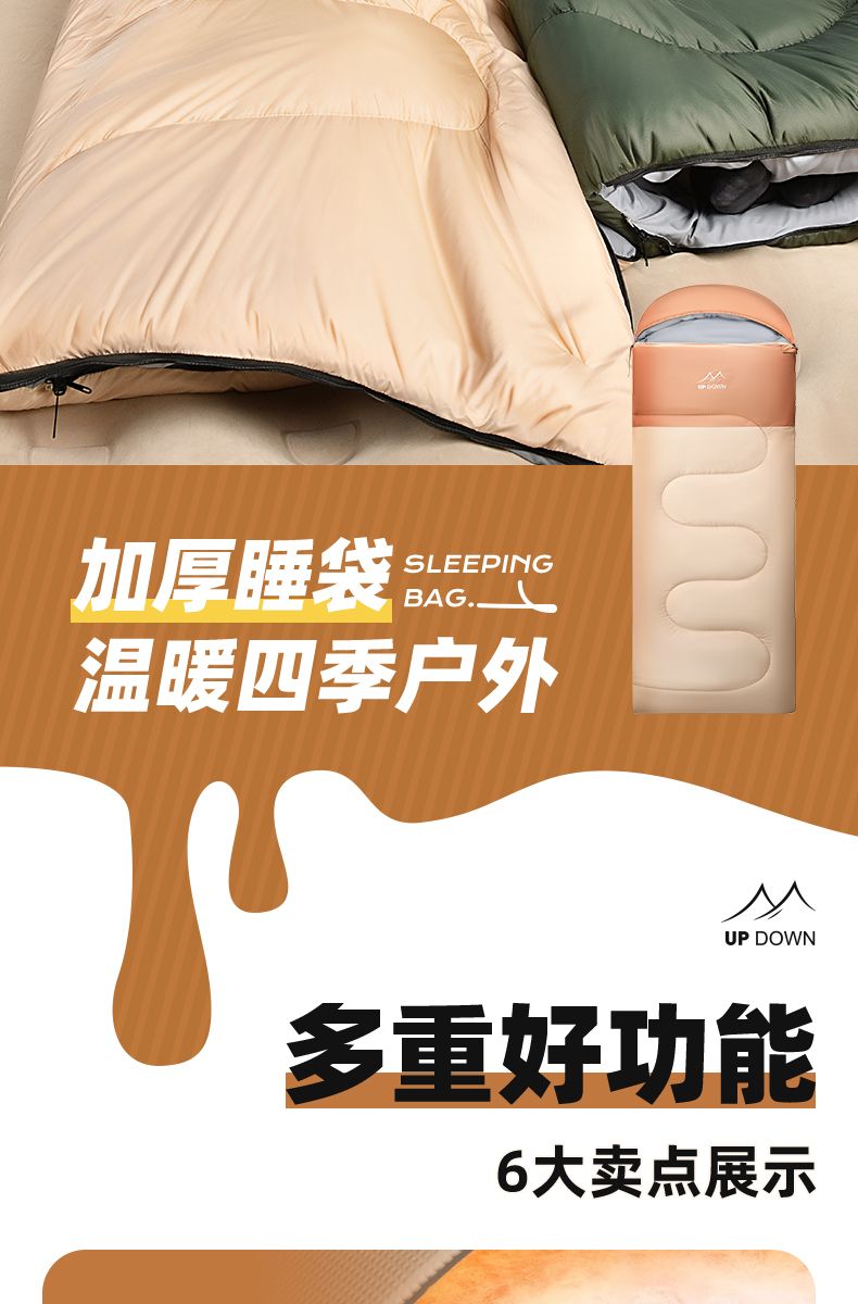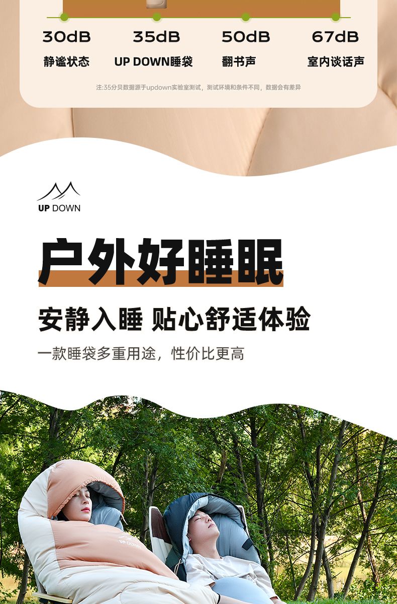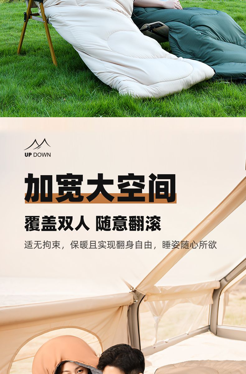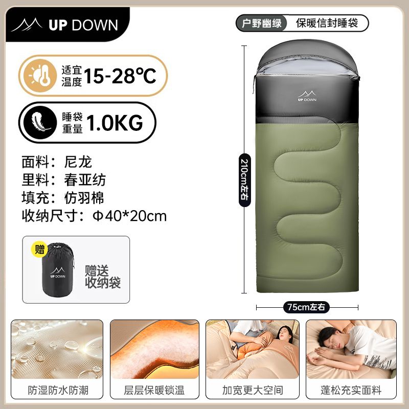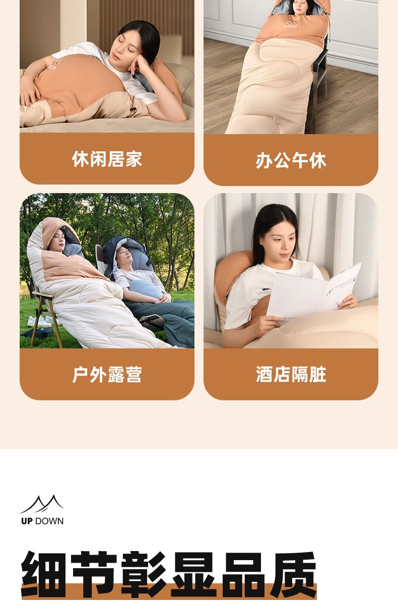 updown睡袋成人午休户外四季露营冬季加厚防寒旅行单人保暖隔脏