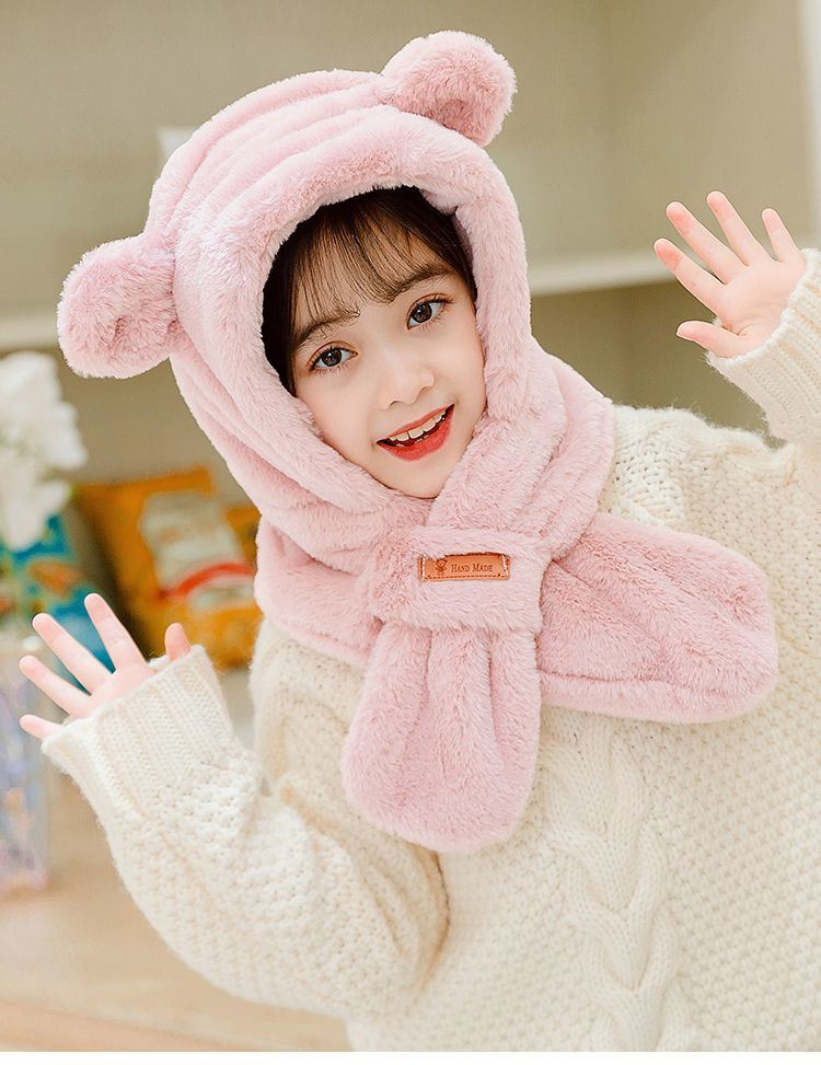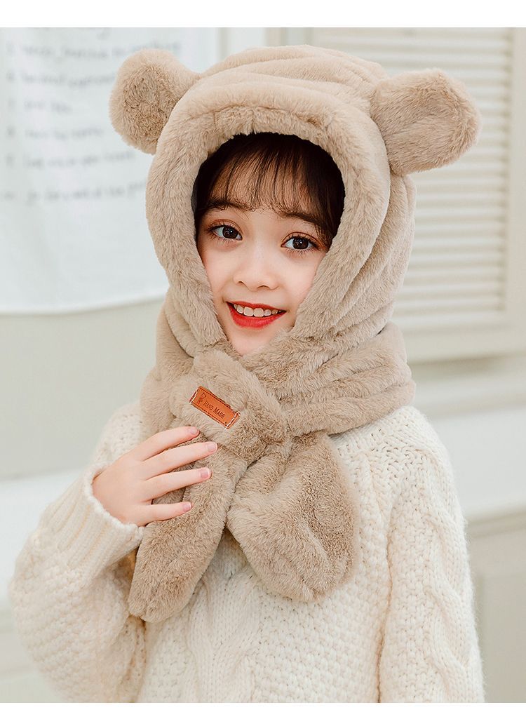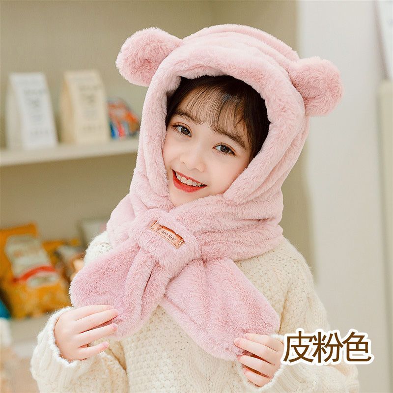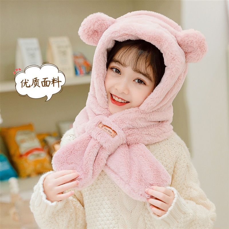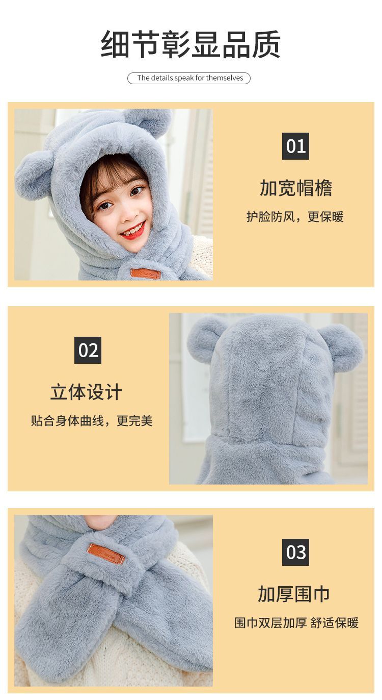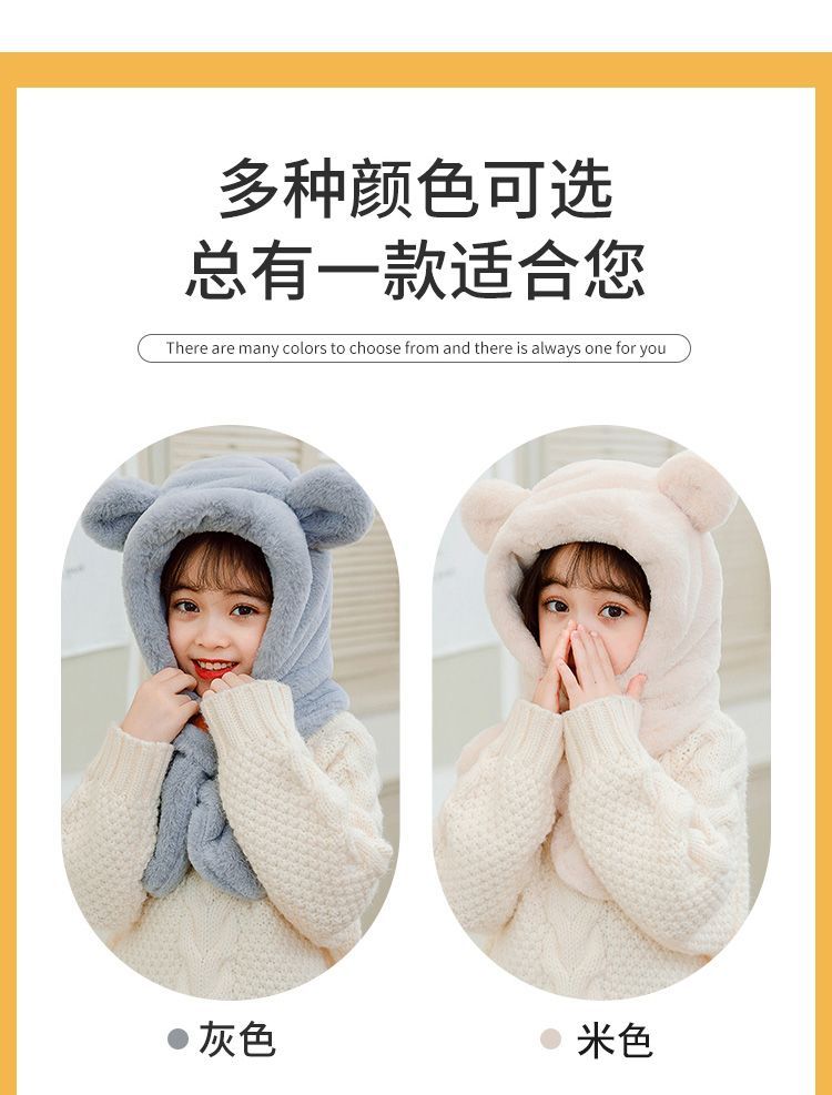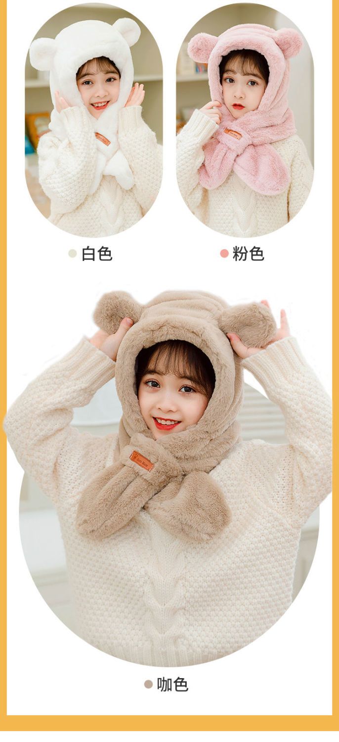 儿童可爱小熊帽子围巾一体冬季新款男童女童宝宝加厚毛绒保暖围脖