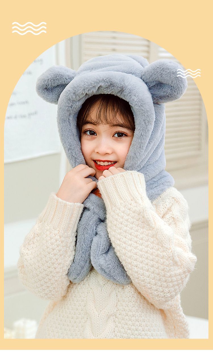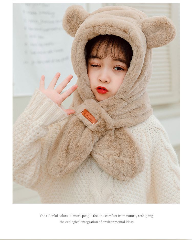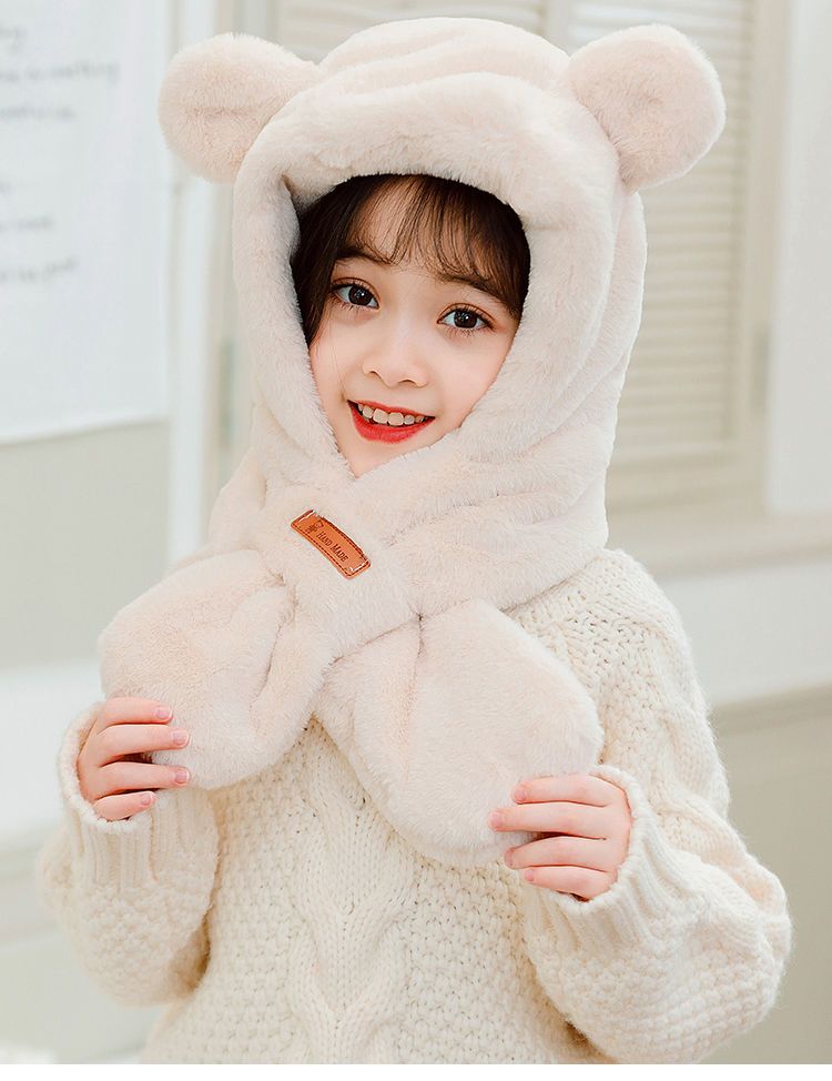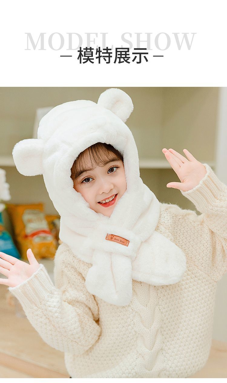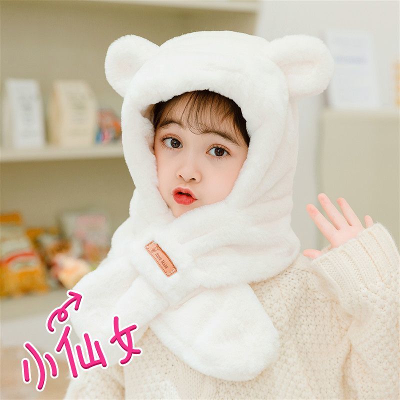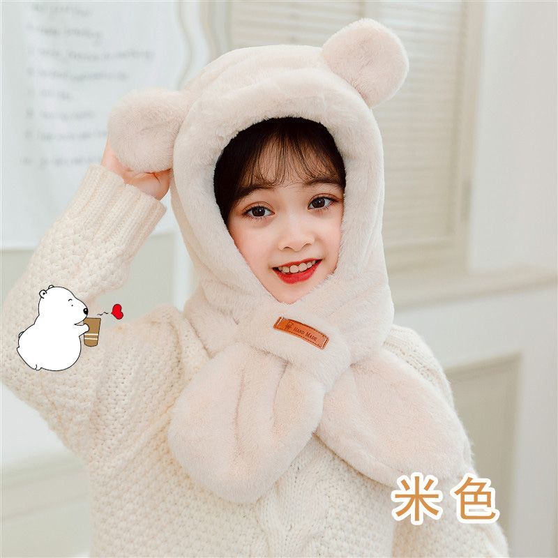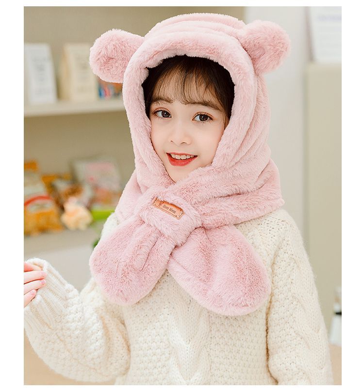 儿童可爱小熊帽子围巾一体冬季新款男童女童宝宝加厚毛绒保暖围脖