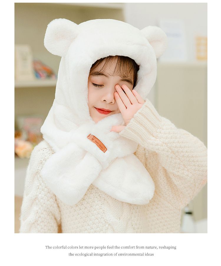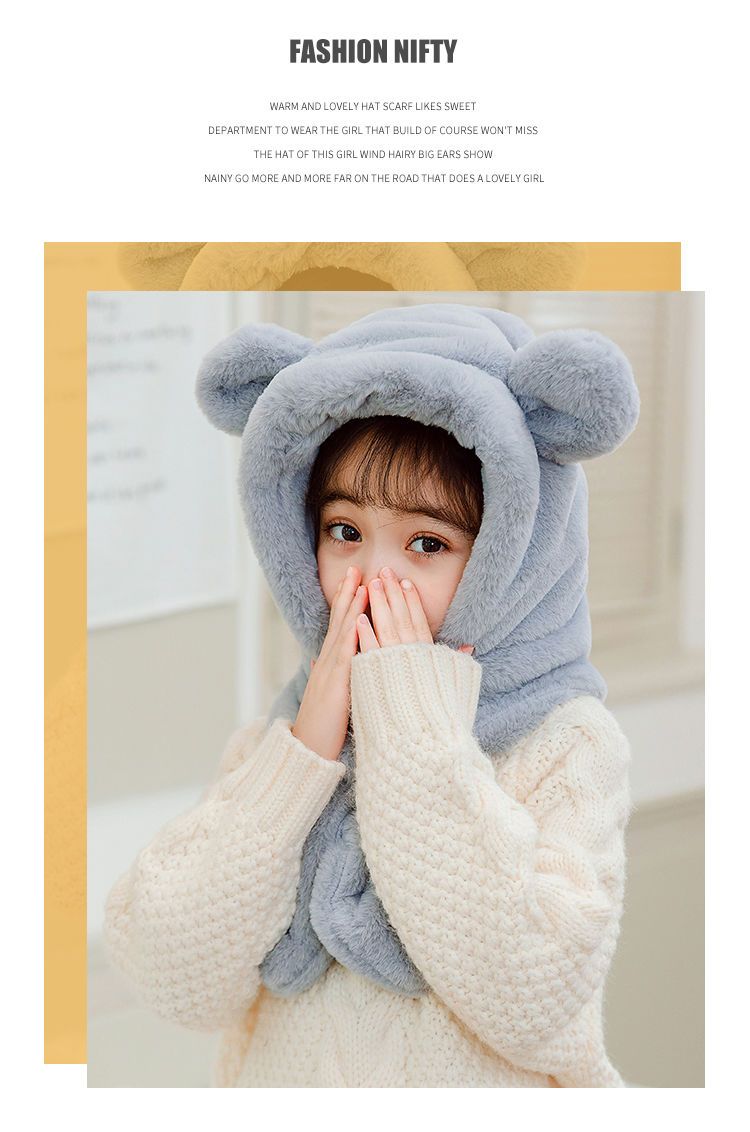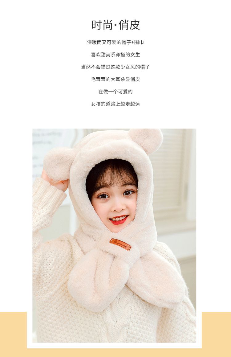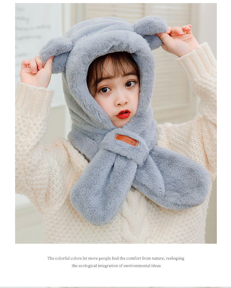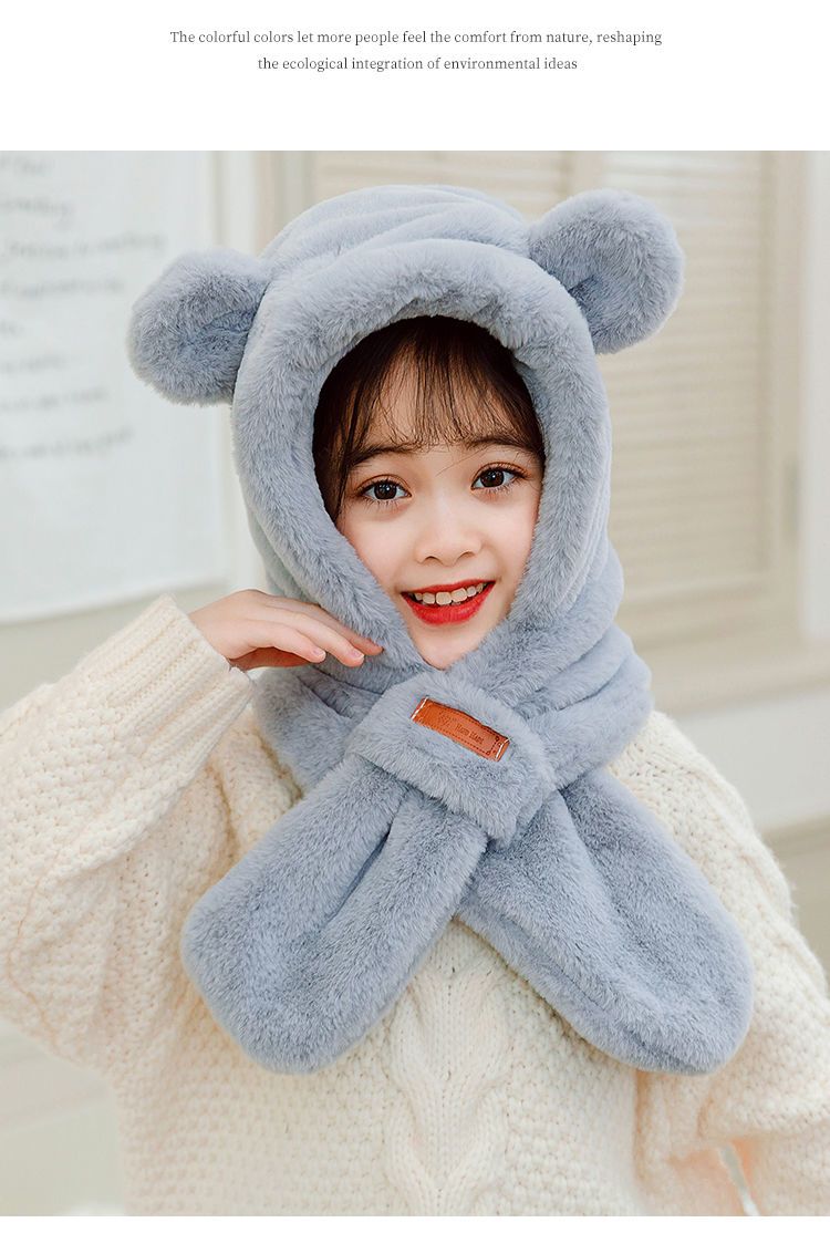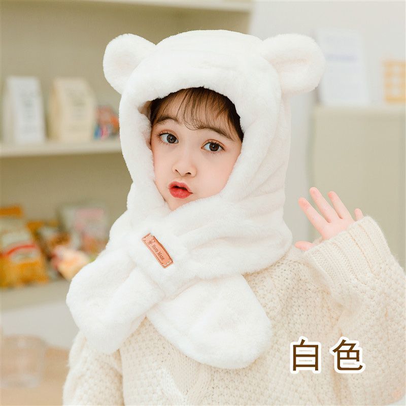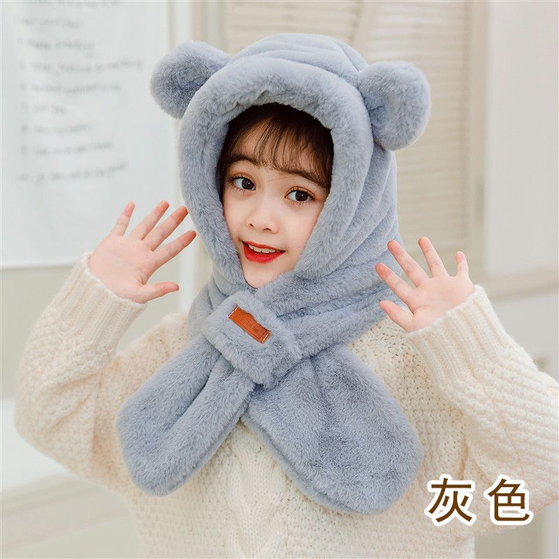 儿童可爱小熊帽子围巾一体冬季新款男童女童宝宝加厚毛绒保暖围脖