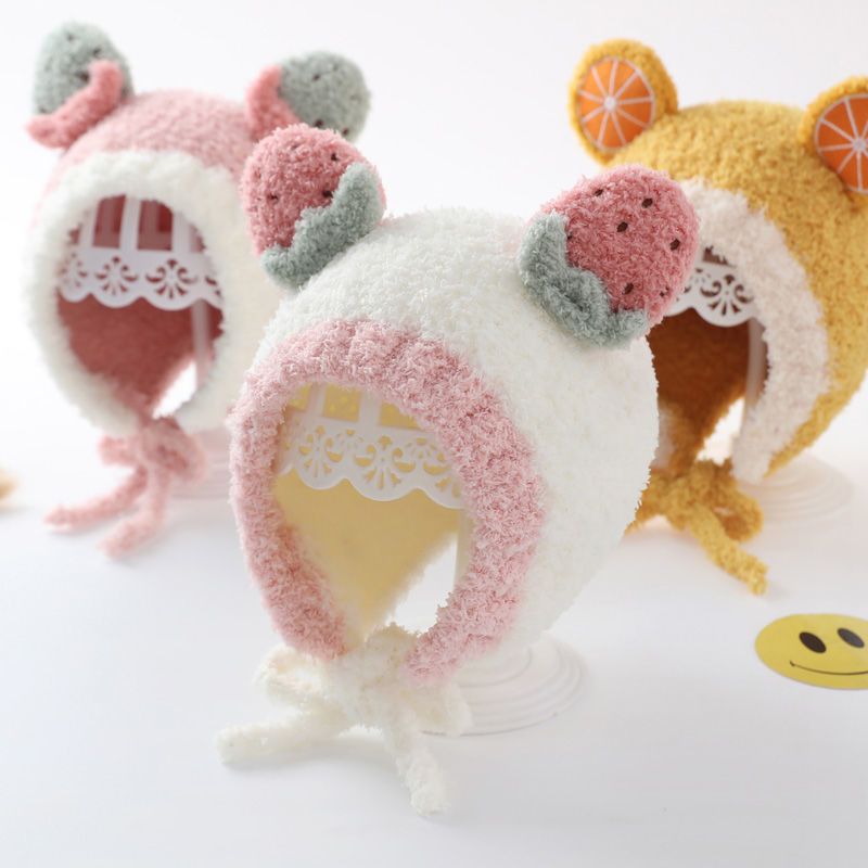 | brown fruit plush bonnet(棕色水果毛绒帽) | USD $2.95 | 999999 piece available |
