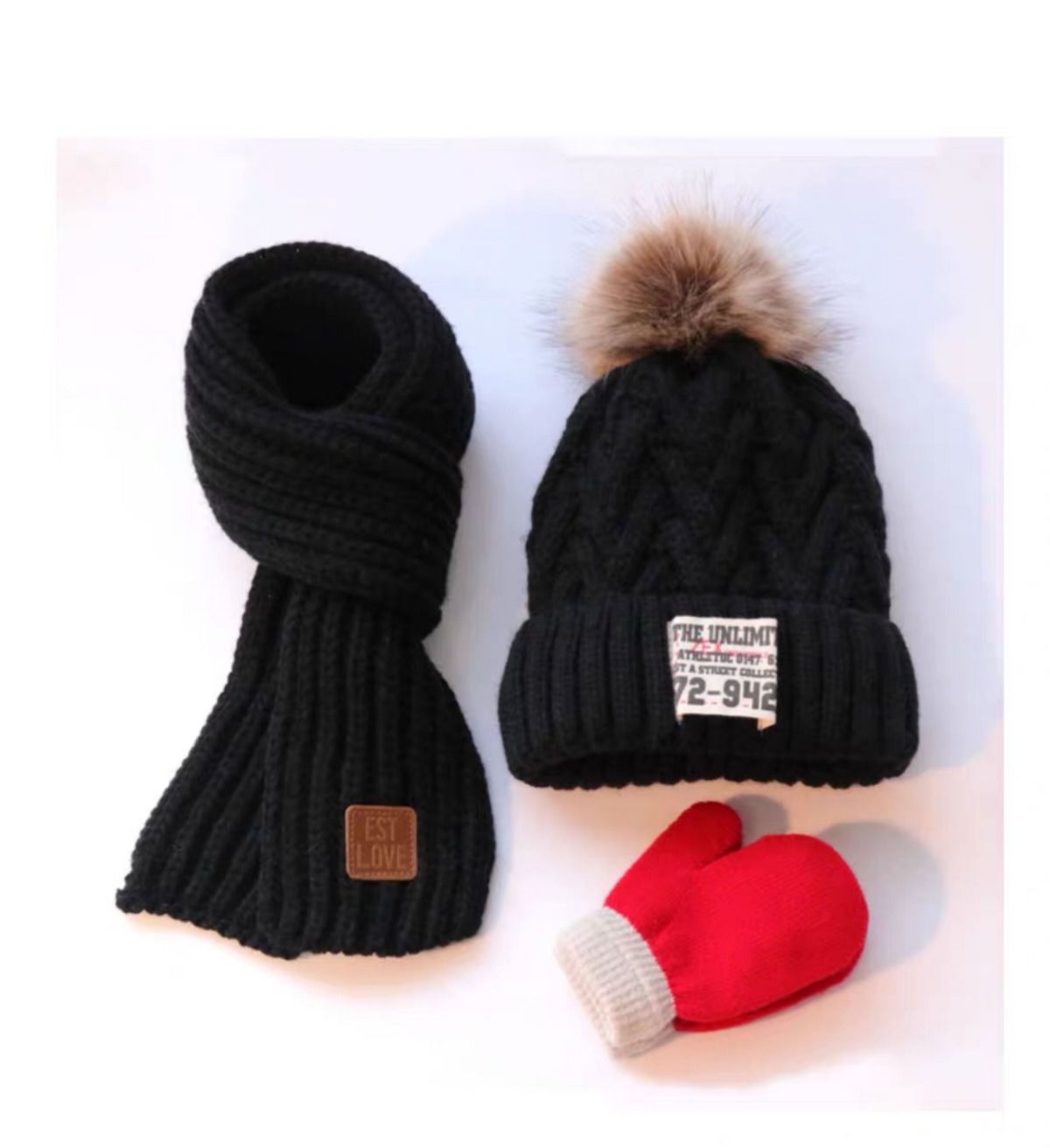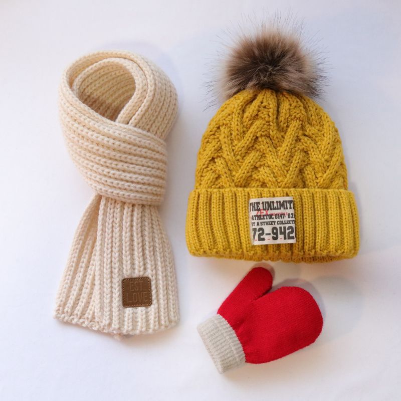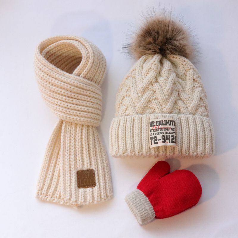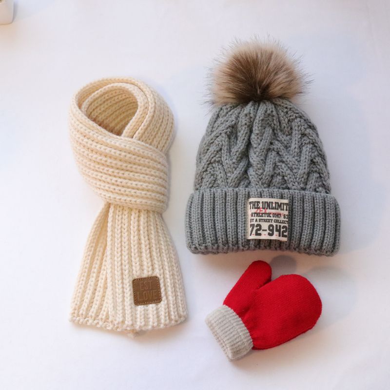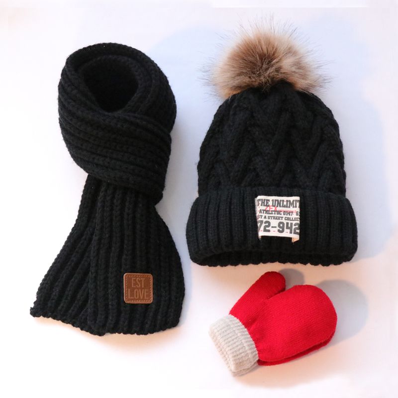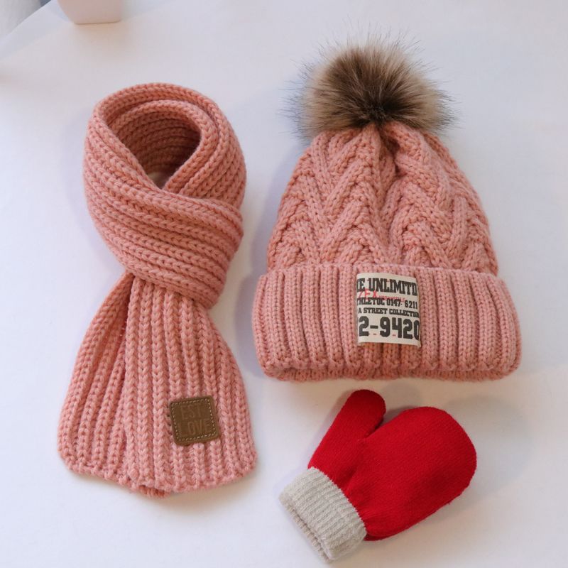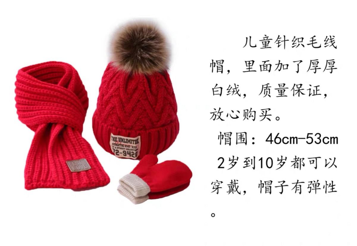 三件套秋冬儿童加绒毛线帽男女童围巾手套婴儿加厚保暖套头针织帽
