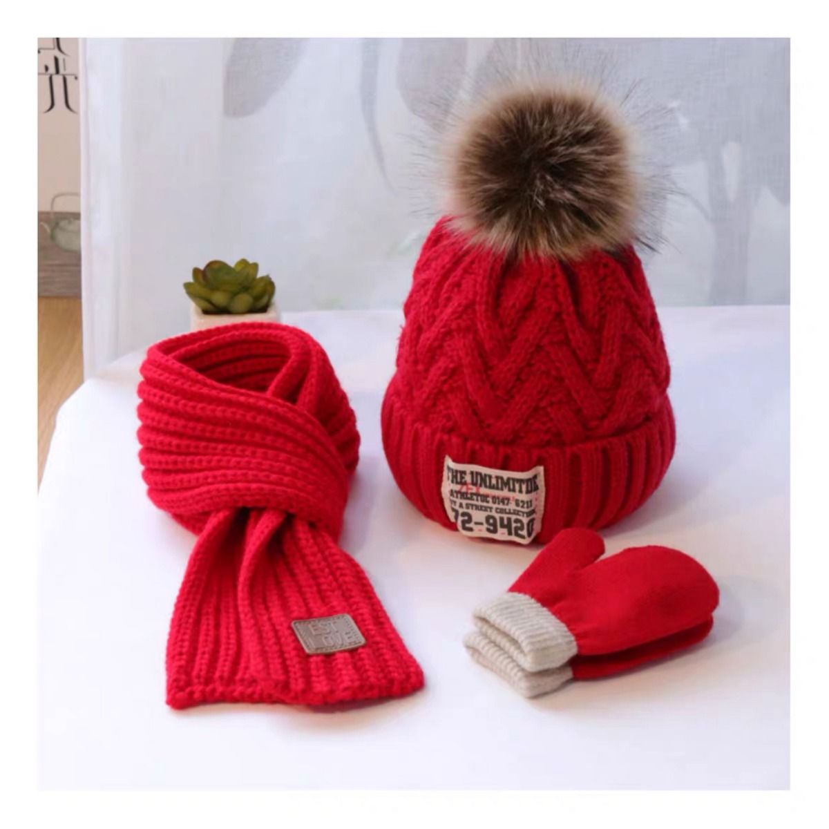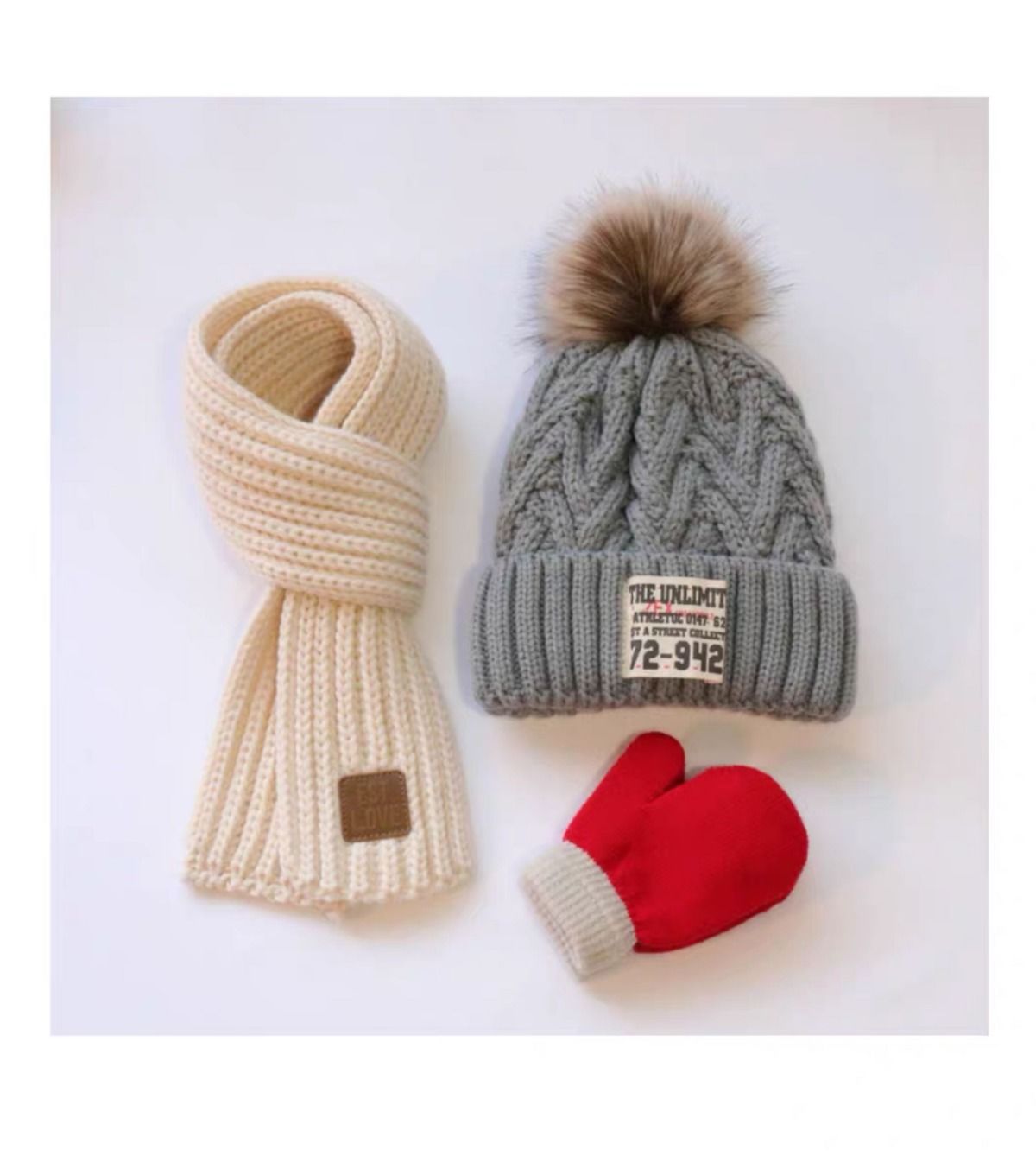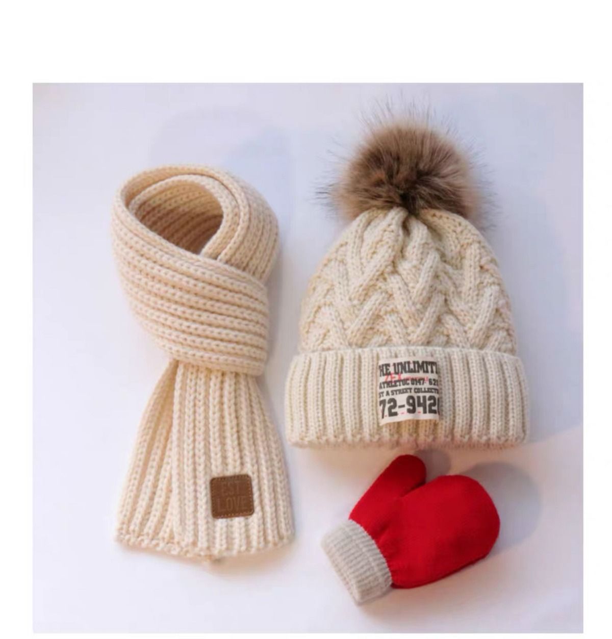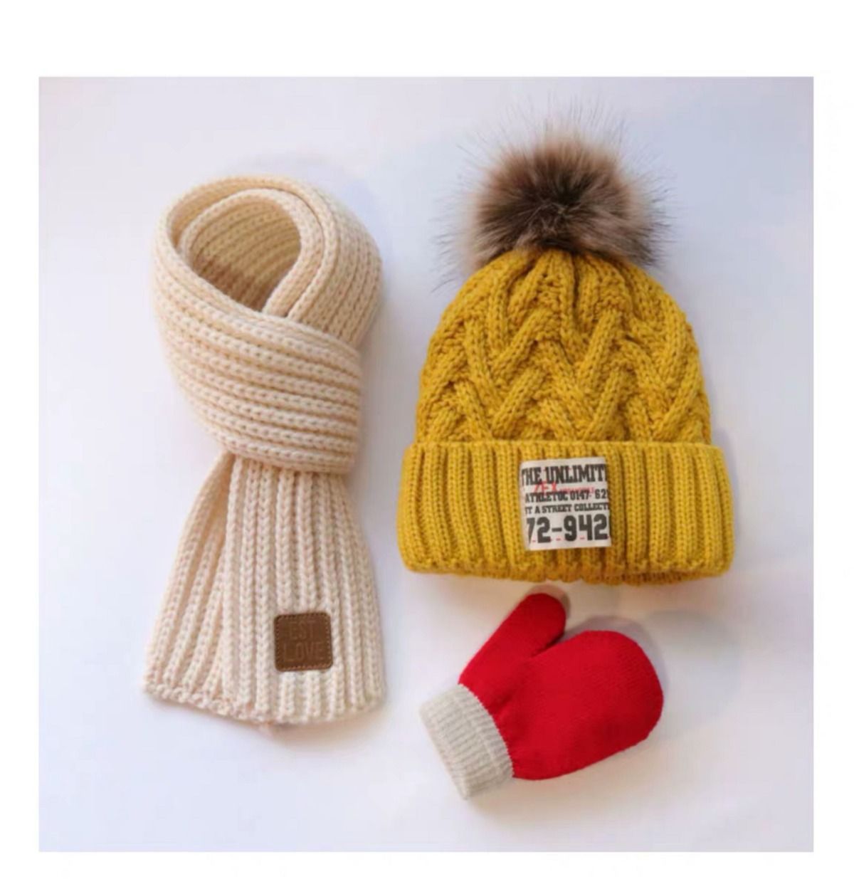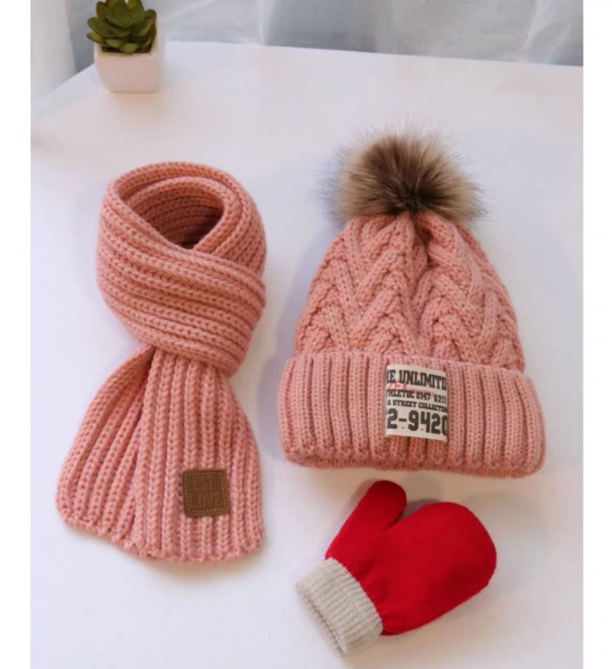 三件套秋冬儿童加绒毛线帽男女童围巾手套婴儿加厚保暖套头针织帽