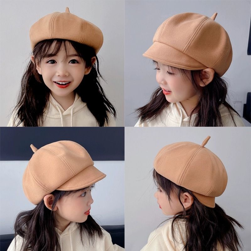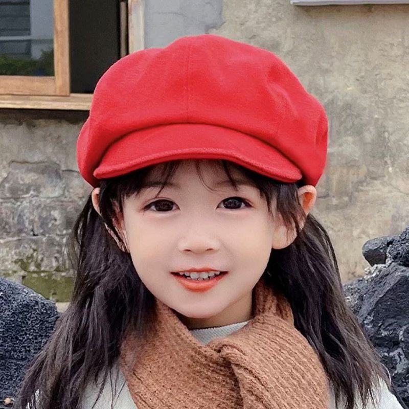 女童贝雷帽时尚韩版男童鸭舌帽儿童八角小学生帽子春秋冬保暖防风