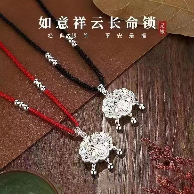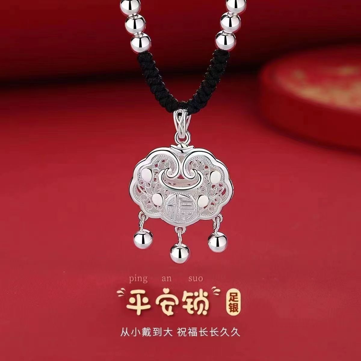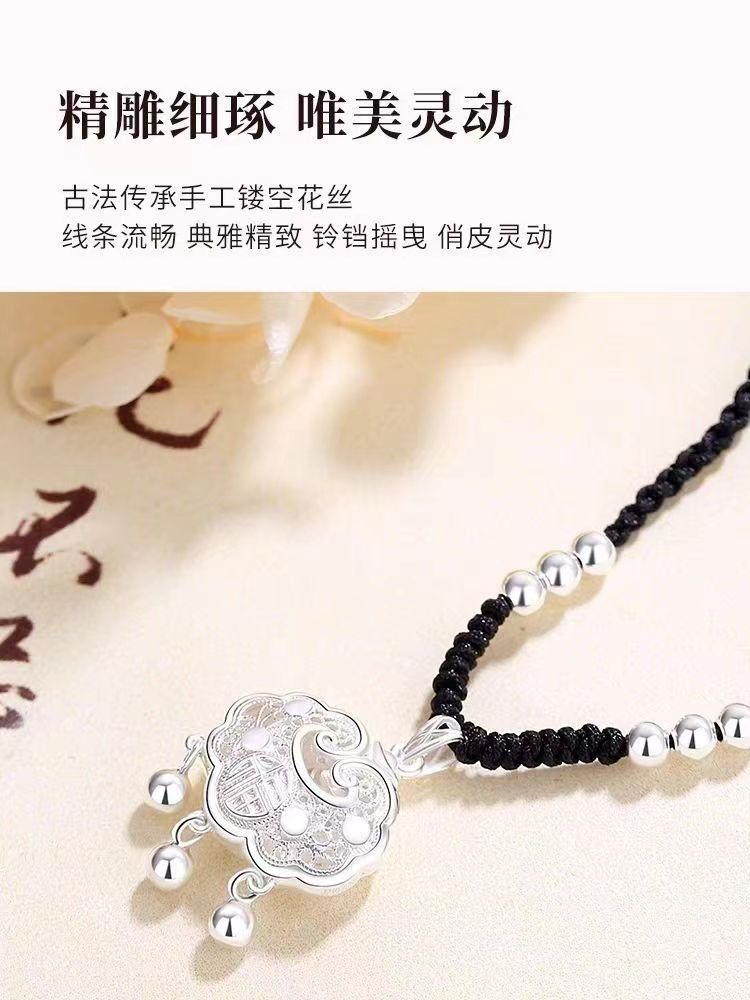 平安锁纯银925项链女甜美小众银锁长命锁送女友送闺蜜生日礼物
