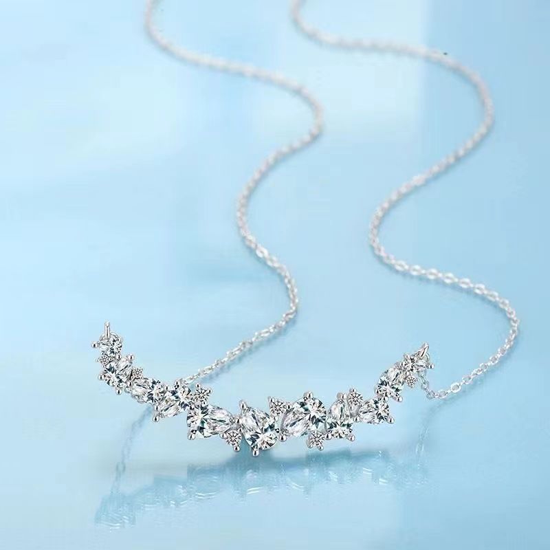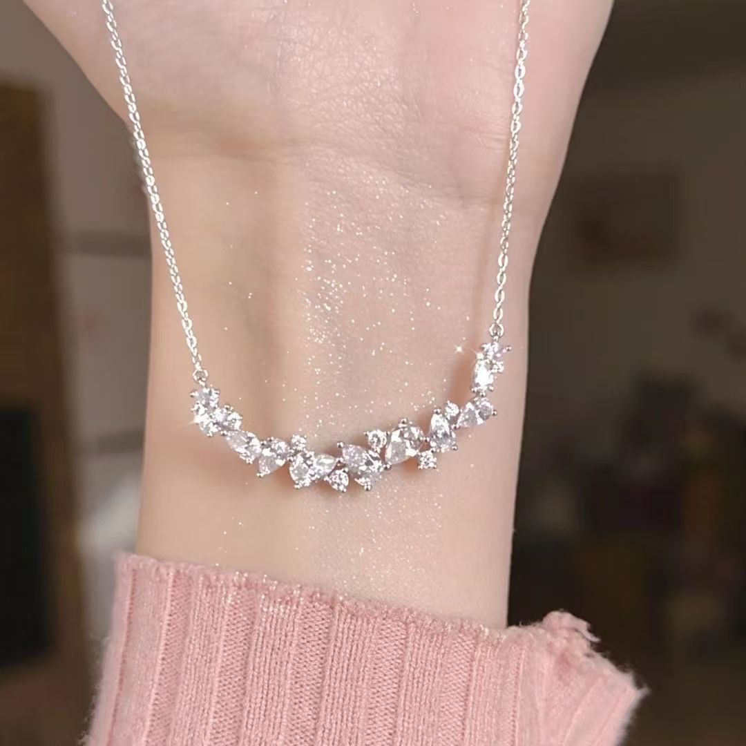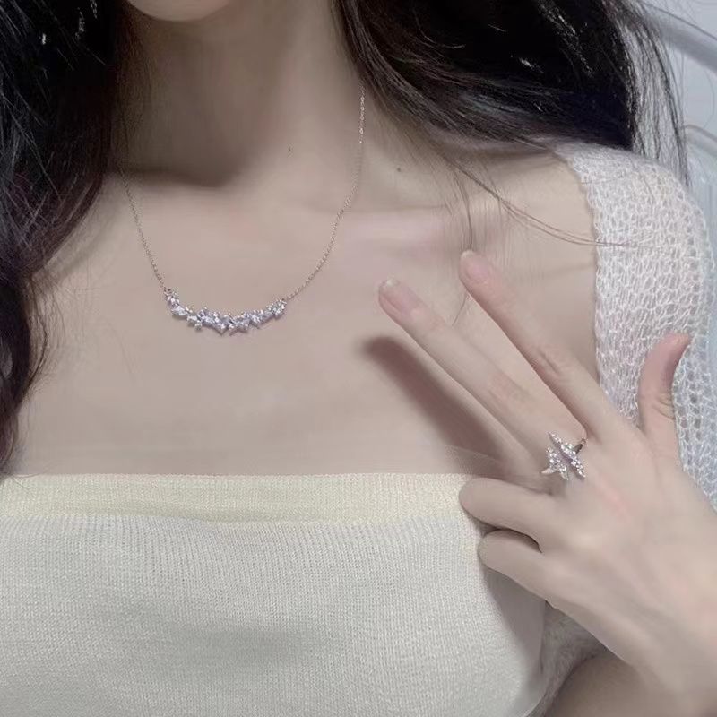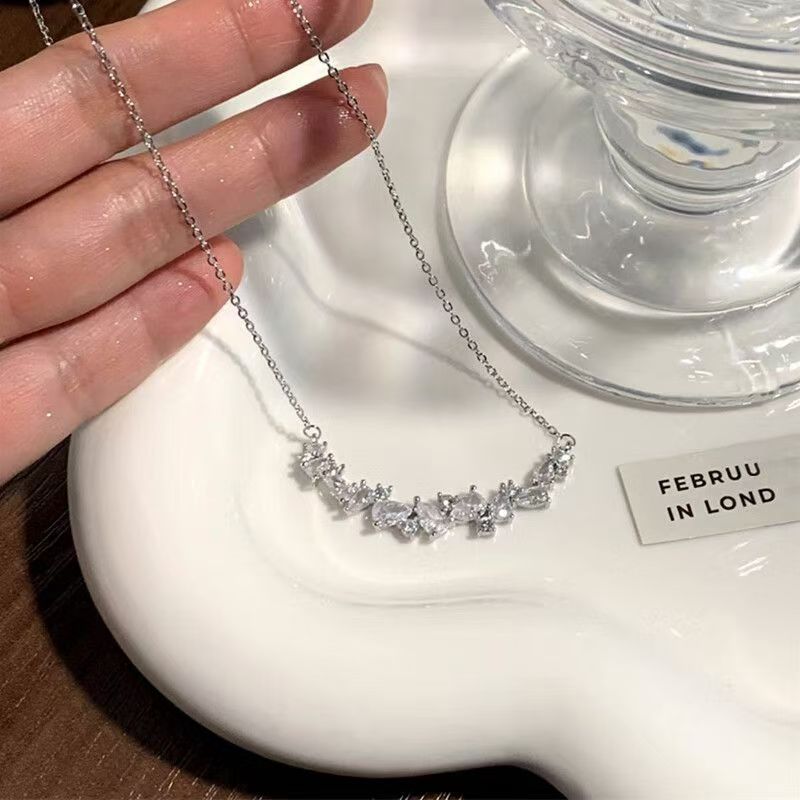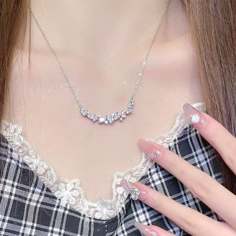 925纯银紫藤花银色项链女高级韩版轻奢小众小碎钻微笑锁骨链百搭