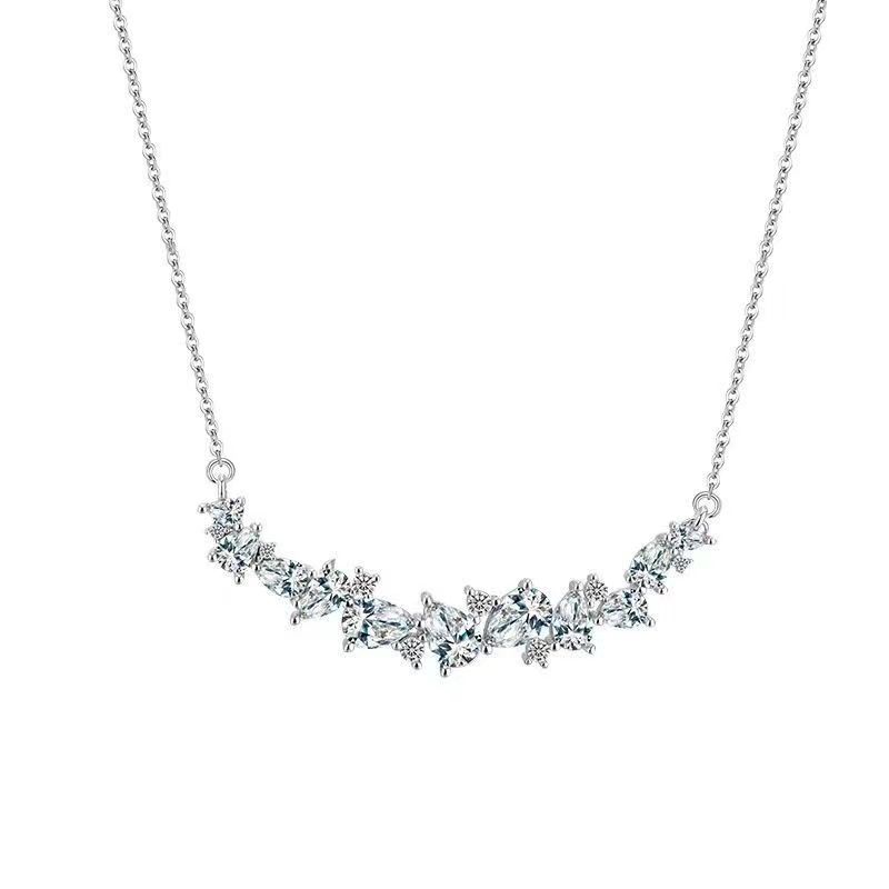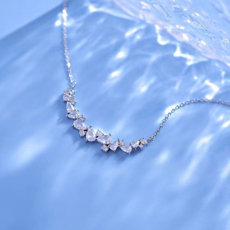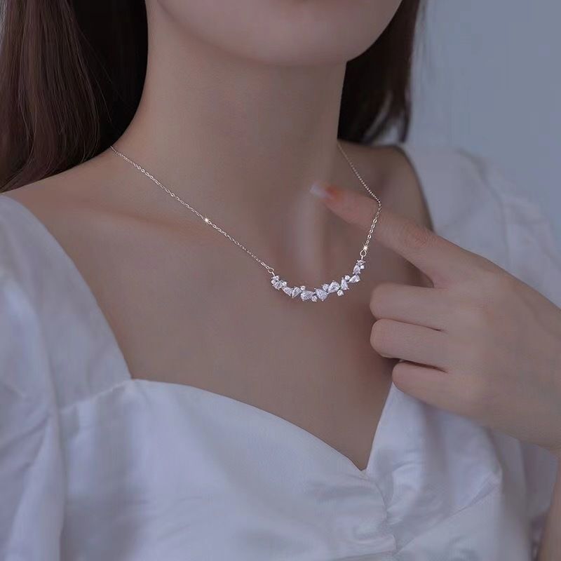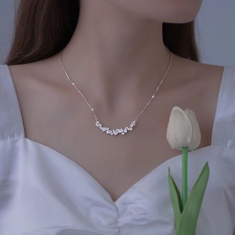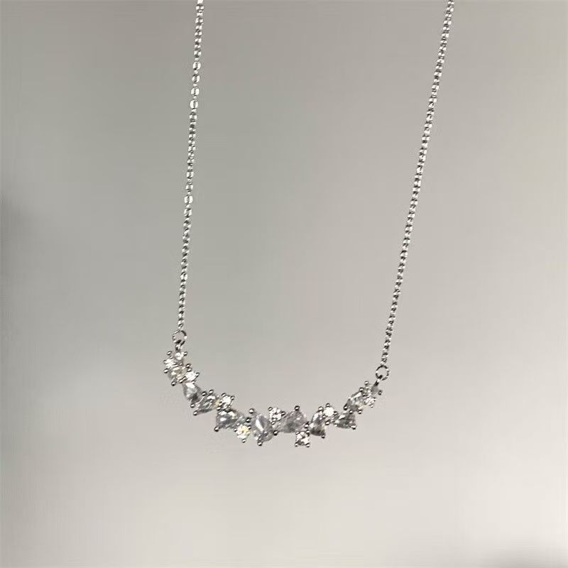925纯银紫藤花银色项链女高级韩版轻奢小众小碎钻微笑锁骨链百搭