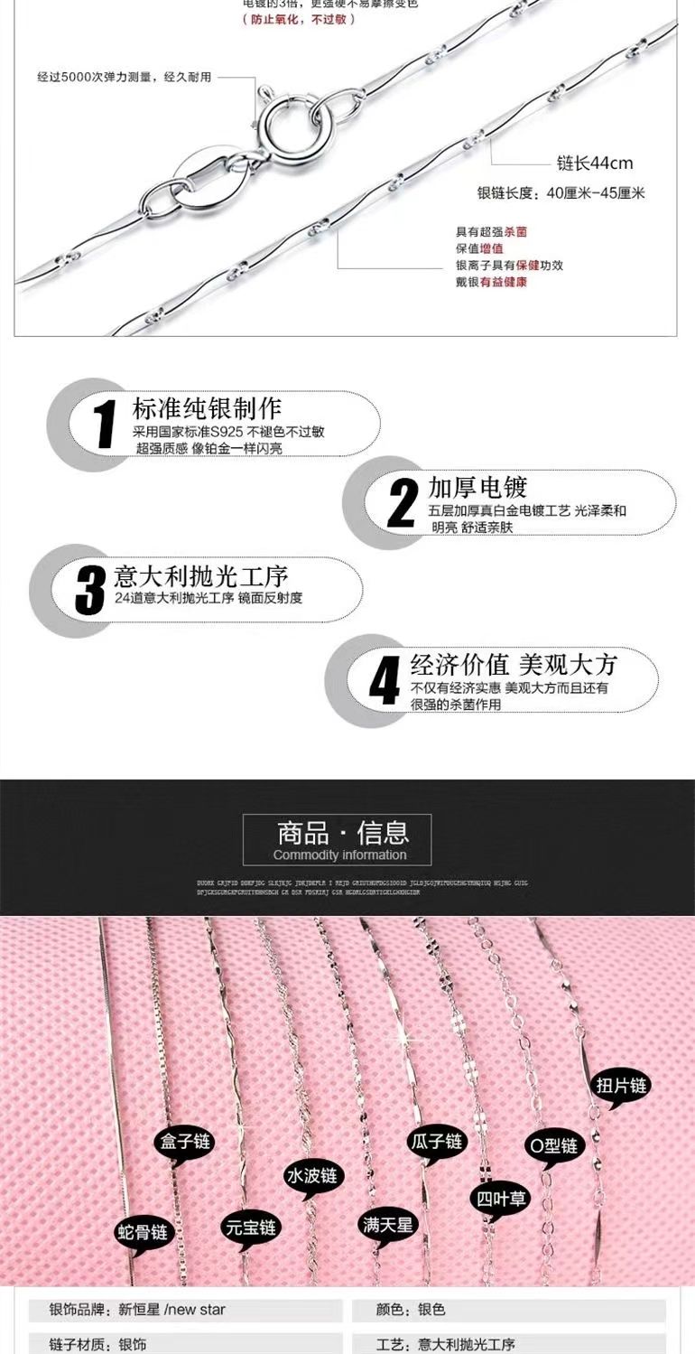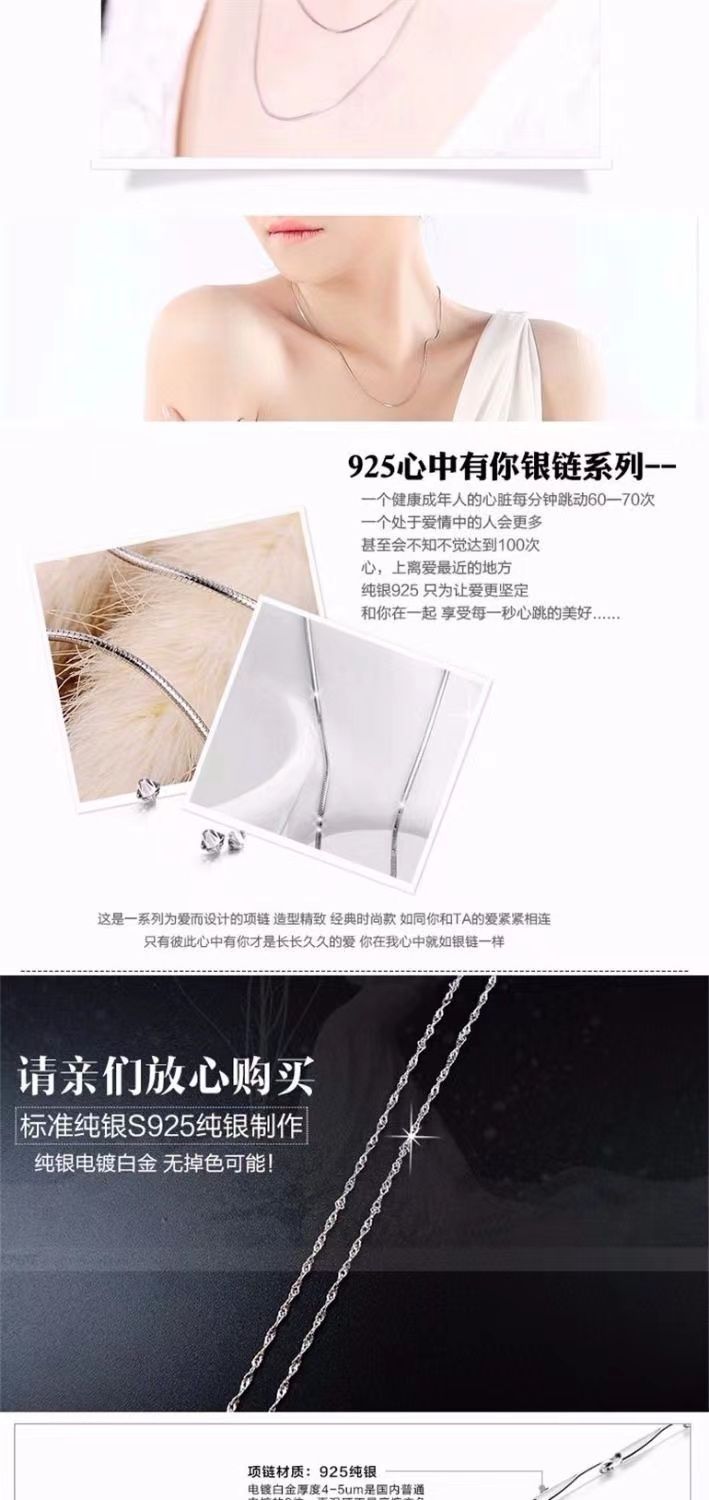 925纯银项链女 银链无吊坠锁骨链夏天不易掉色新款素链挂绳替换链