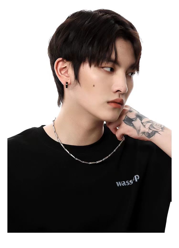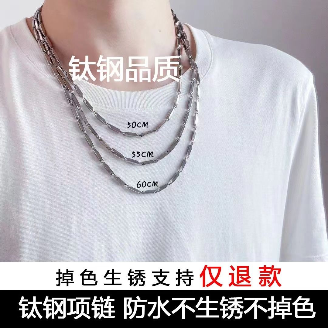 菱形项链男士高级感男潮男款男生钛钢链子简约百搭素链锁骨链颈链