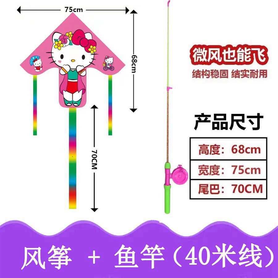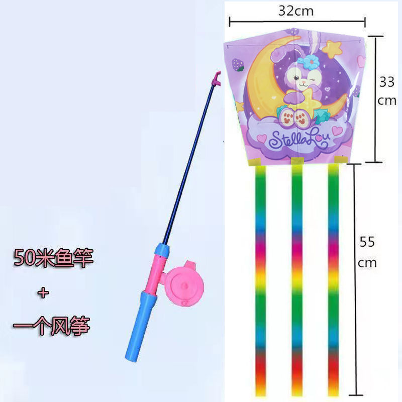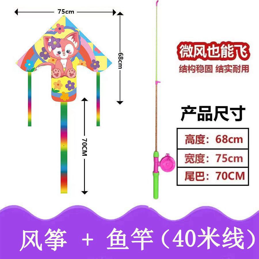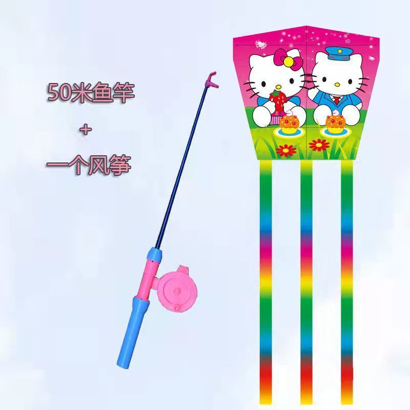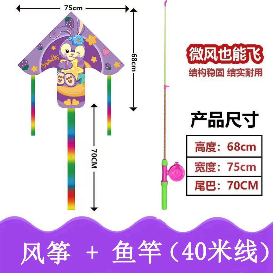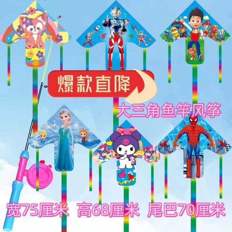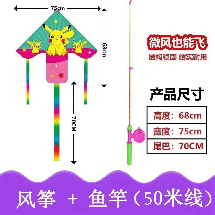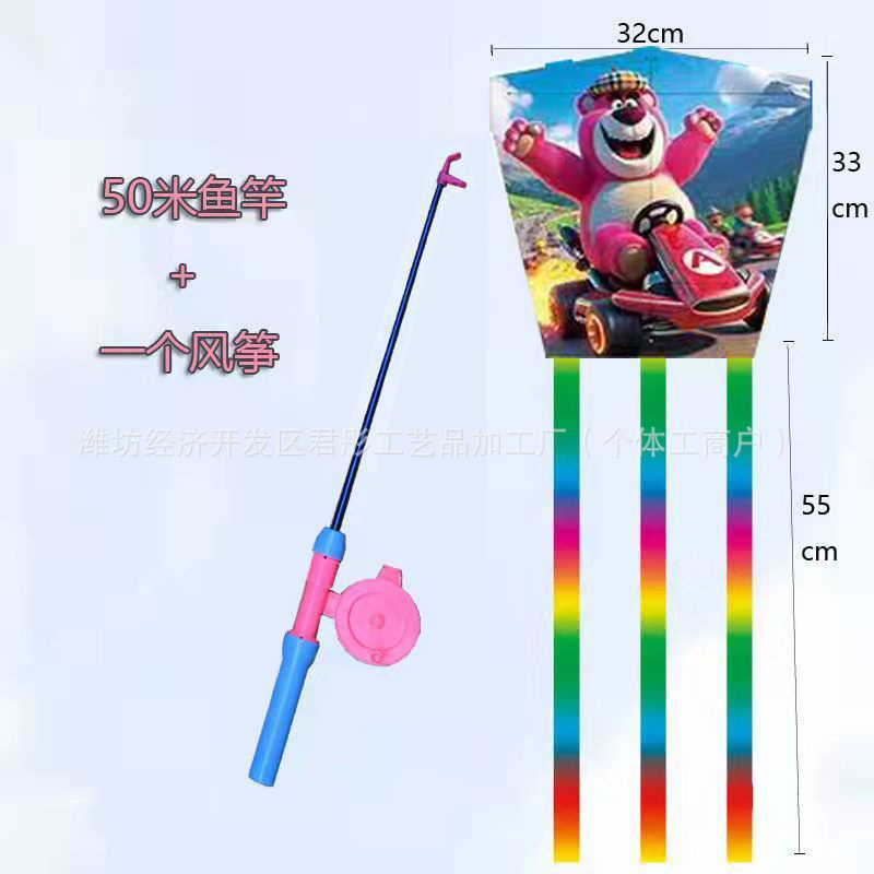 新款塑料小风筝公园广场威风易飞儿童卡通手持鱼竿风筝大玩具车