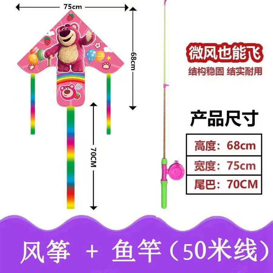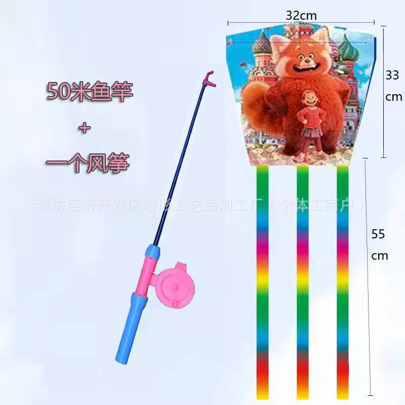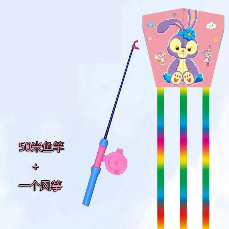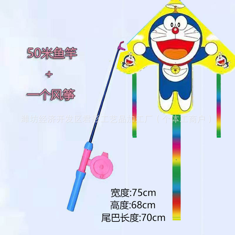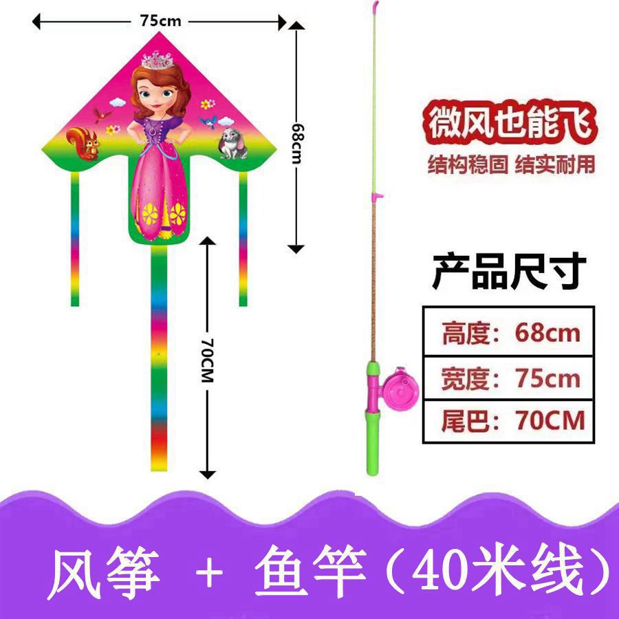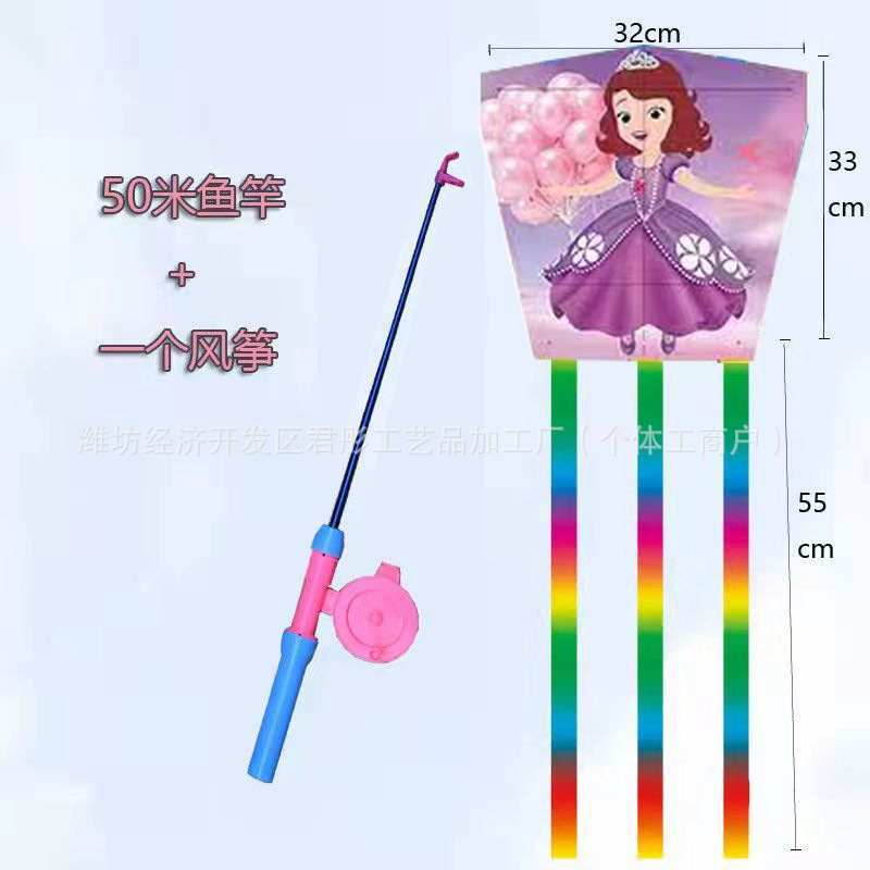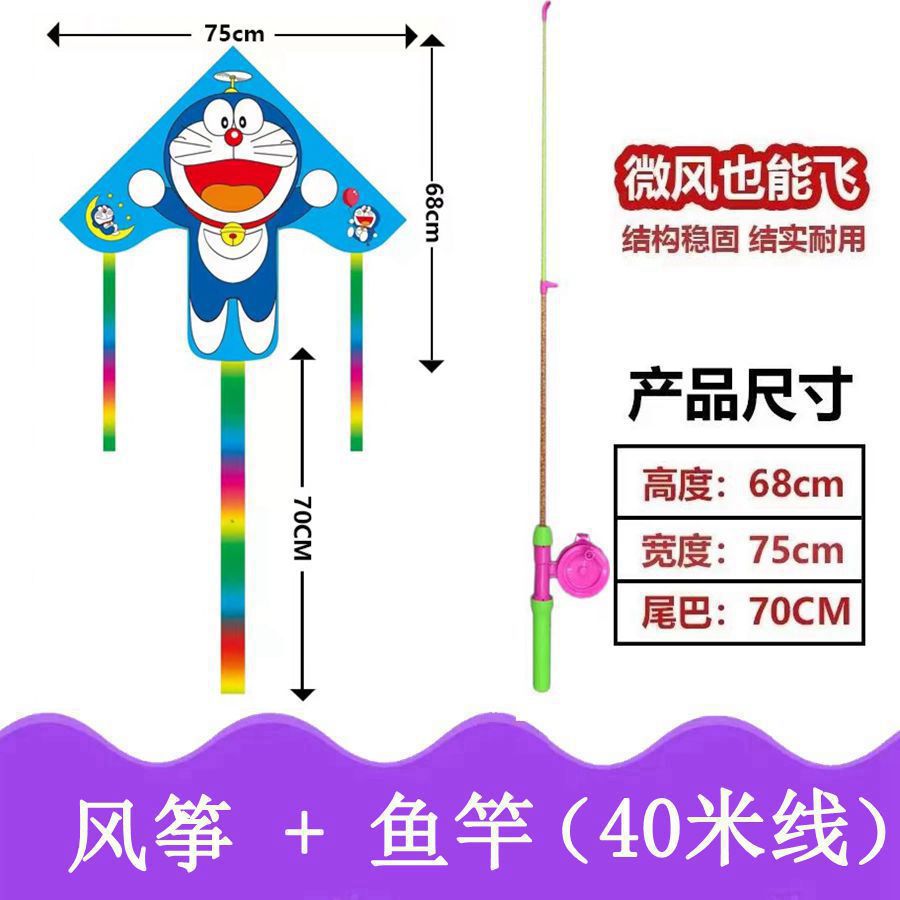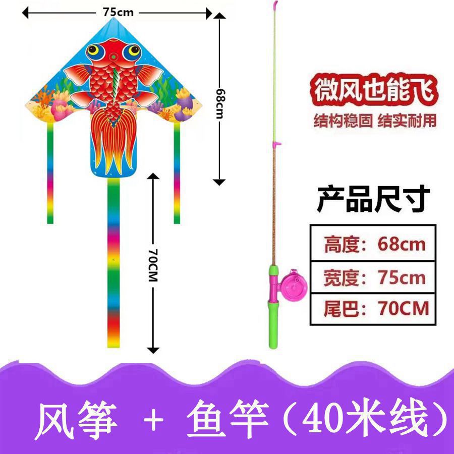 新款塑料小风筝公园广场威风易飞儿童卡通手持鱼竿风筝大玩具车
