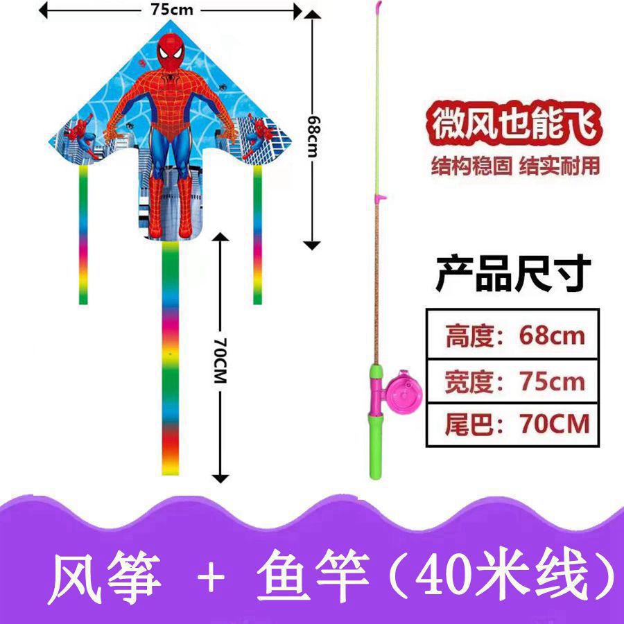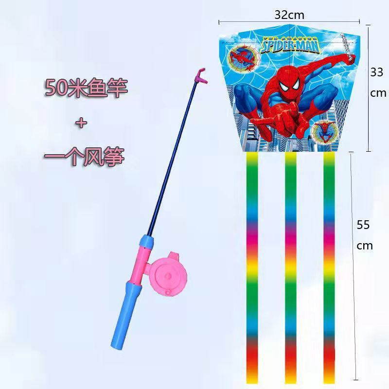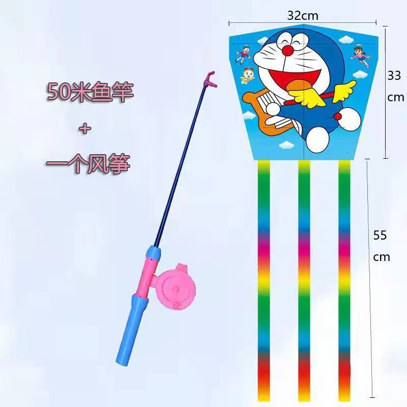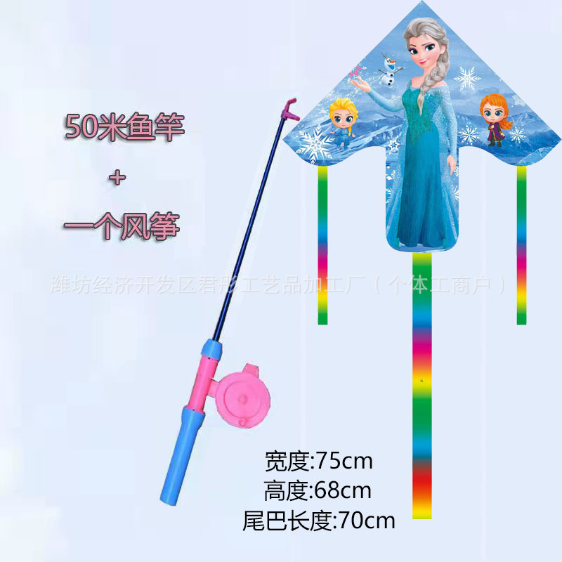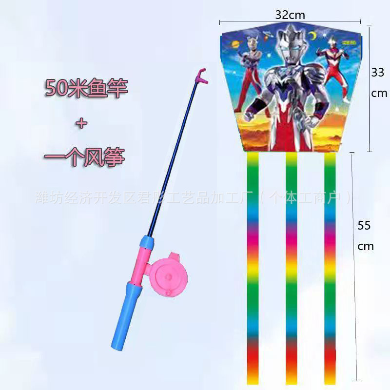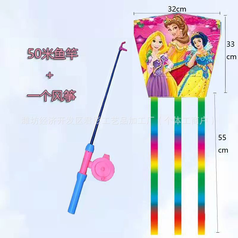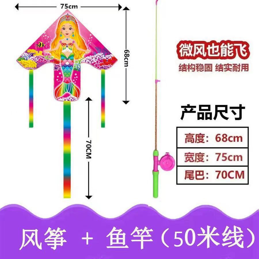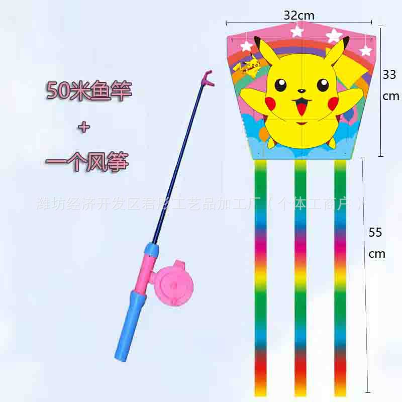 新款塑料小风筝公园广场威风易飞儿童卡通手持鱼竿风筝大玩具车