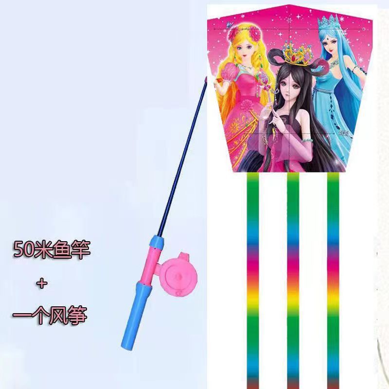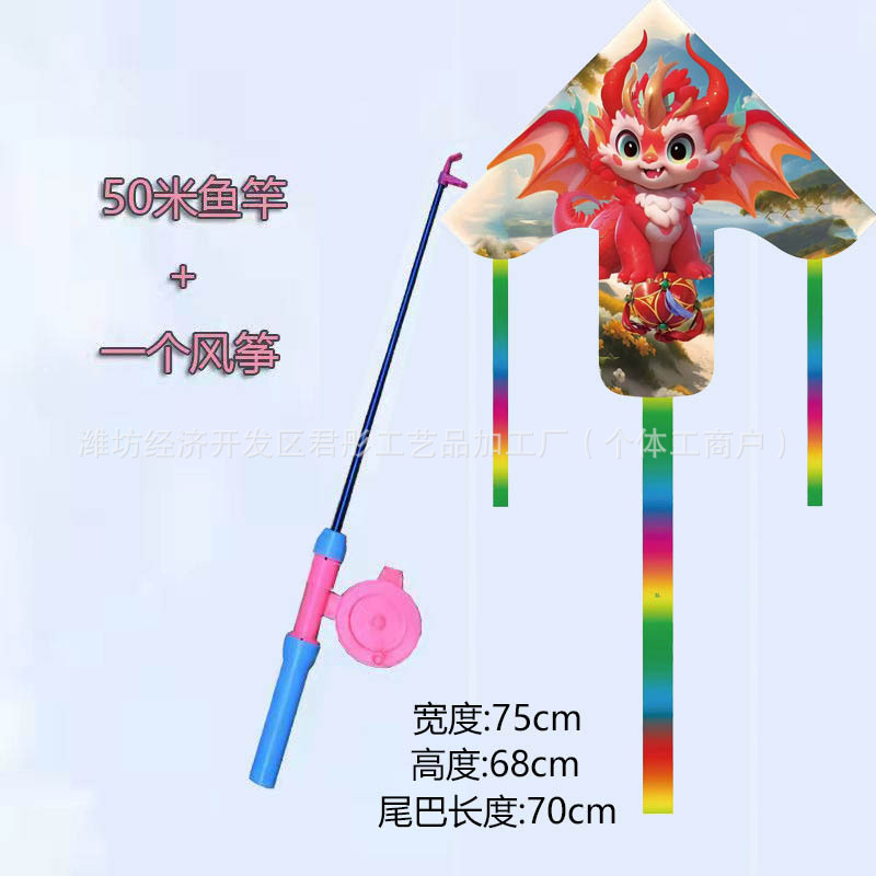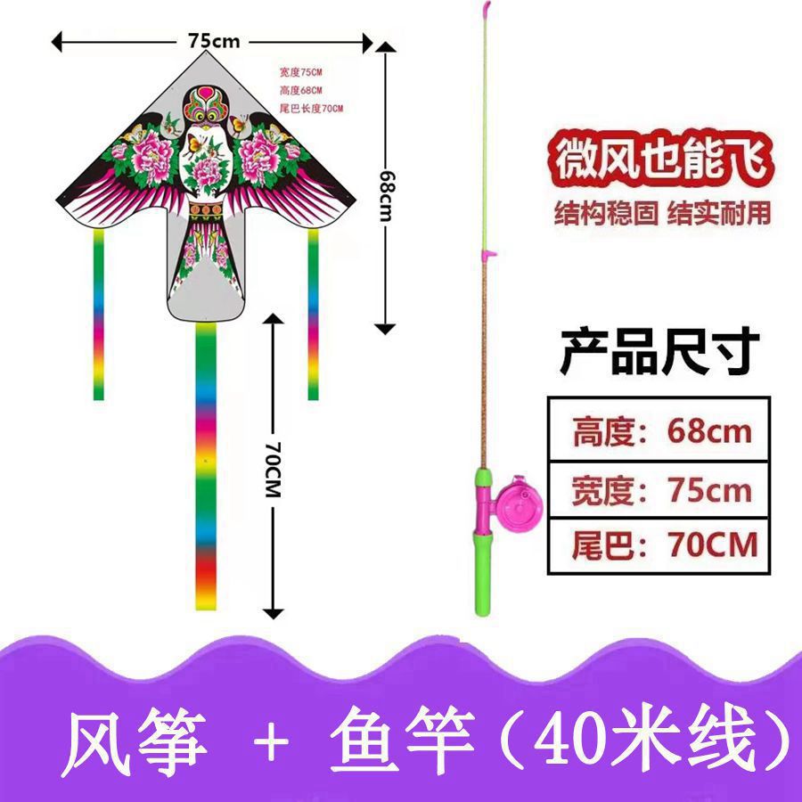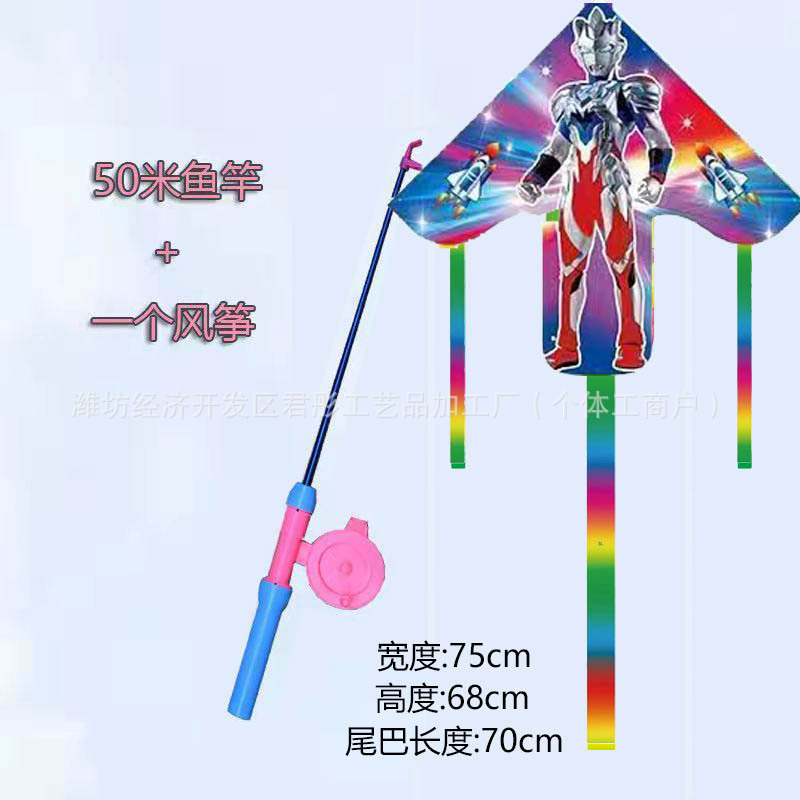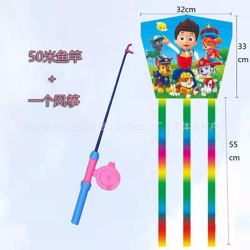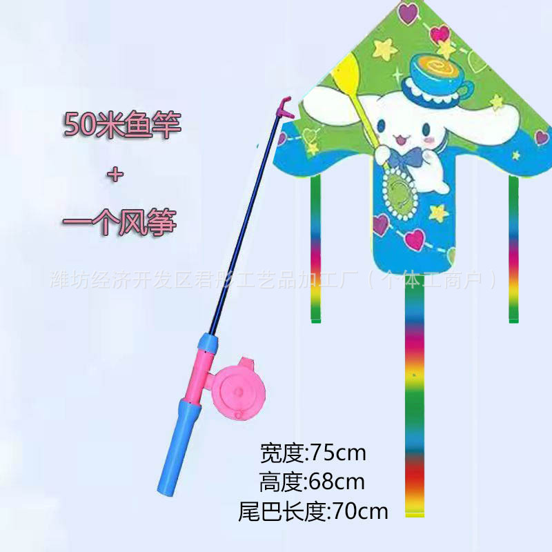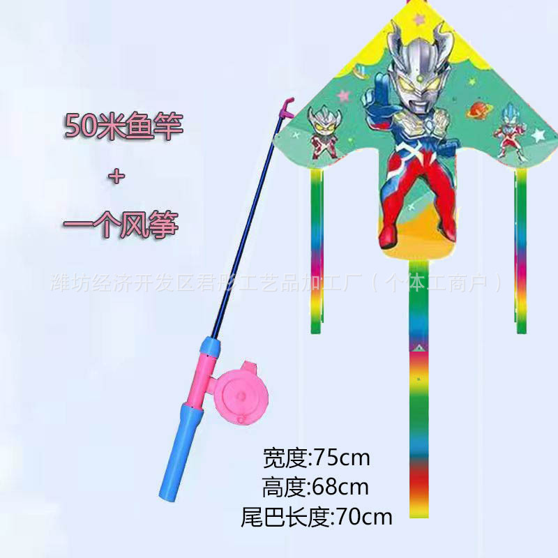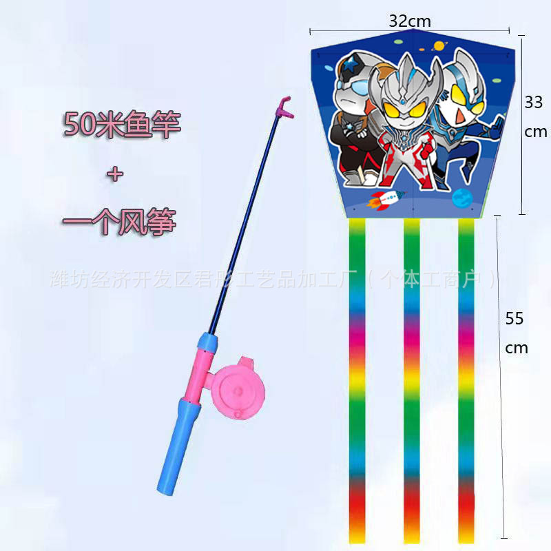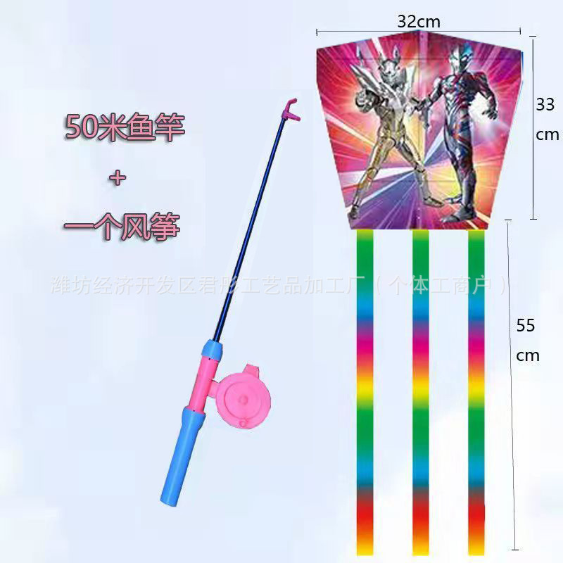 新款塑料小风筝公园广场威风易飞儿童卡通手持鱼竿风筝大玩具车