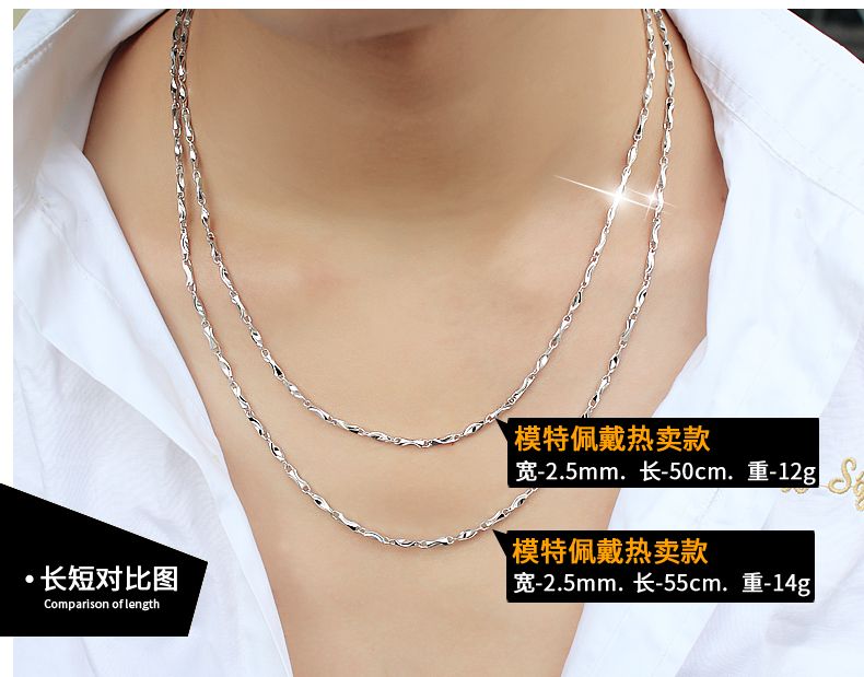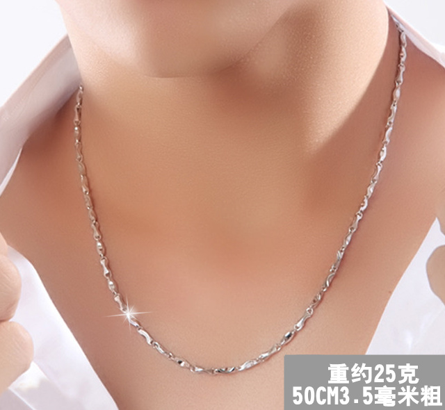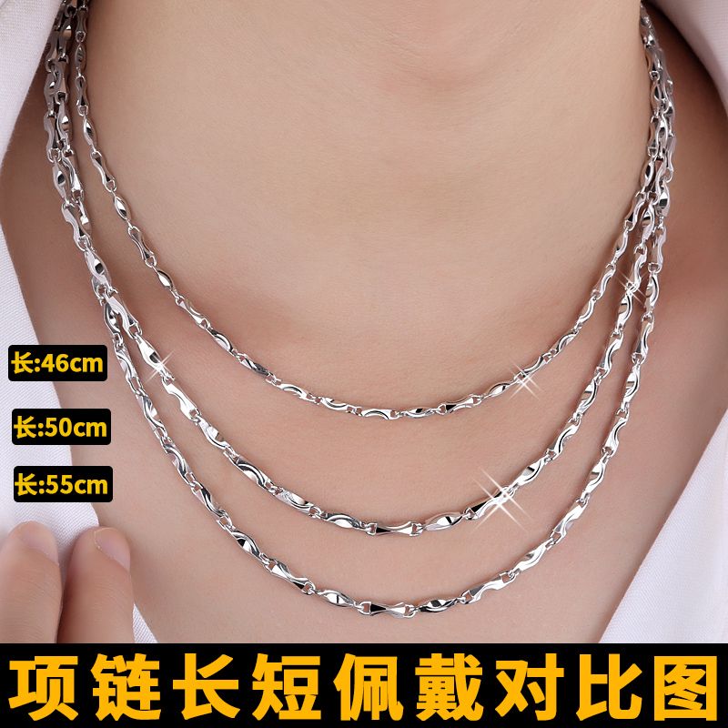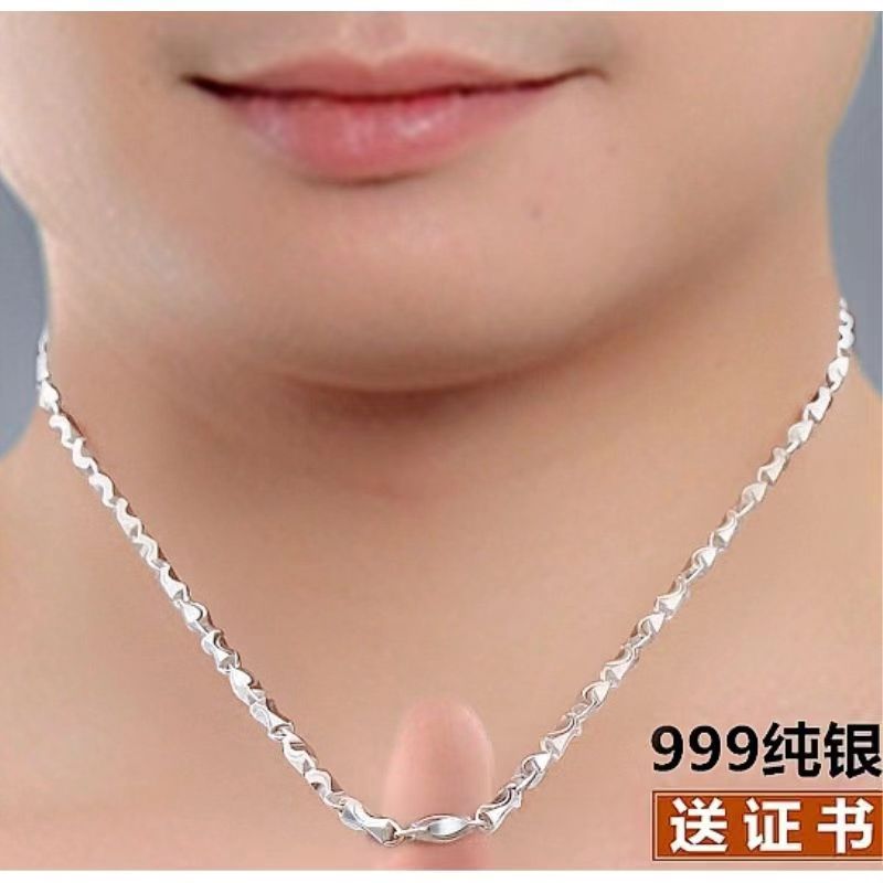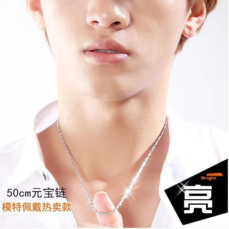 【假一赔十】纯银999男女士元宝链子粗银项链时尚百搭送男友礼物