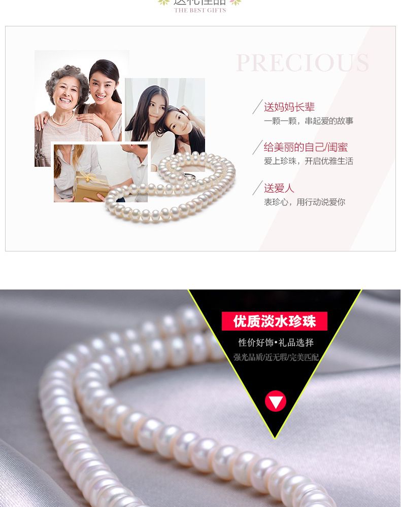 天然淡水珍珠项链9-10mm长款白色强光 送妈妈婆婆礼物套装正品女