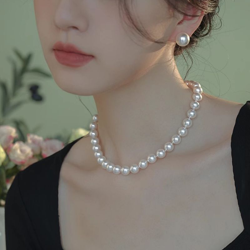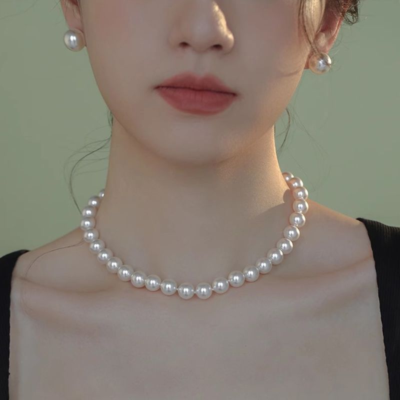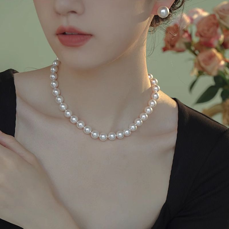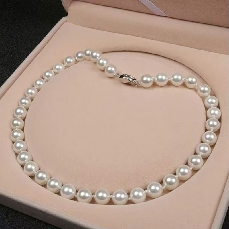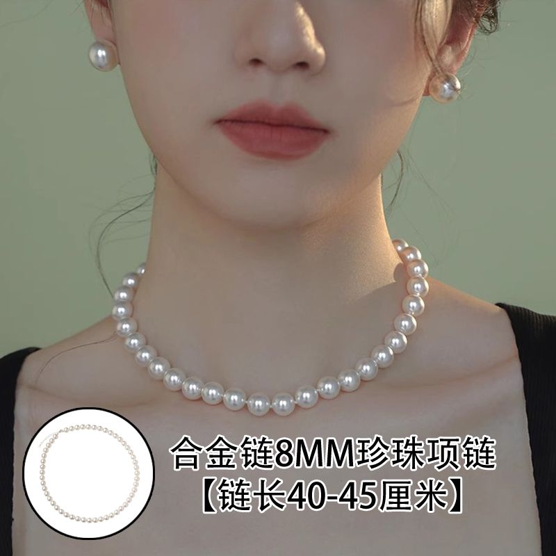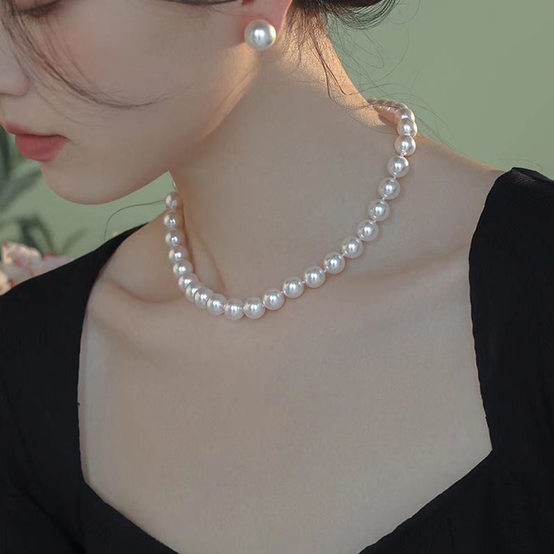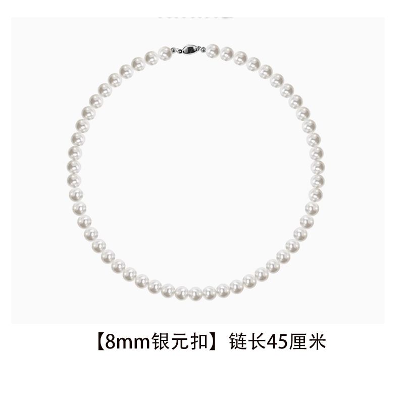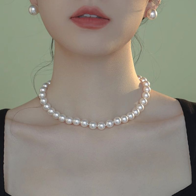 天然淡水贝壳珍珠元宝扣项链2024新款正圆珠颈链妈妈款礼物锁骨链