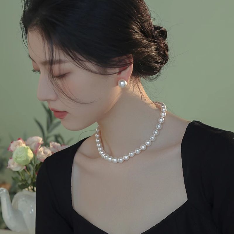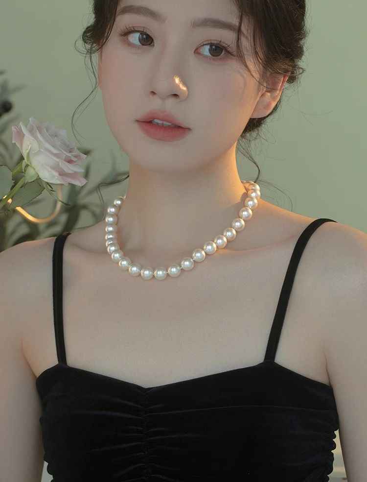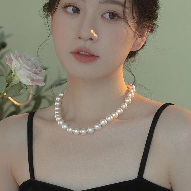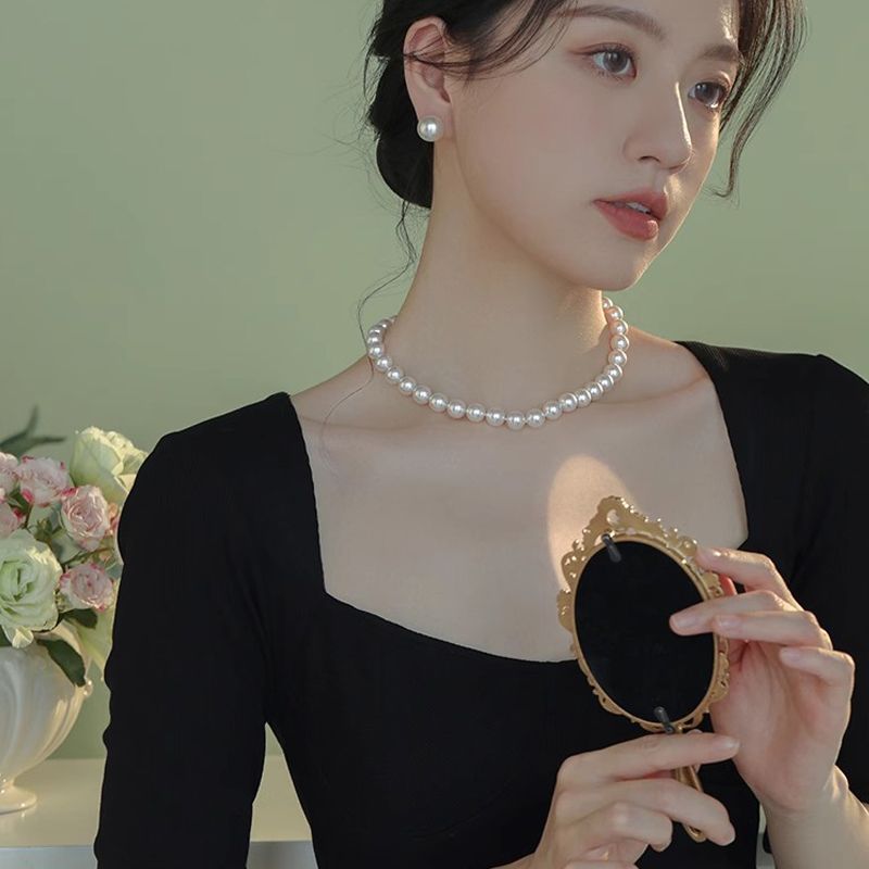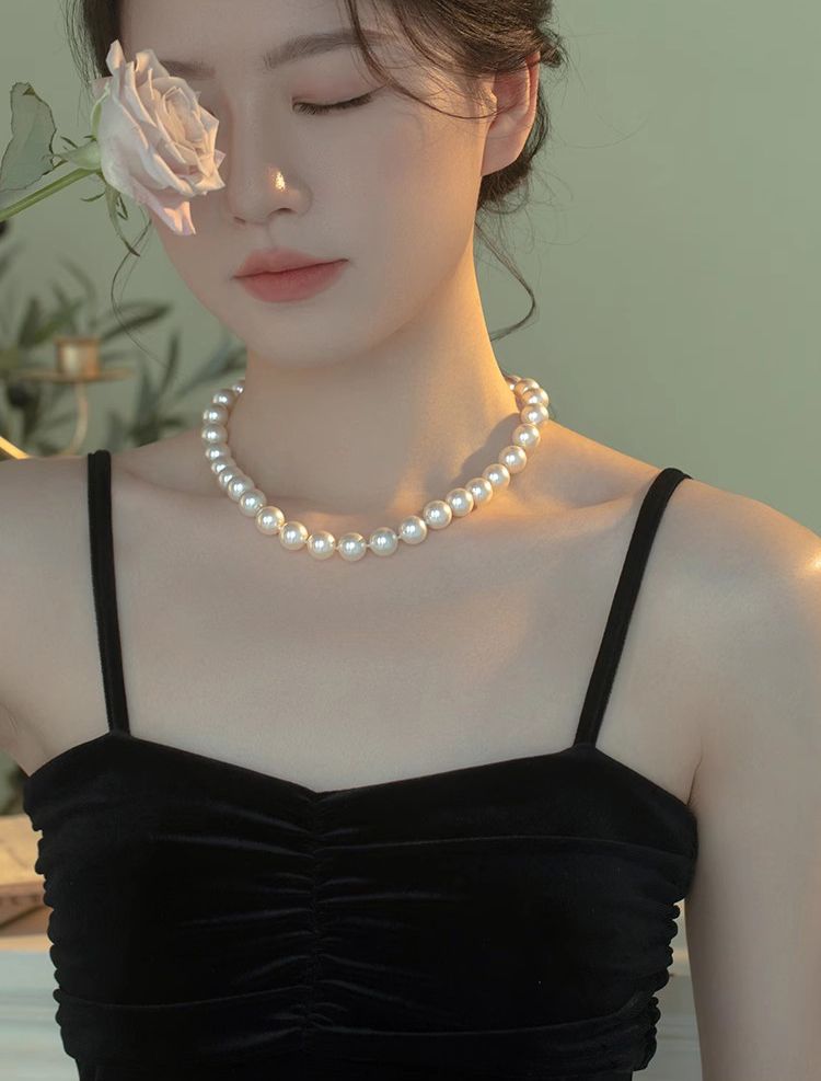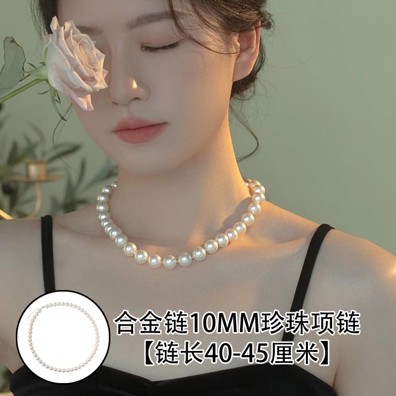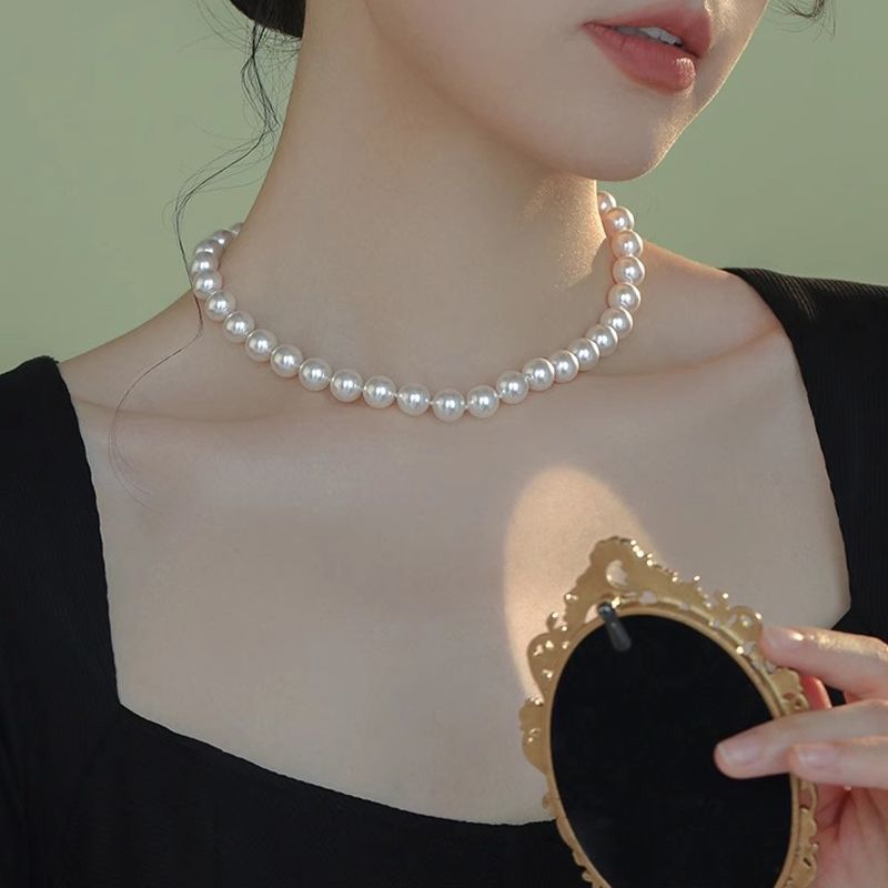 天然淡水贝壳珍珠元宝扣项链2024新款正圆珠颈链妈妈款礼物锁骨链
