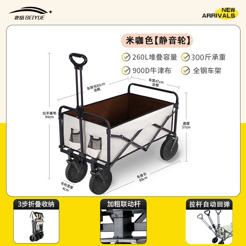 露营小推车可折叠户外手推车野餐车便携营地拖车拉杆野营车摆摊车