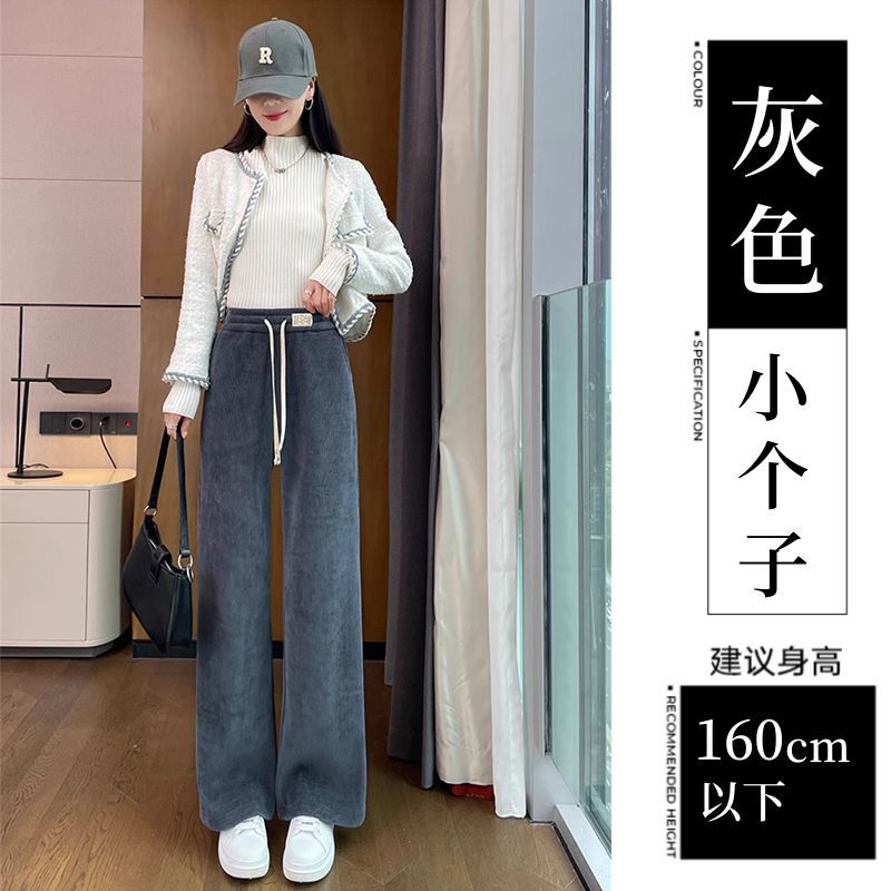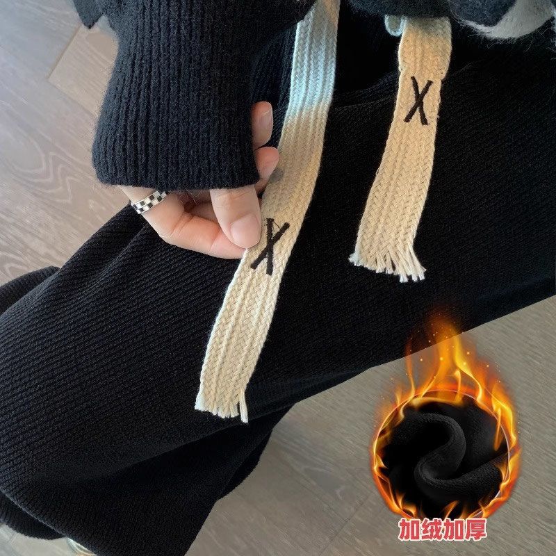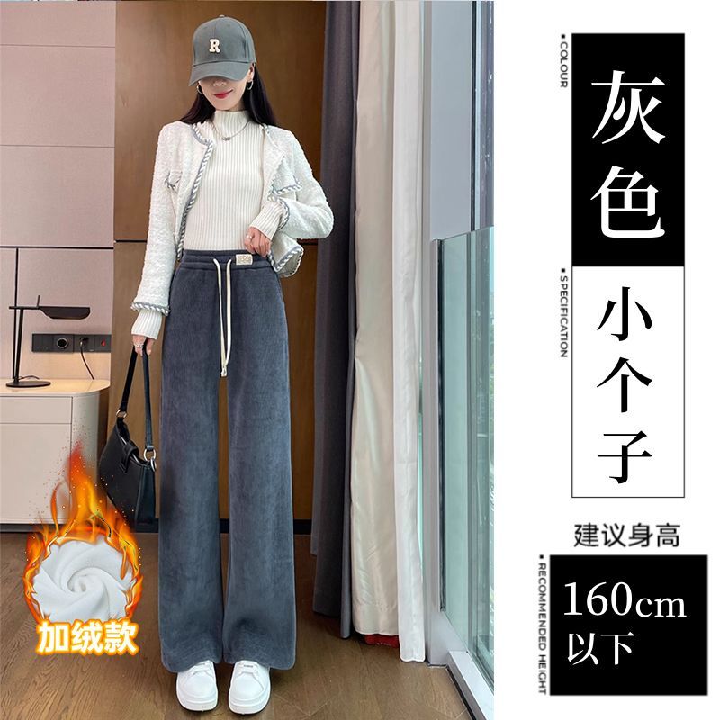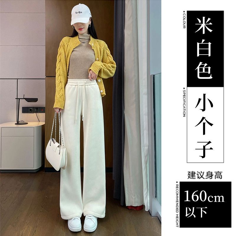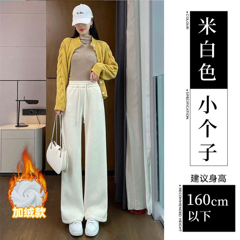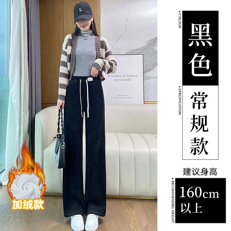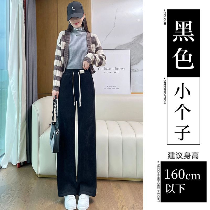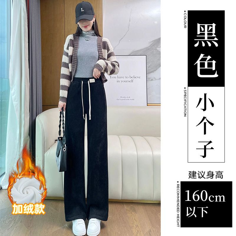 窄版阔腿裤女2024年秋冬款木棉绒裤女黑色垂感加绒小个子休闲卫裤