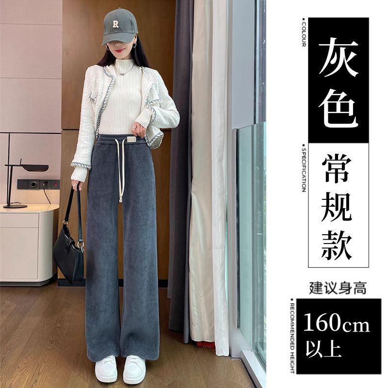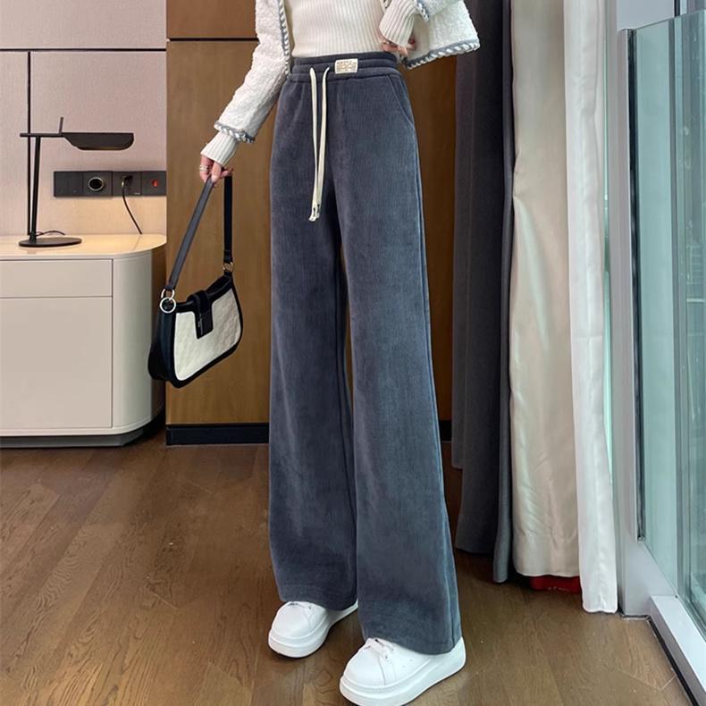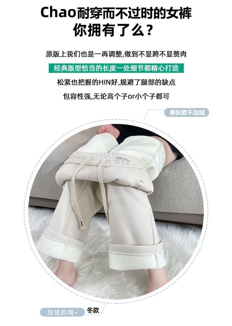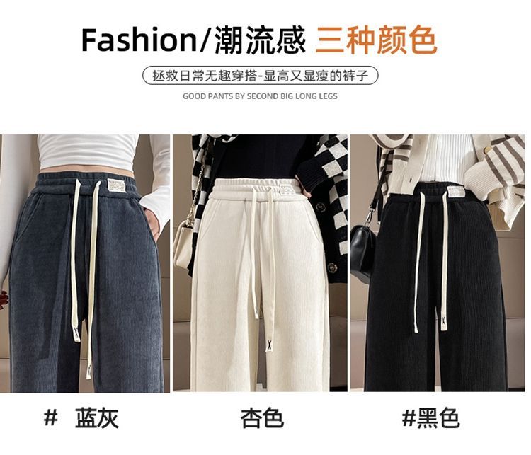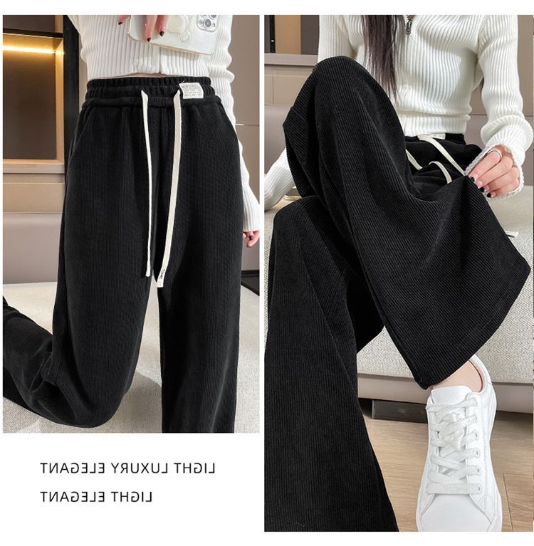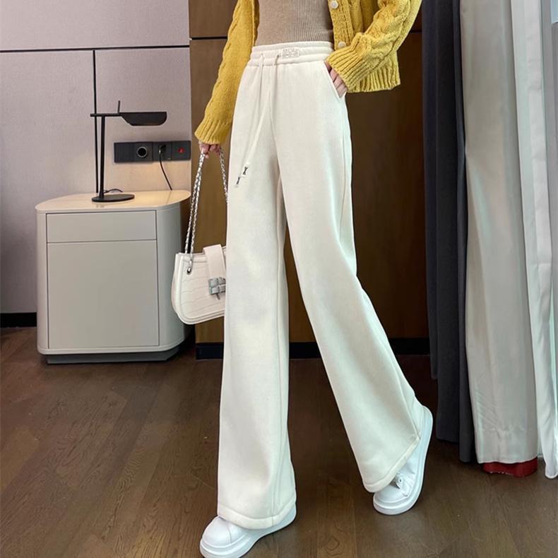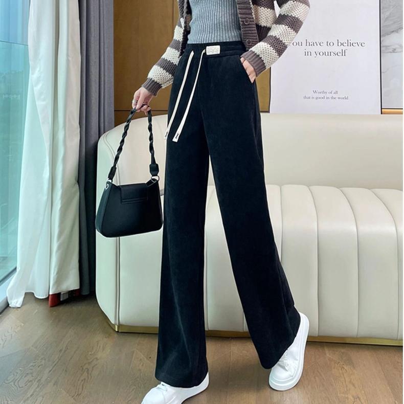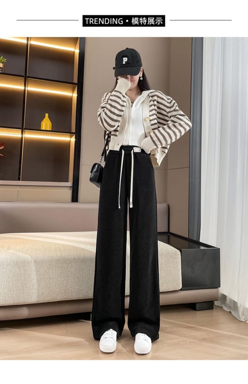 窄版阔腿裤女2024年秋冬款木棉绒裤女黑色垂感加绒小个子休闲卫裤