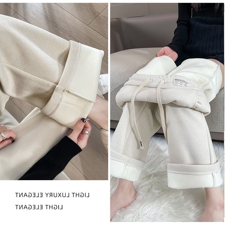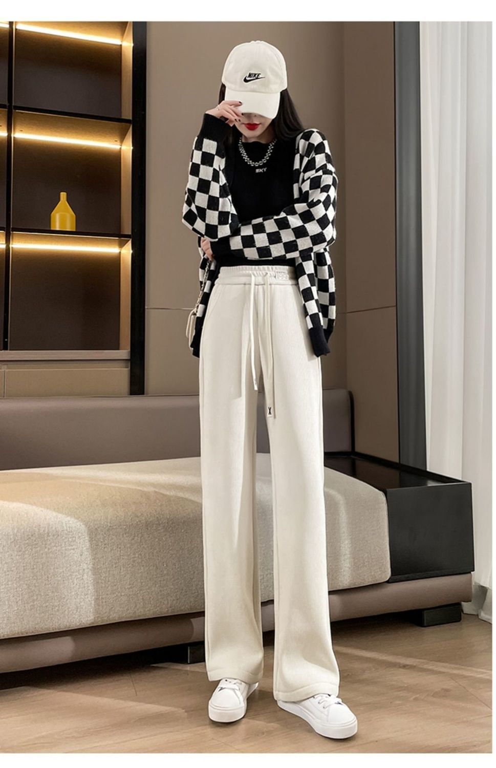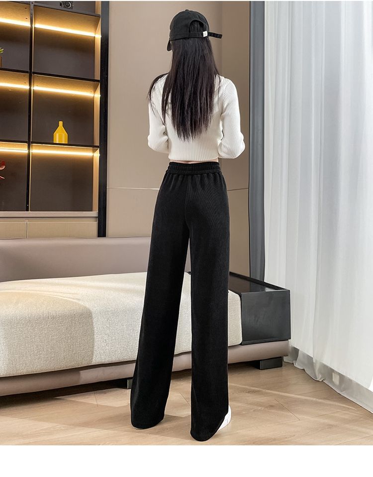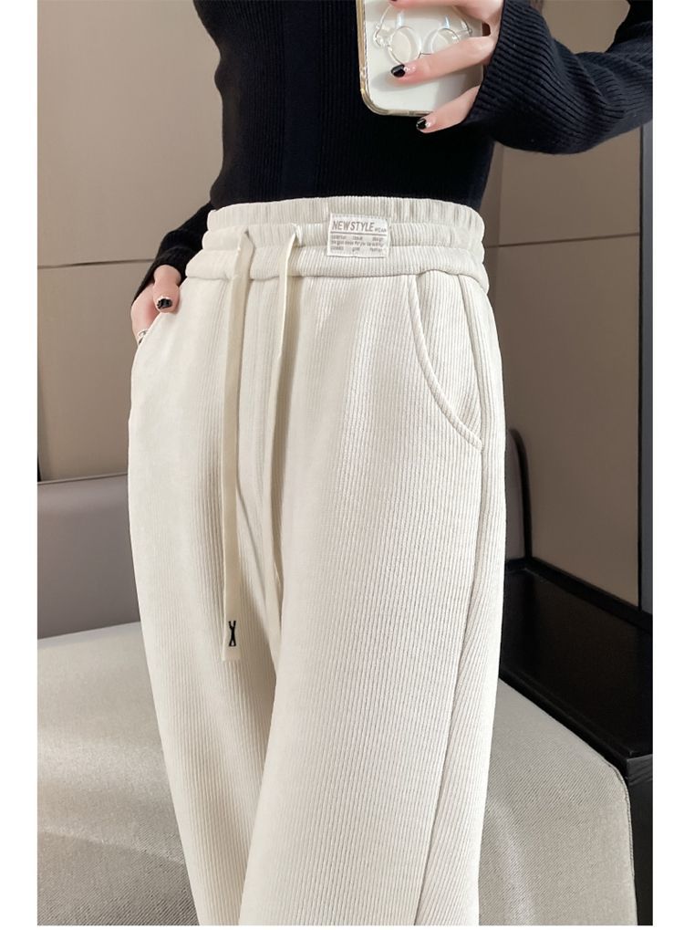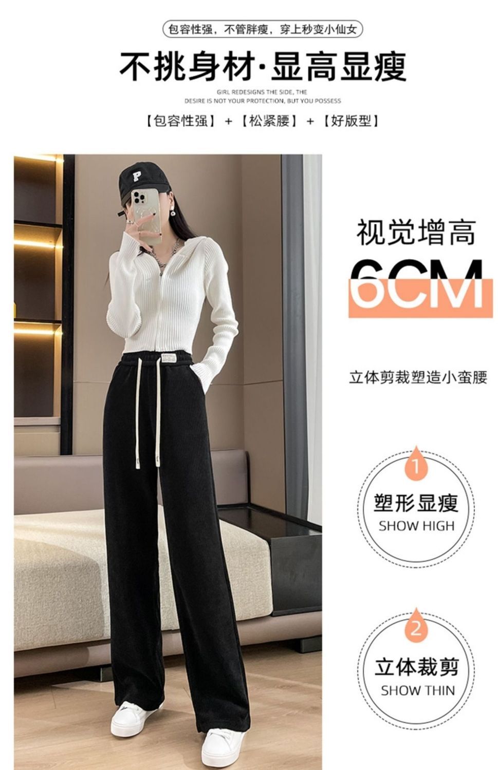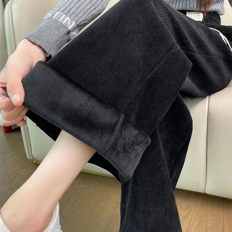 窄版阔腿裤女2024年秋冬款木棉绒裤女黑色垂感加绒小个子休闲卫裤