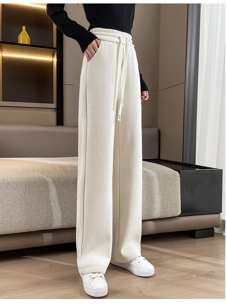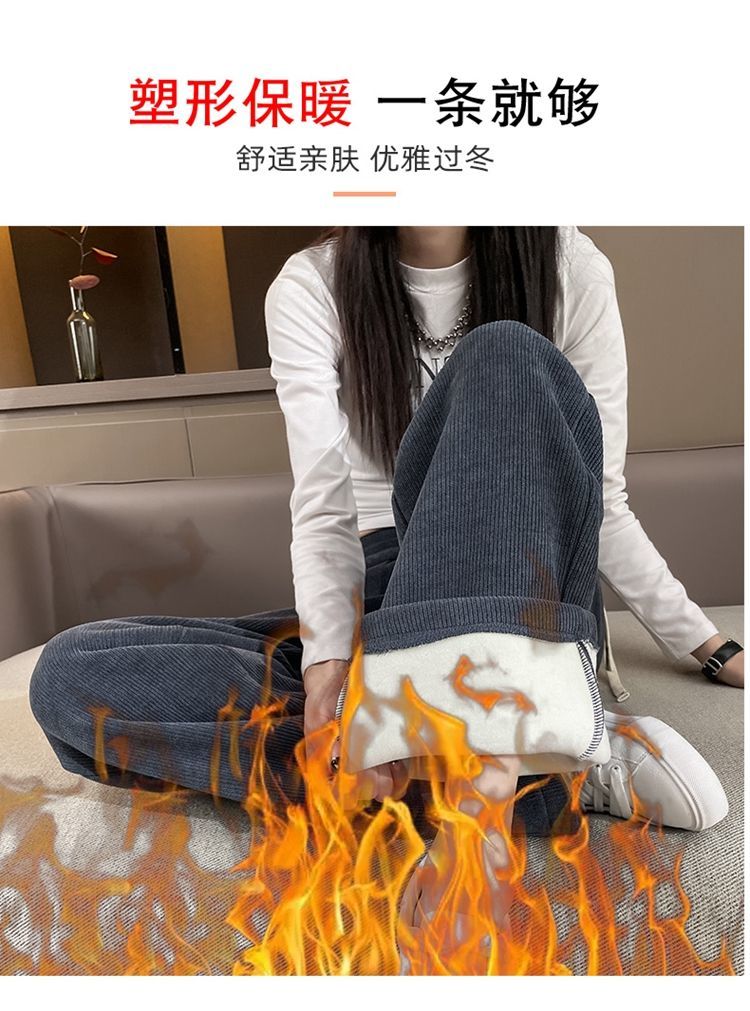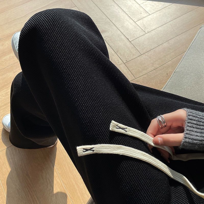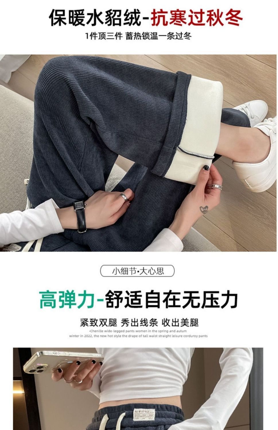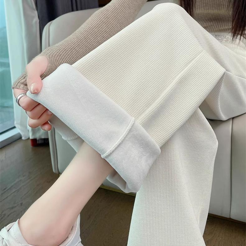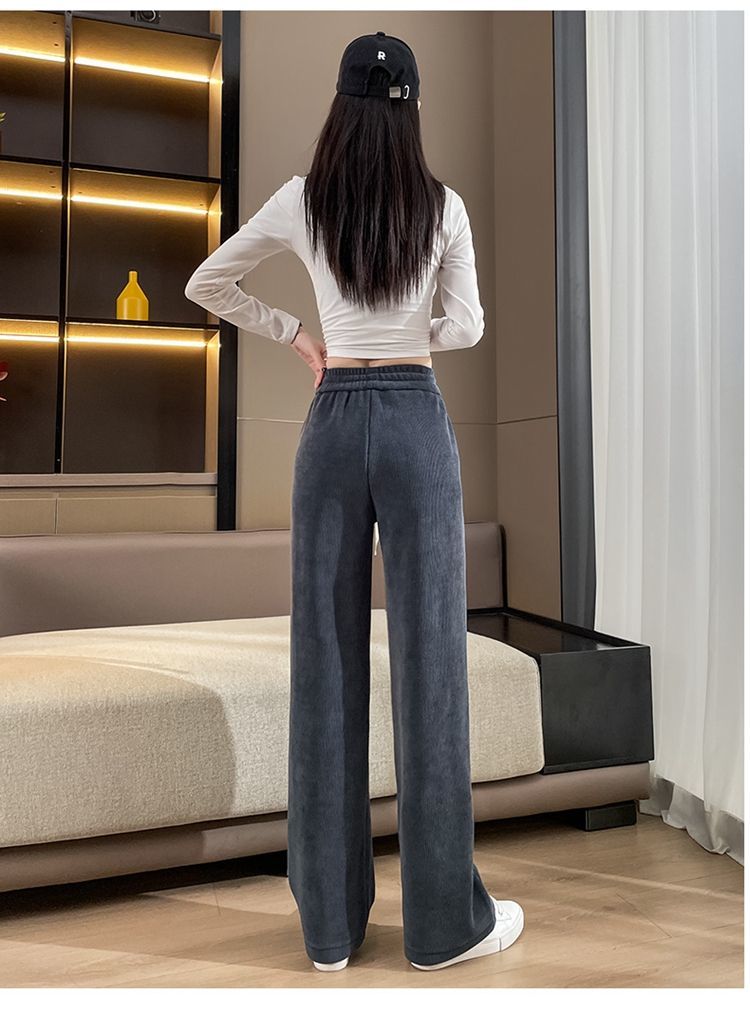 窄版阔腿裤女2024年秋冬款木棉绒裤女黑色垂感加绒小个子休闲卫裤