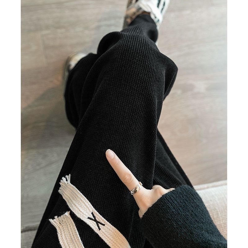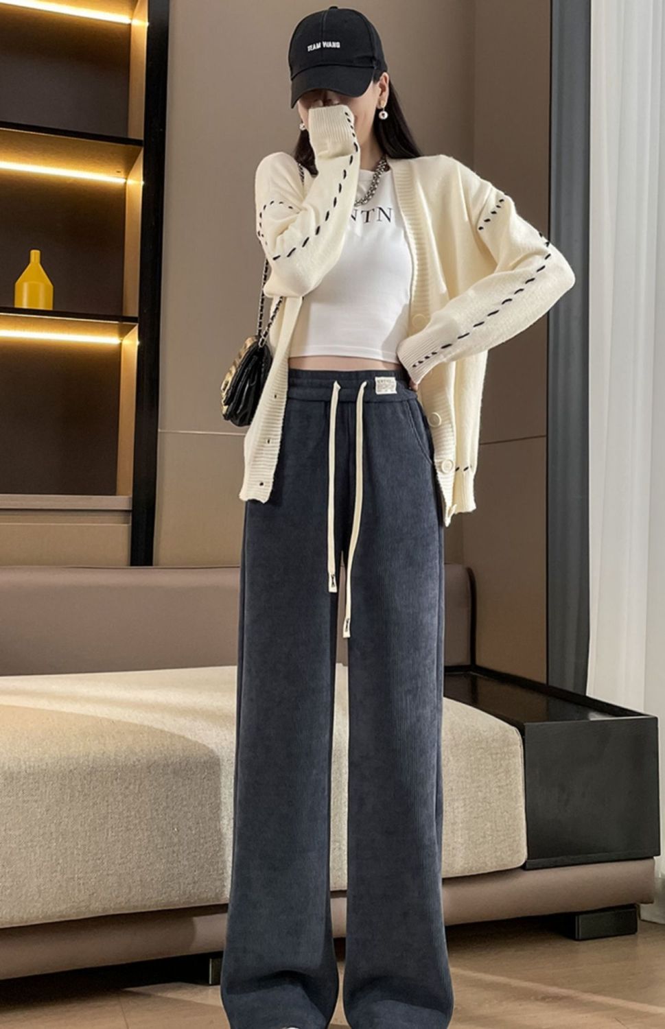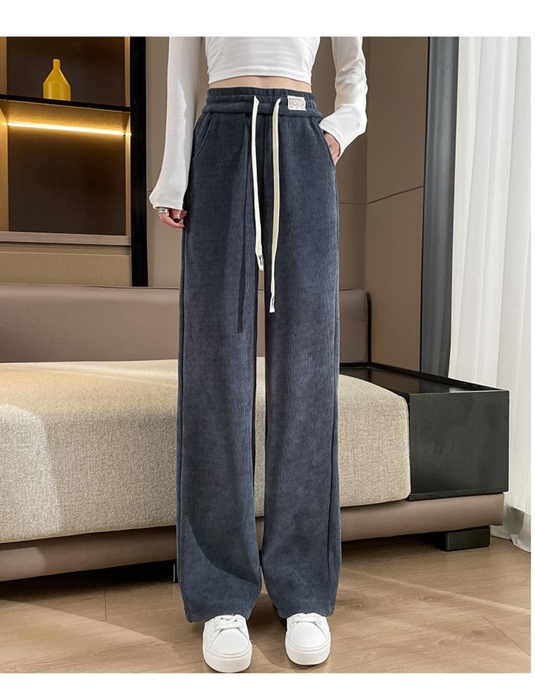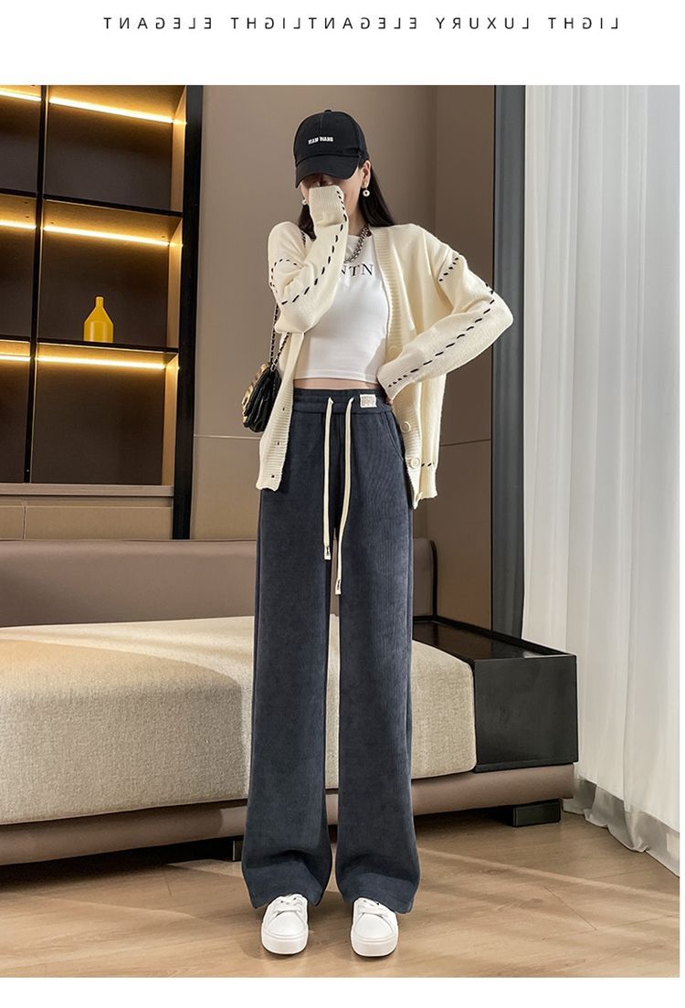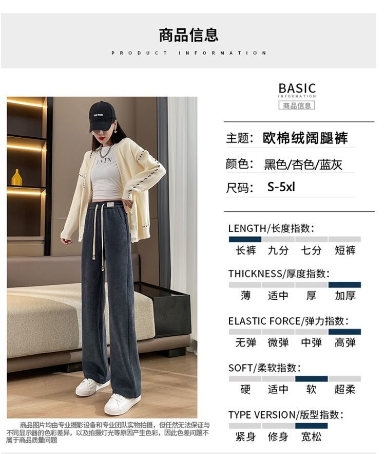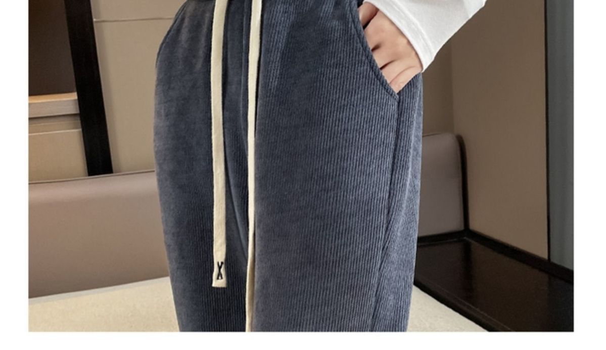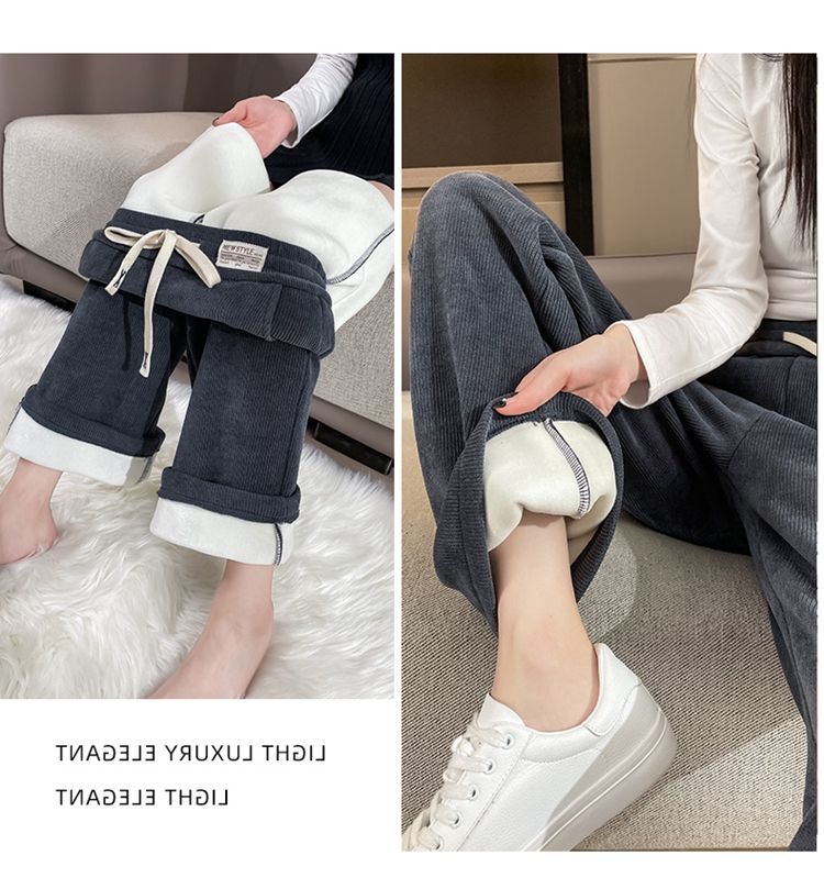 窄版阔腿裤女2024年秋冬款木棉绒裤女黑色垂感加绒小个子休闲卫裤
