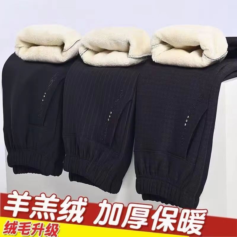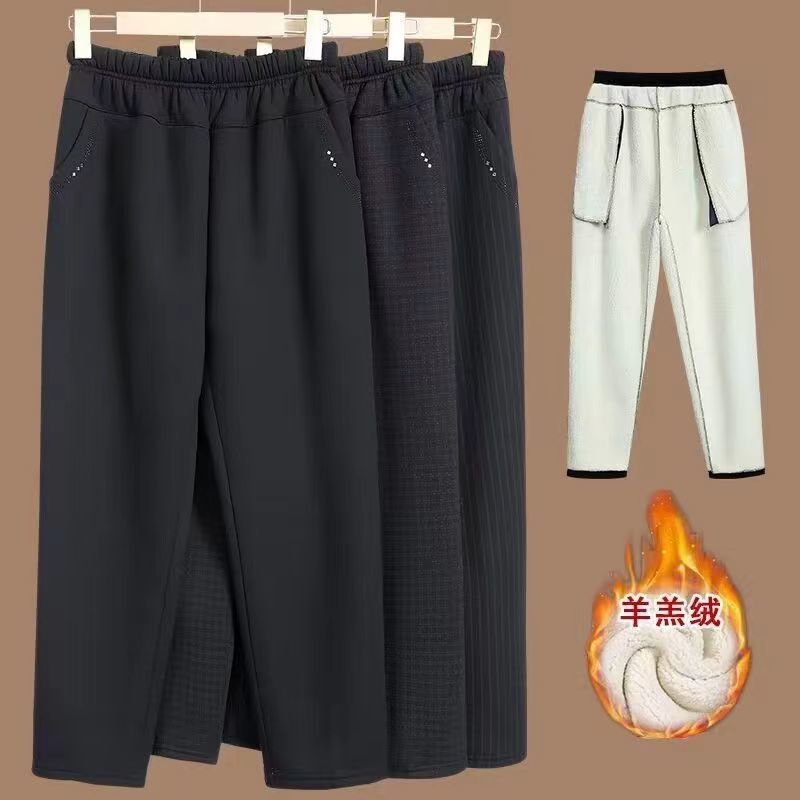 中老年女裤加厚羊羔绒妈妈加绒裤冬季大码奶奶长裤宽松休闲裤子