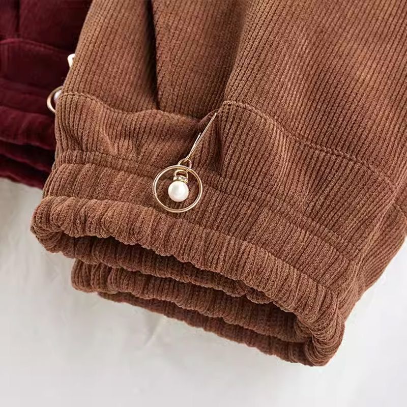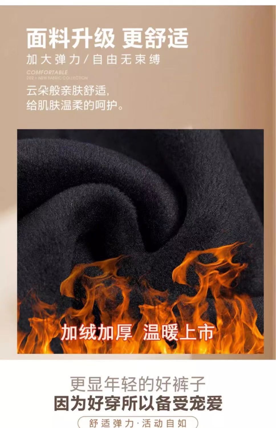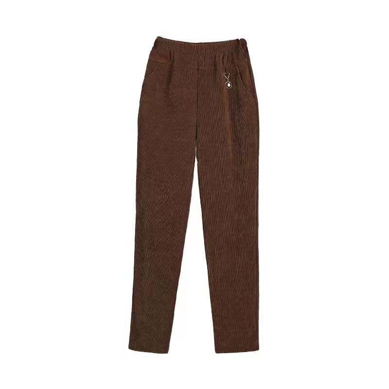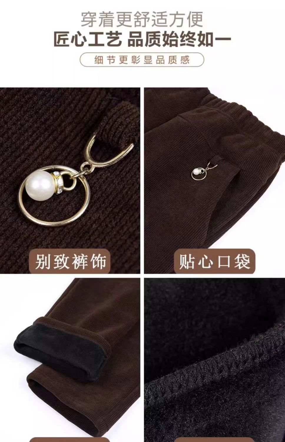秋冬加绒加厚细条绒灯芯绒中老年妈妈高腰宽松大码直筒休闲长裤女